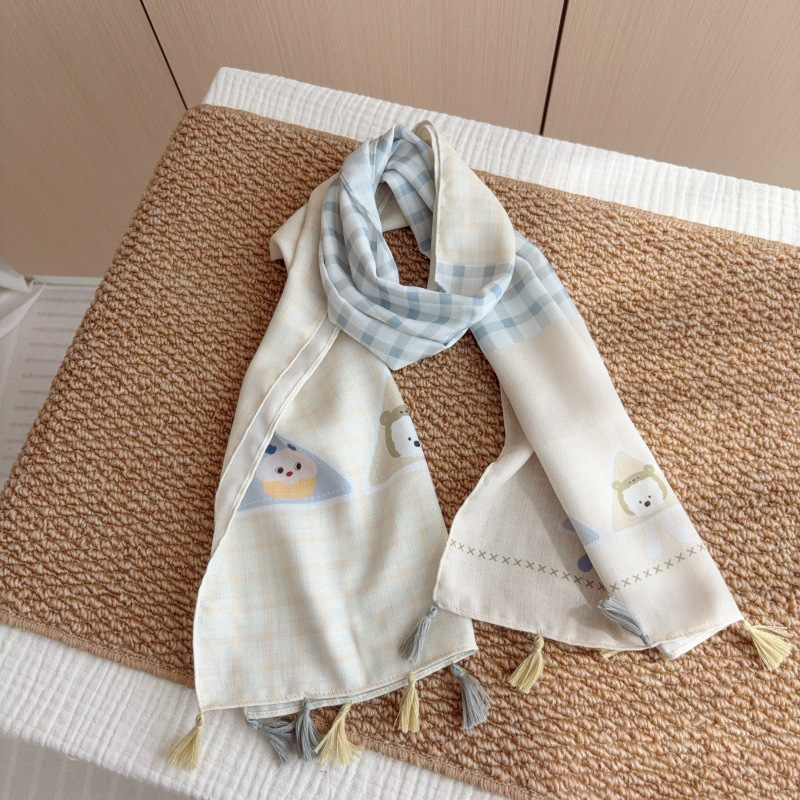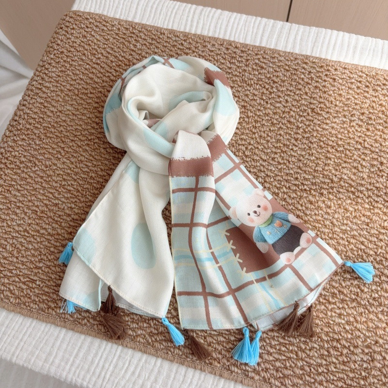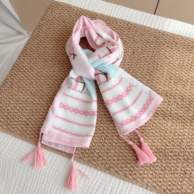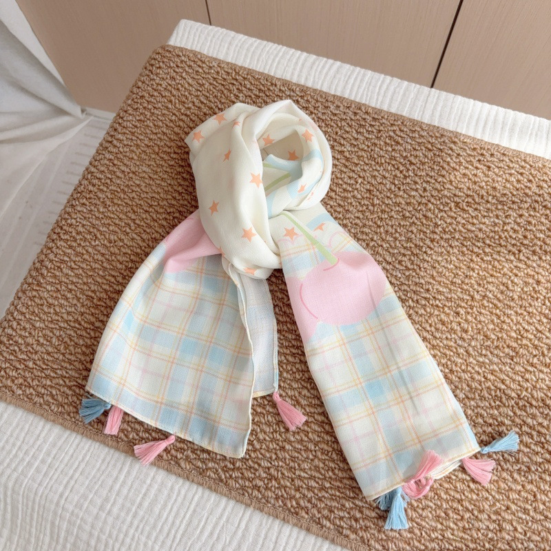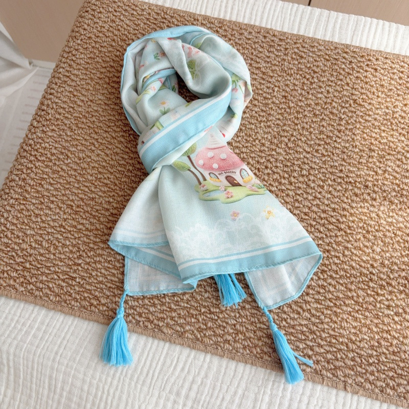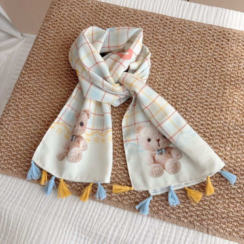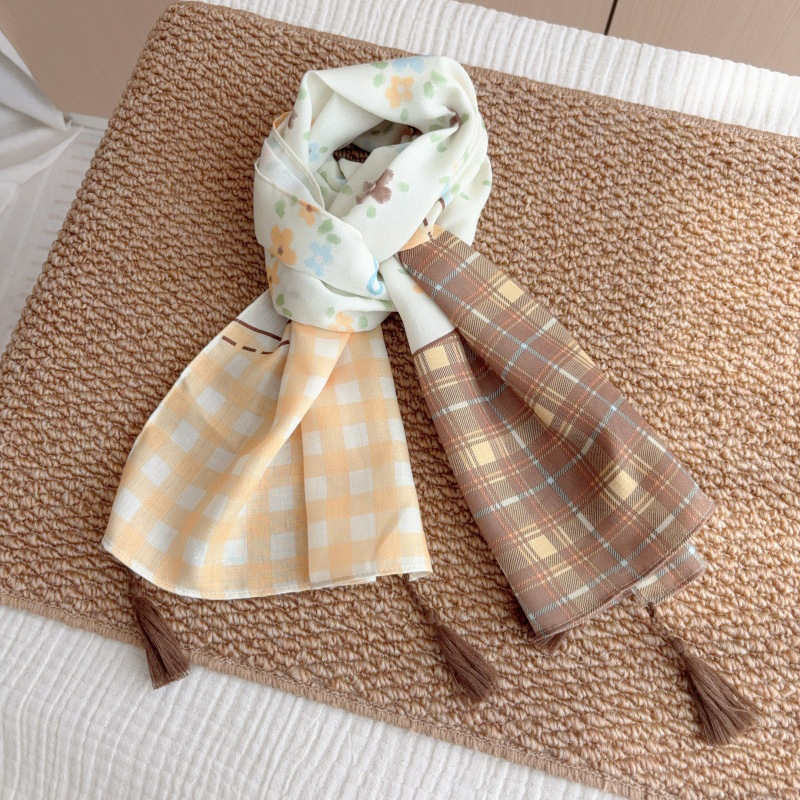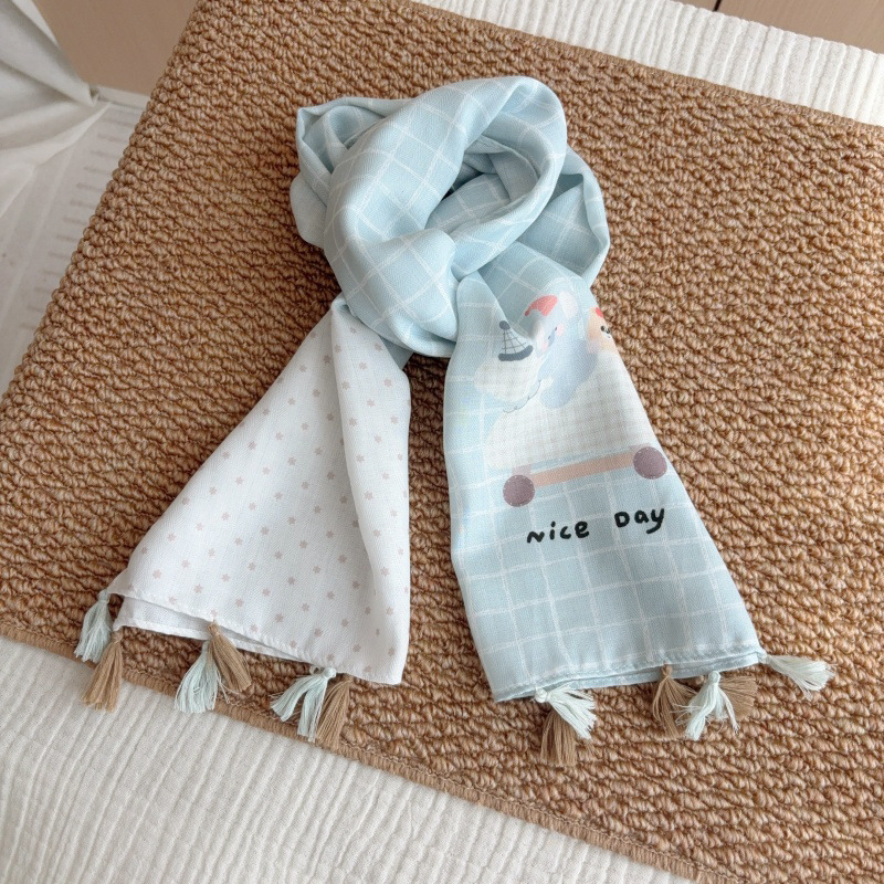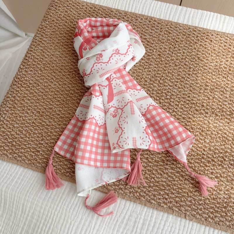 일본 복고풍 어린이 스카프 면 린넨 꽃 얇은 방풍 봄과 여름 아기의 스카프 작은 신선한 실크 스카프스토어 가기