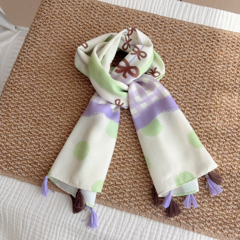 일본 복고풍 어린이 스카프 면 린넨 꽃 얇은 방풍 봄과 여름 아기의 스카프 작은 신선한 실크 스카프