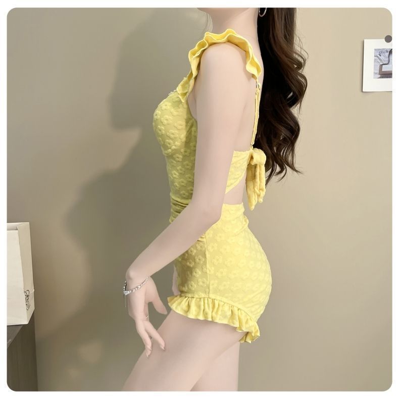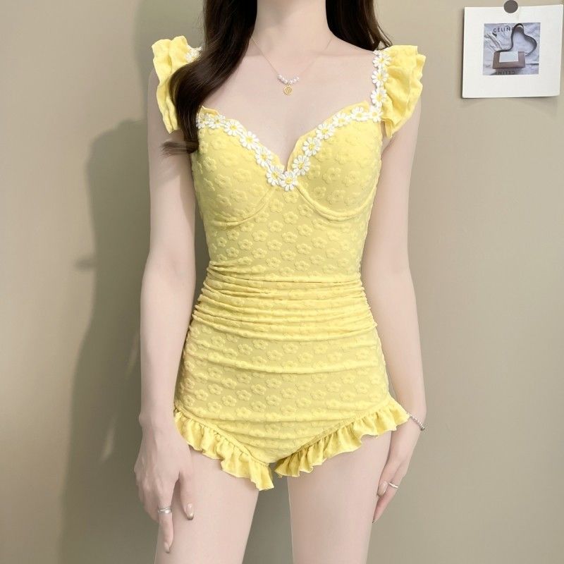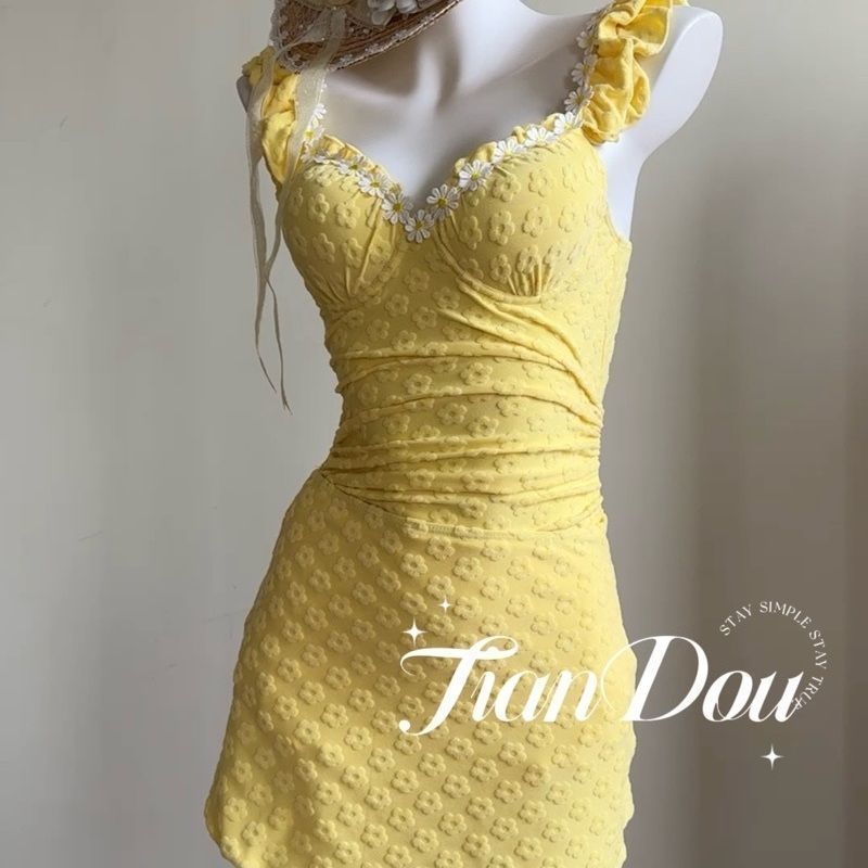 • 노란색 원피스 수영복 + 스커트