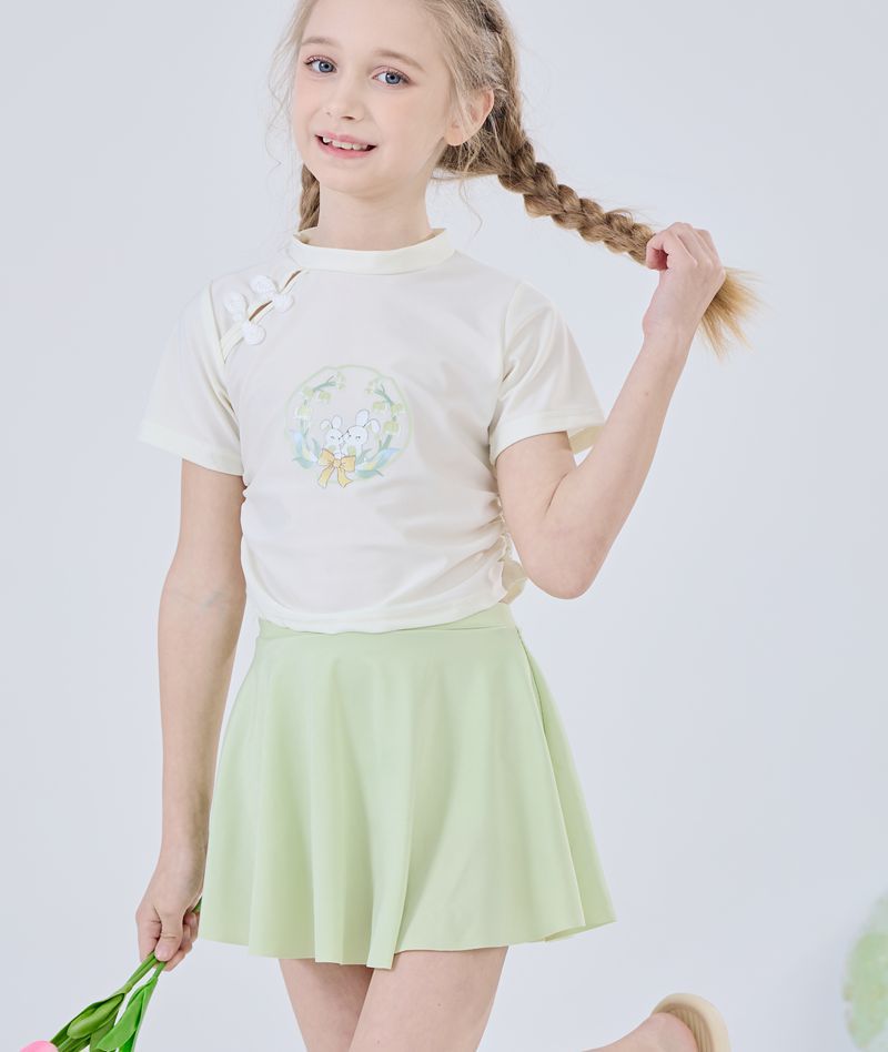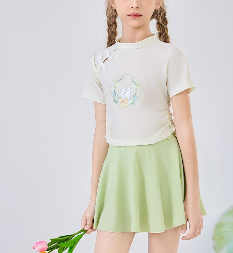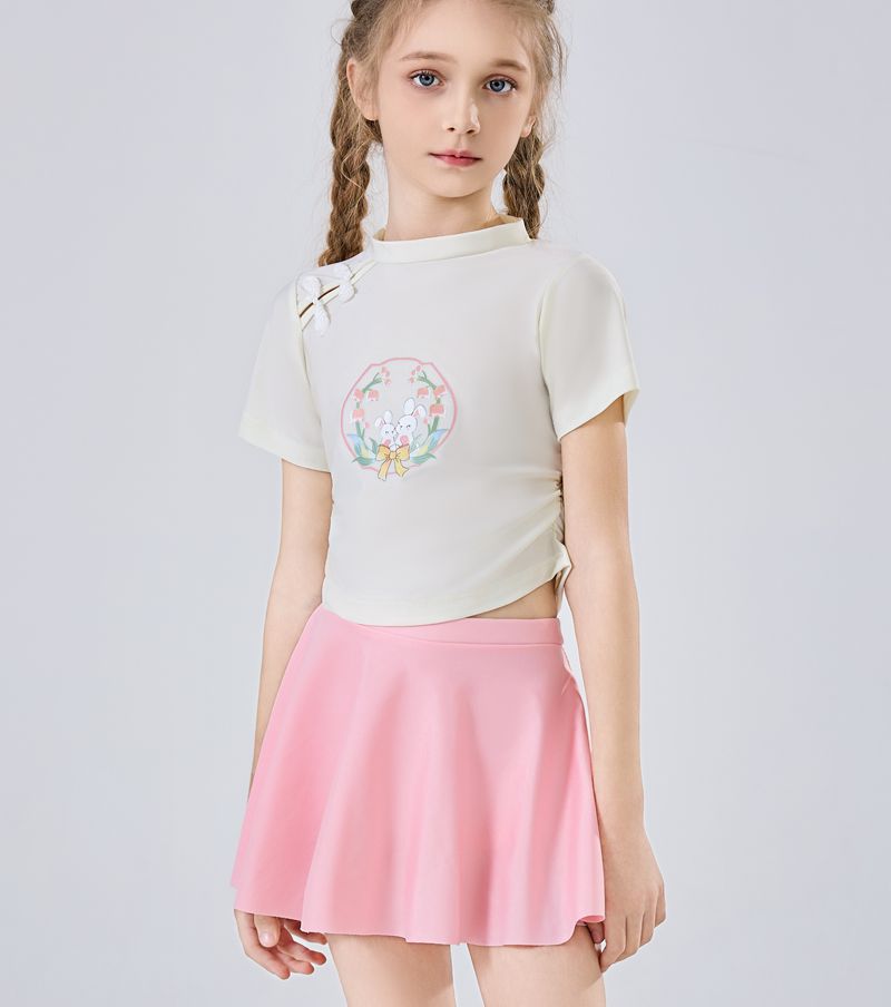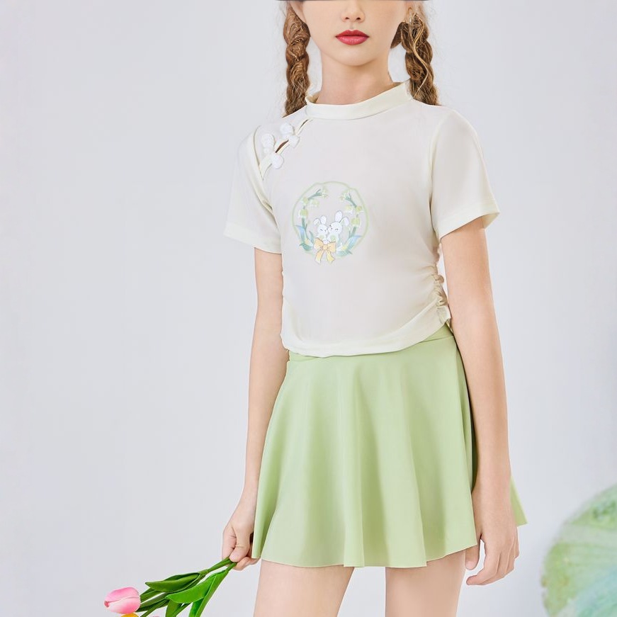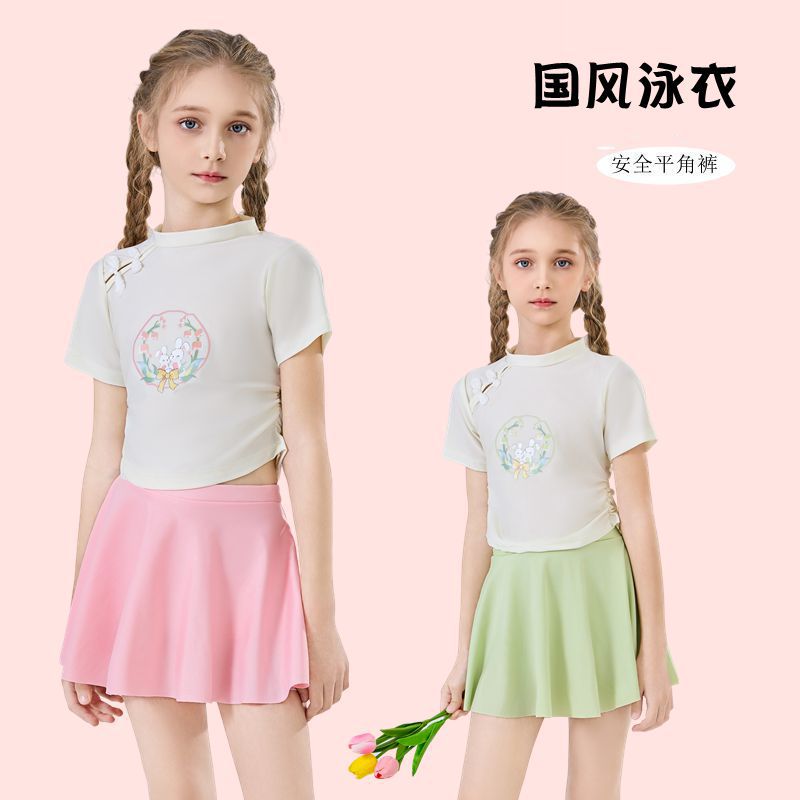 어린이 수영복 소녀 중 큰 어린이의 새로운 중국 스타일 국가 스타일 수영복 2025 새로운 귀여운 분할 빠른 건조 수영복 여름스토어 가기