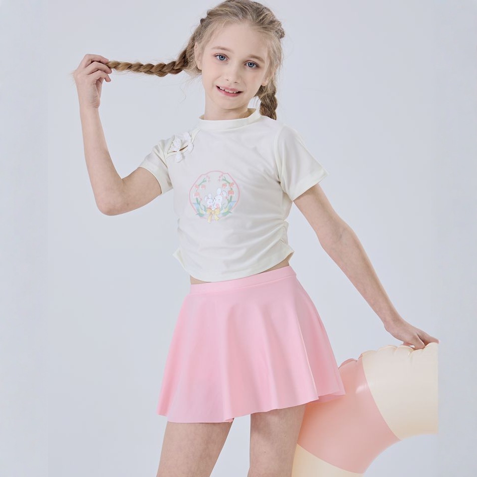 어린이 수영복 소녀 중 큰 어린이의 새로운 중국 스타일 국가 스타일 수영복 2025 새로운 귀여운 분할 빠른 건조 수영복 여름