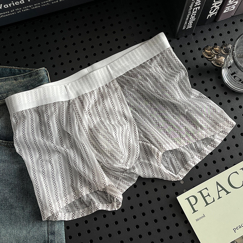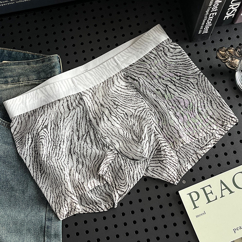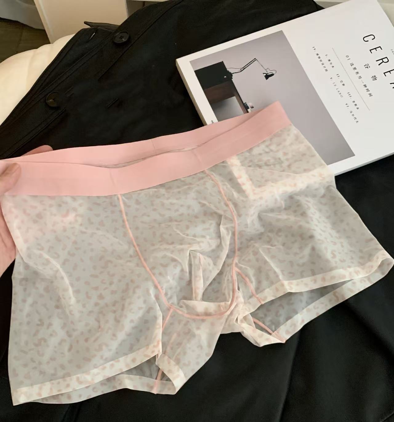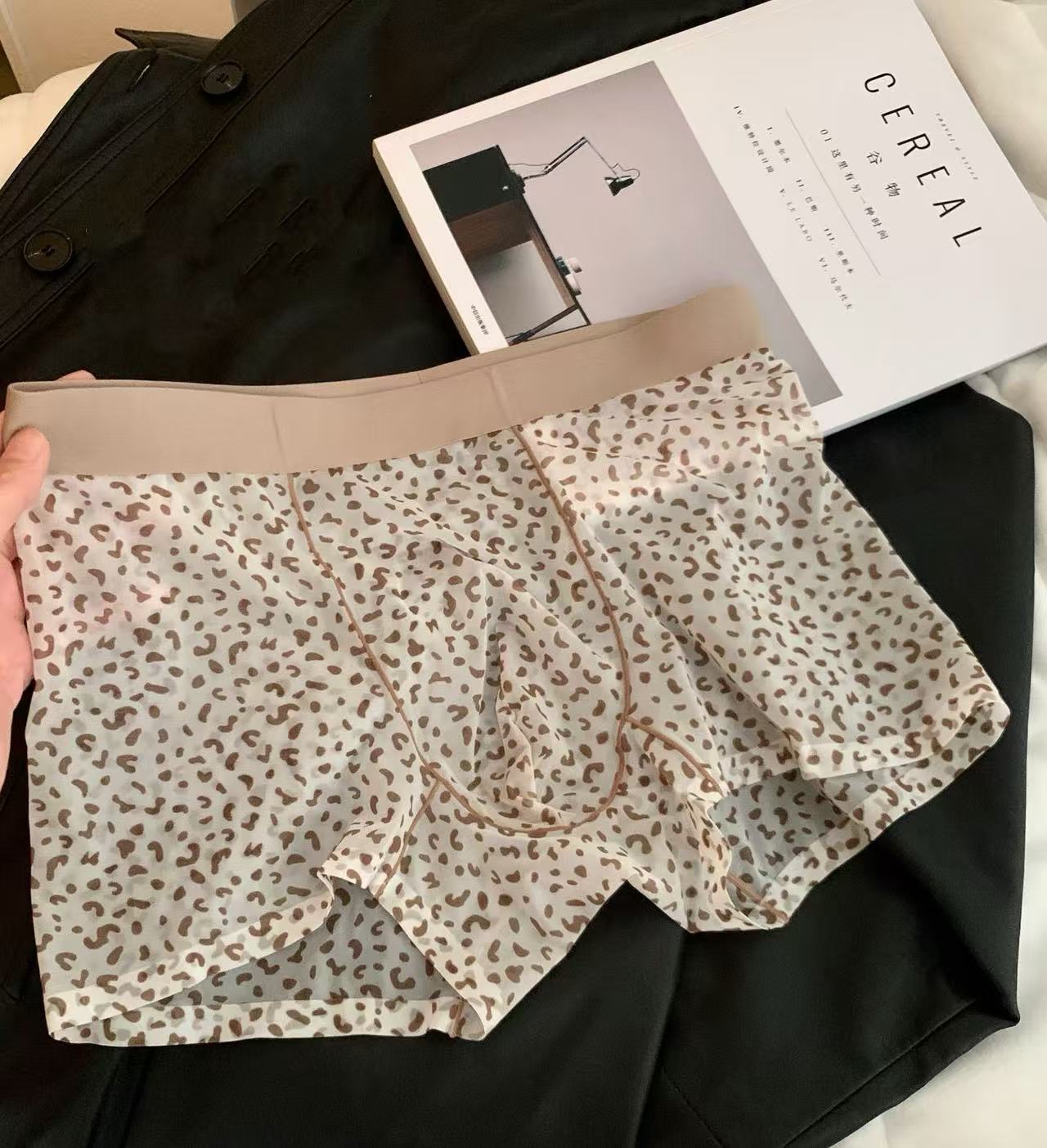 히알루 론산 남성 섹시 팬티 아이스 실크 레오파드 프린트 남성 플로팅 초박형 복서 반바지 프린트 폴카 도트