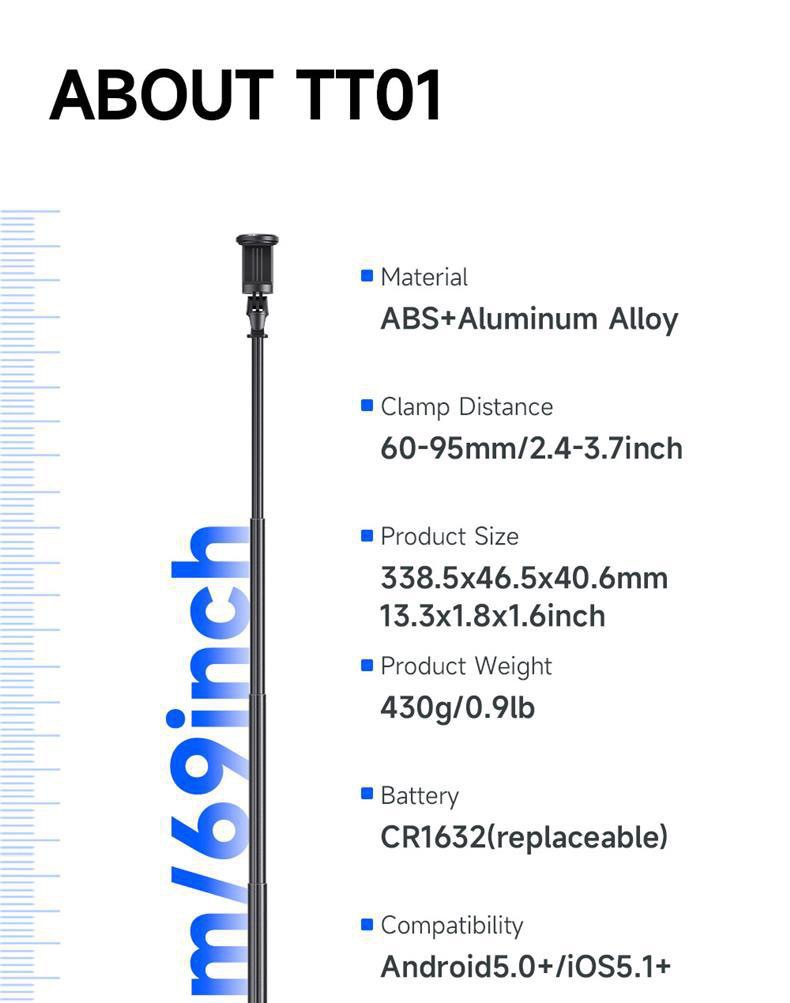 국경 간 신제품 TT01 블루투스 셀카 스틱 1.77 m 통합 사진 데스크톱 라이브 삼각대