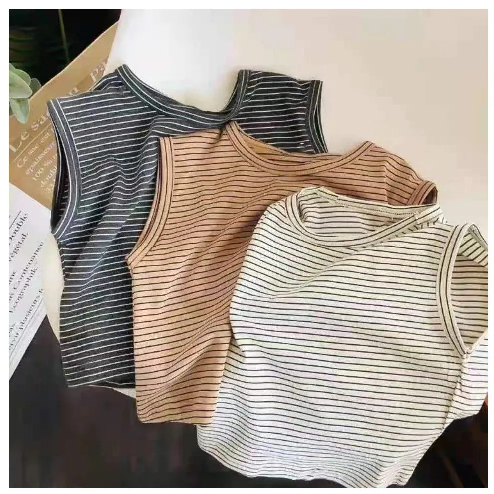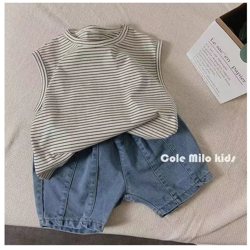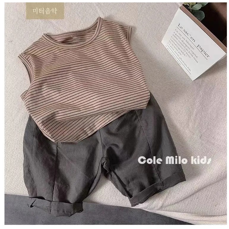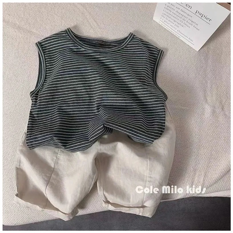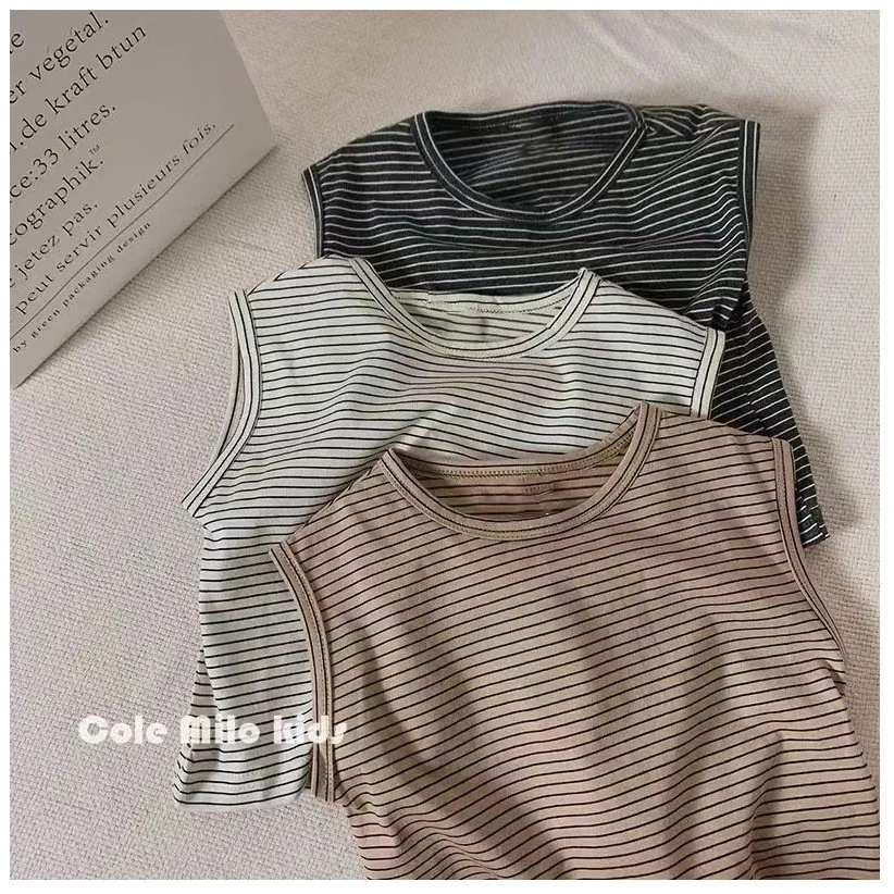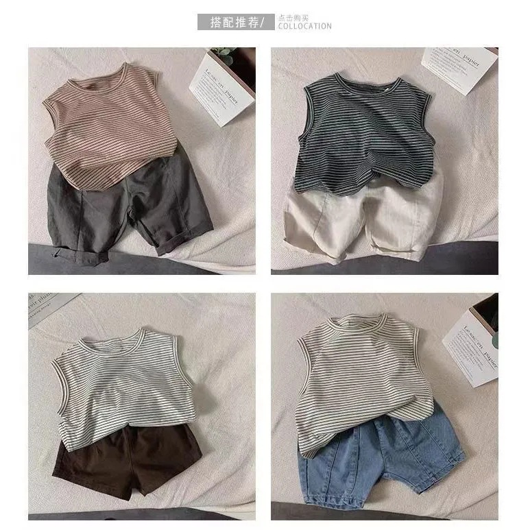 남학생 조끼 순면 민소매 루즈탑 여아용 줄무늬 티셔츠 어린이 유니버설 아우터 입고 한국식 T스토어 가기
