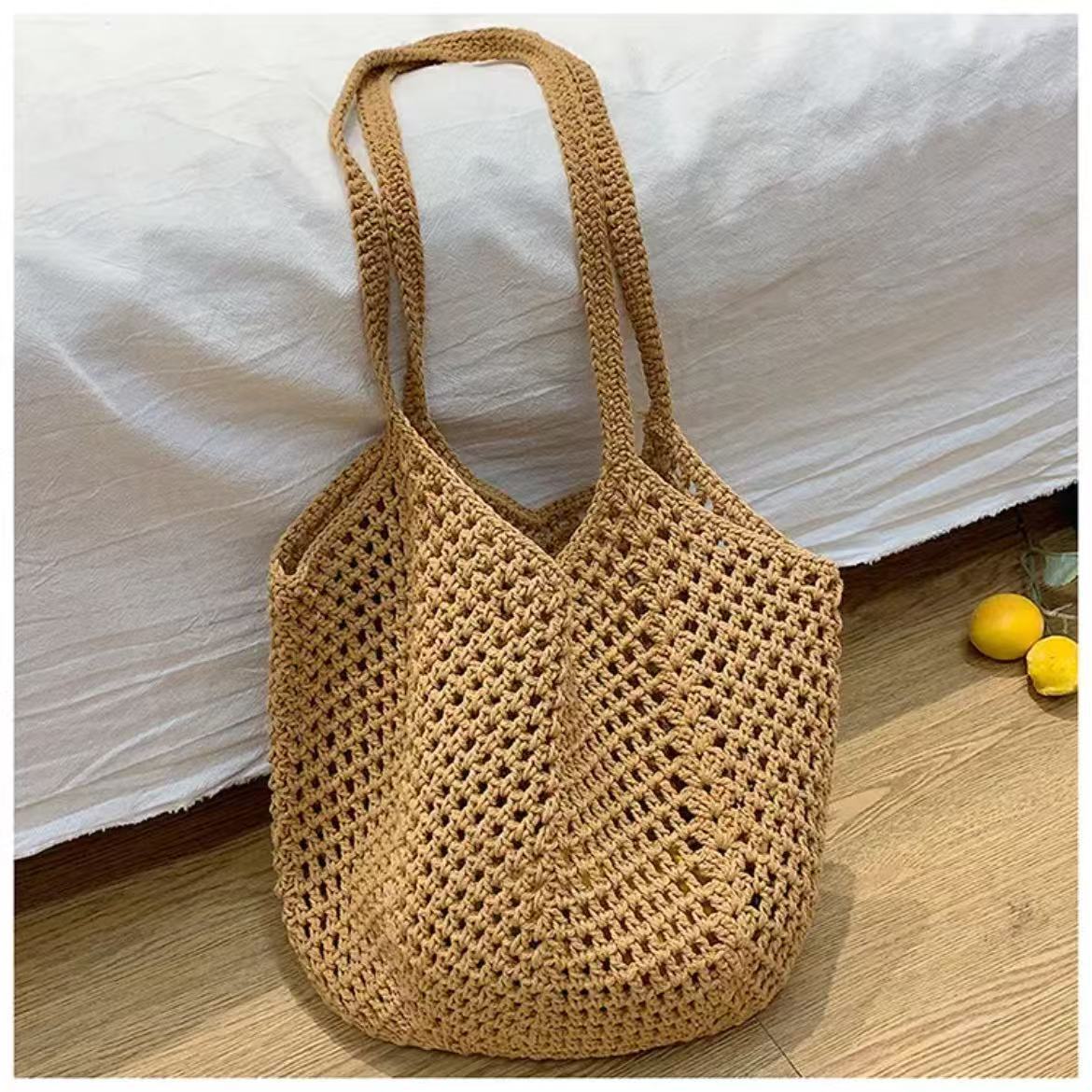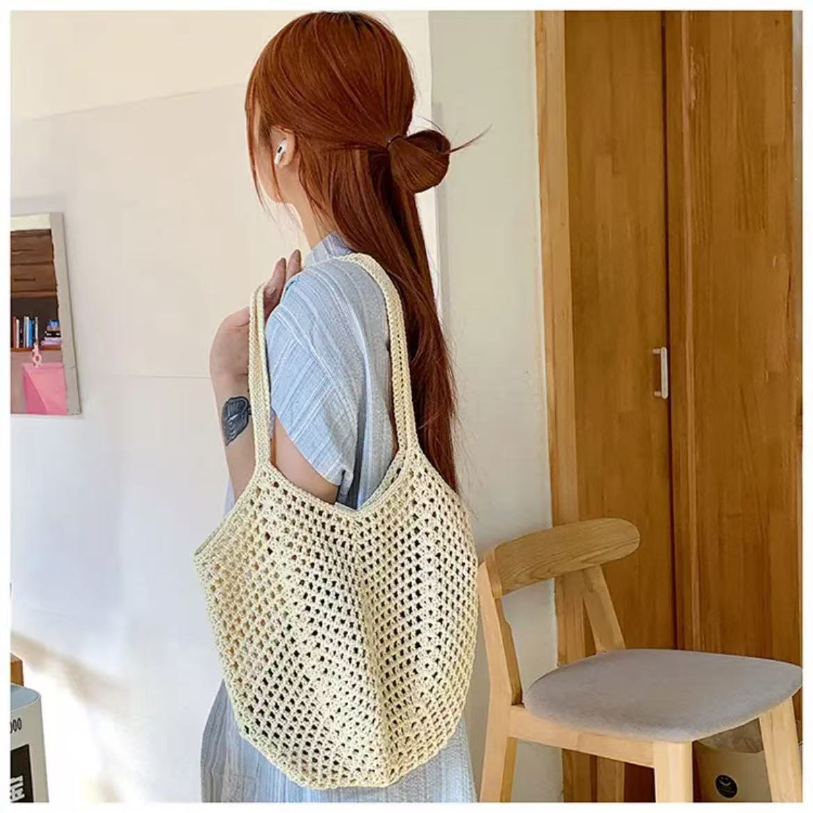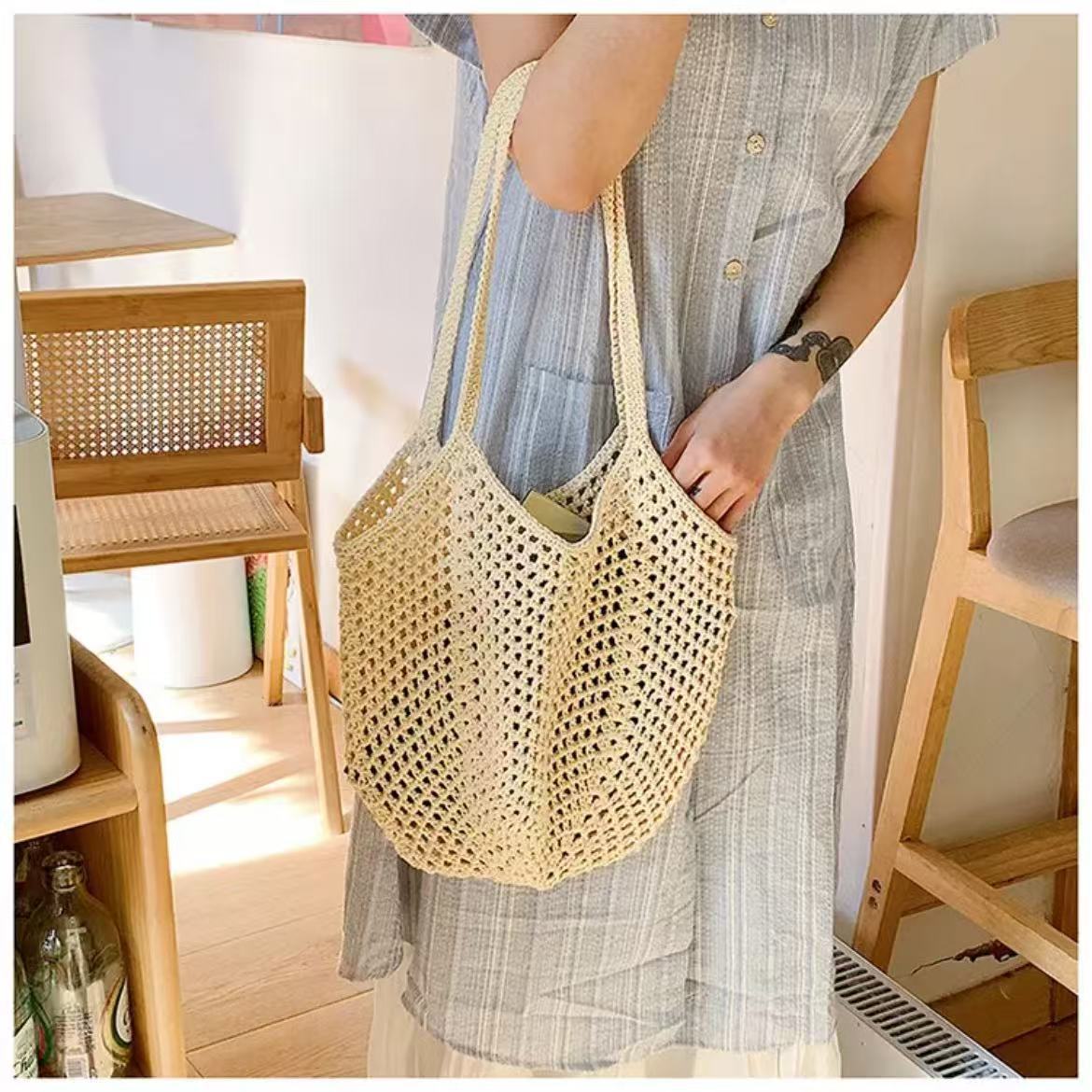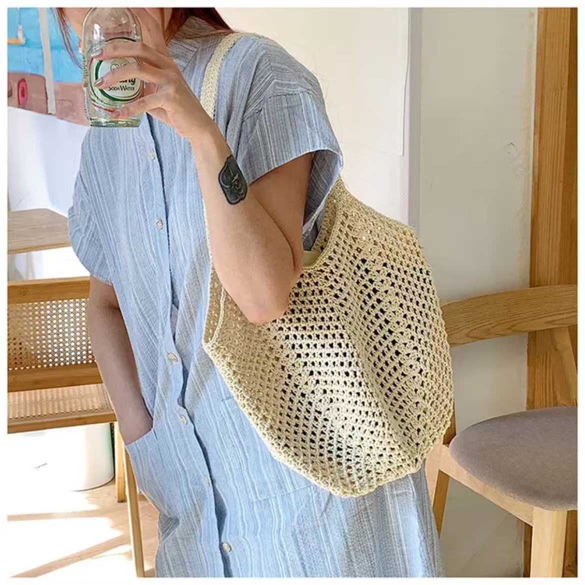 새로운 대용량 짠 가방 Senmeng 할로우 어깨 가방 해변 휴가 올 매치 비치 백 야채 바구니 핸드백스토어 가기