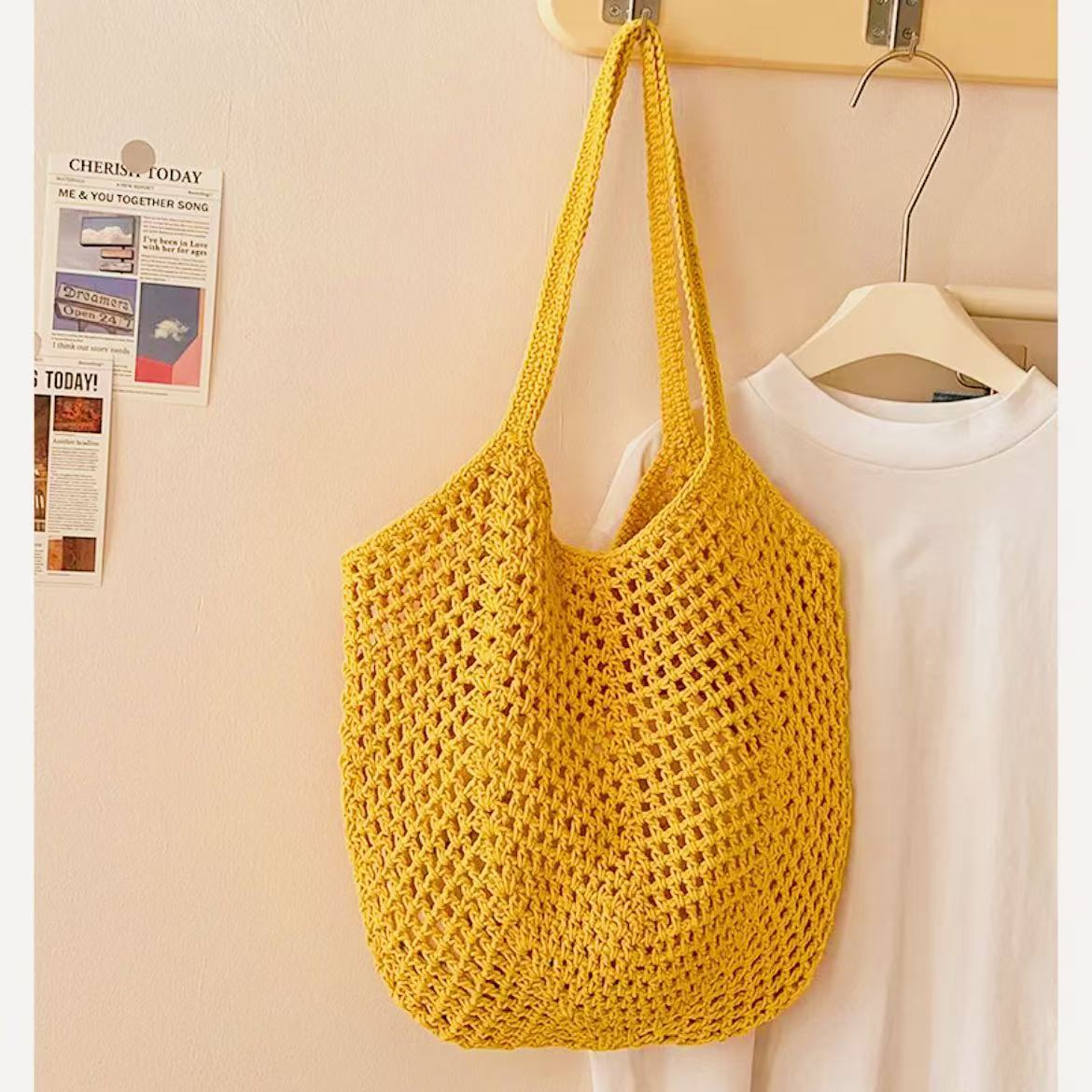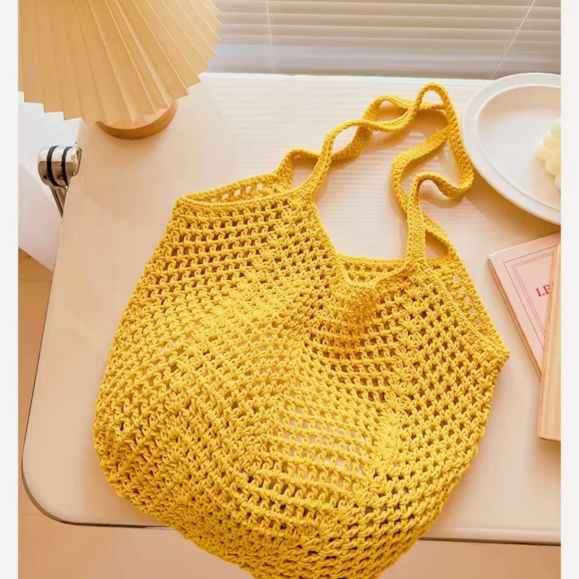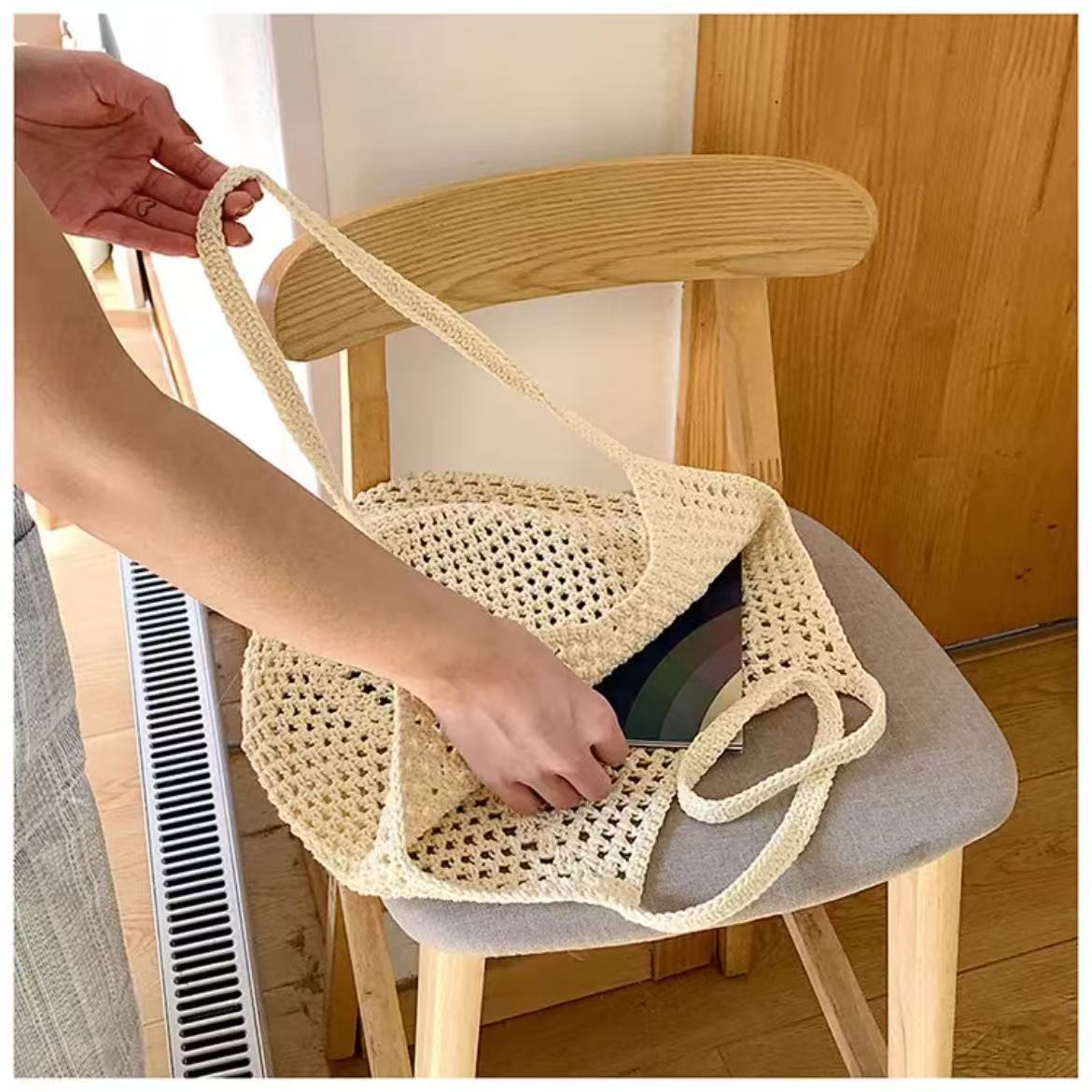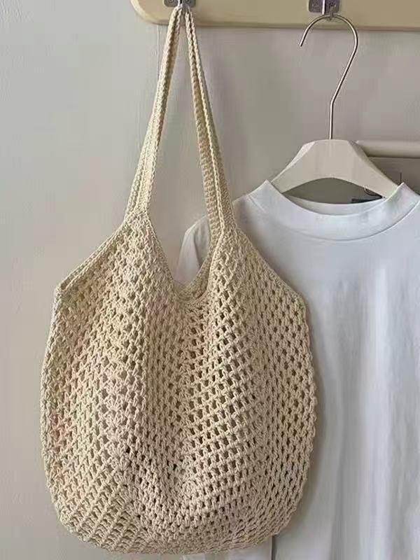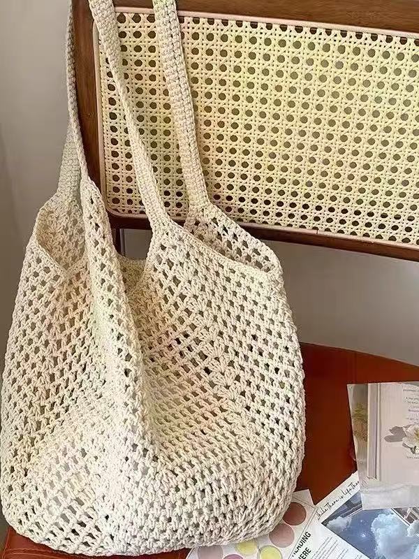 새로운 대용량 짠 가방 Senmeng 할로우 어깨 가방 해변 휴가 올 매치 비치 백 야채 바구니 핸드백스토어 가기