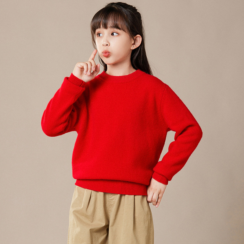 풀오버 아동복 탑 라운드 넥 겨울 스웨터 아동베이스 셔츠 2025 새로운 여성 니트 셔츠 가을과 겨울 소년과 소녀