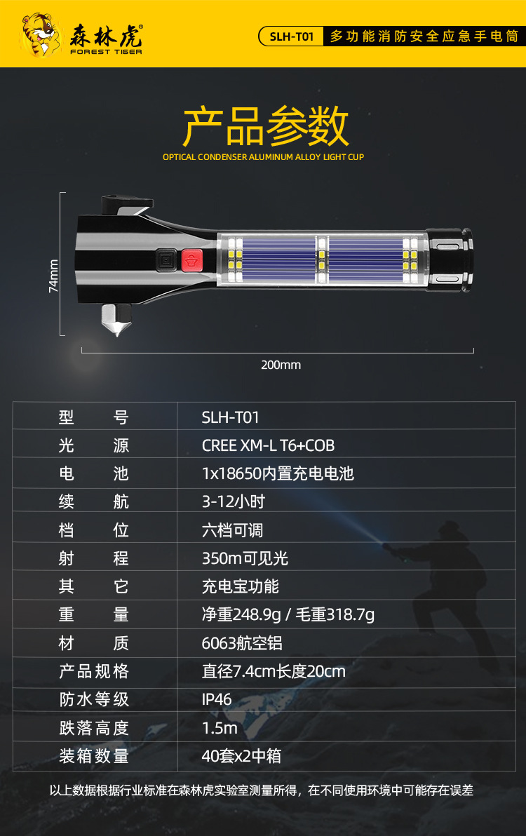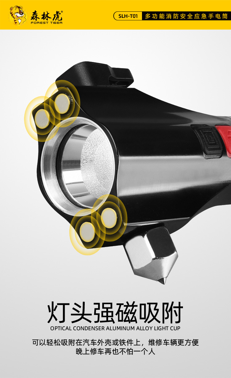 숲 호랑이 T01 강한 손전등 다기능 자동차 안전 망치 화재 비상 구조 USB 충전 작업 조명스토어 가기