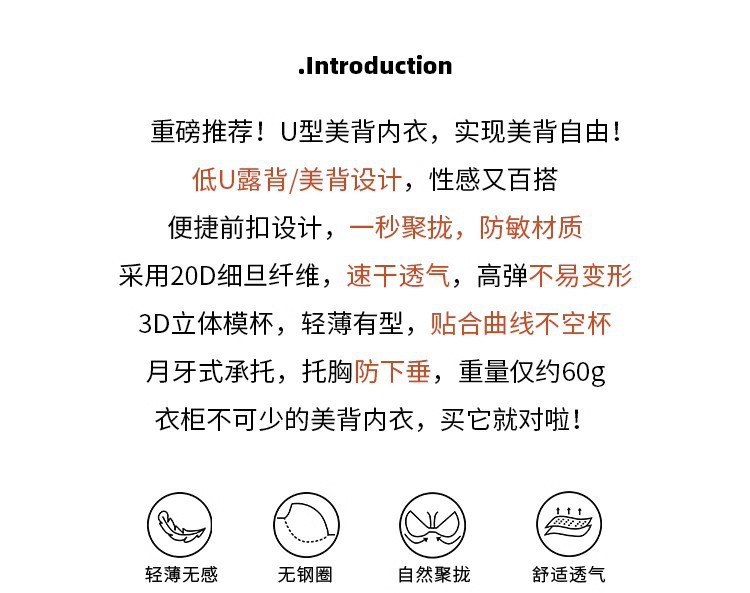 매끄러운 등이없는 아름다운 뒷면 U 자형 여름 초박형 브래지어 작은 유방 관리 앞 버클 빈 컵이 아닌 속옷 큰 수집