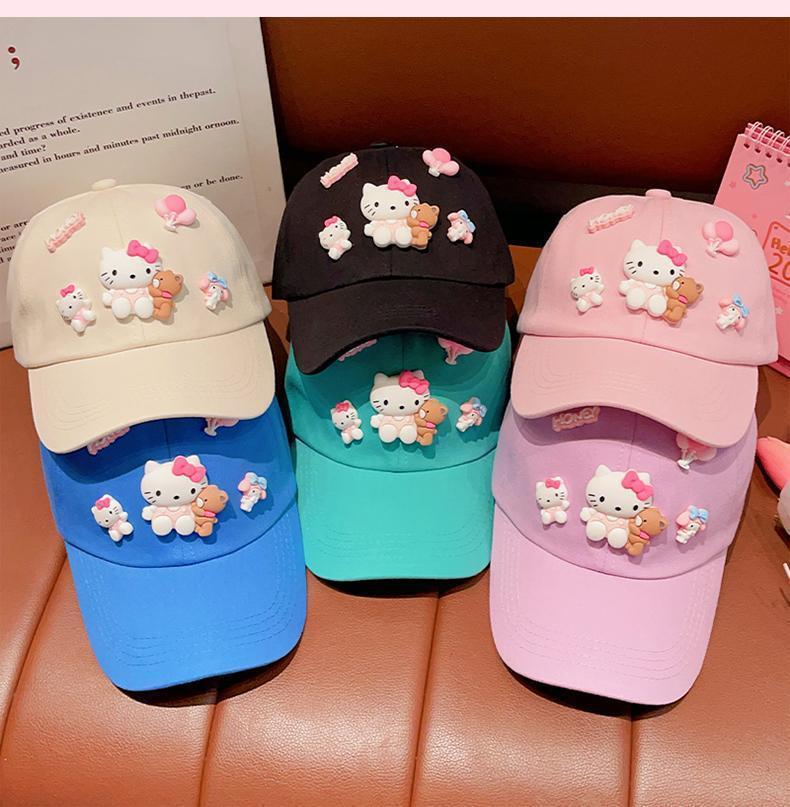 어린이 모자 2025 봄과 가을 소녀 만화 Kt 고양이 모든 경기 야구 모자 어린 소녀 선 스크린 모자스토어 가기