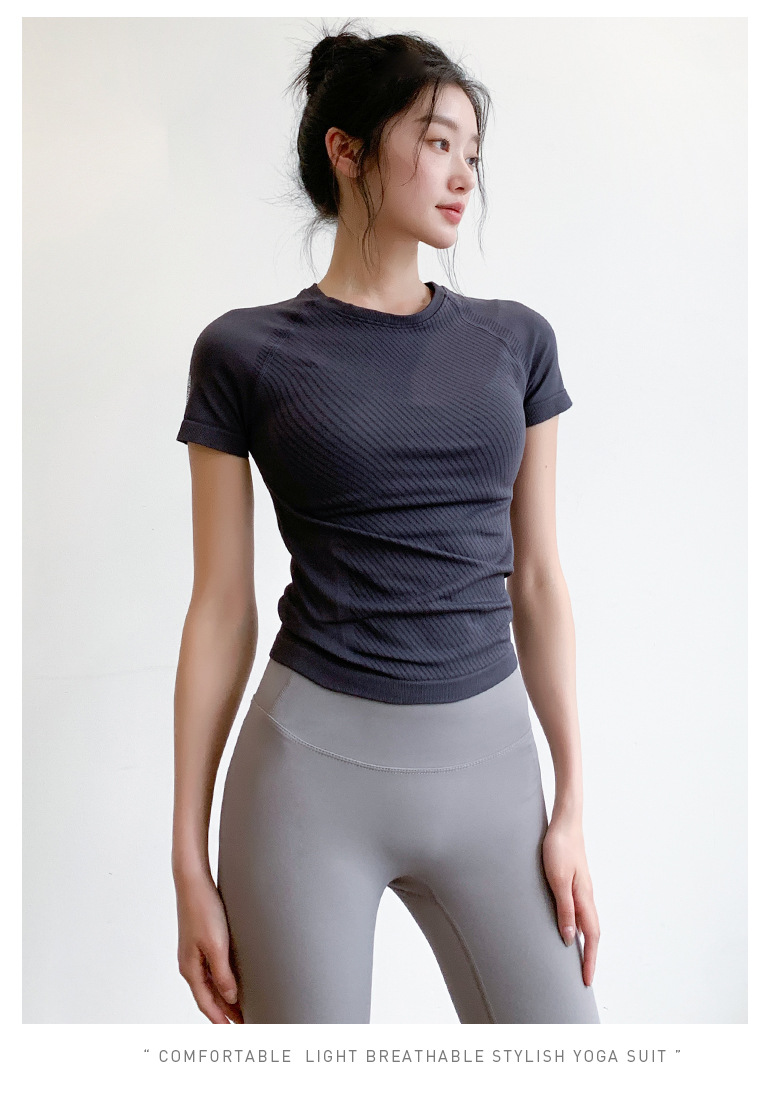 여성용 요가복, 초봄 고급 아침 달리기 운동, 타이트한 슬리밍 필라테스 트레이닝 베이스 레이어 스포츠 반팔 상의스토어 가기
