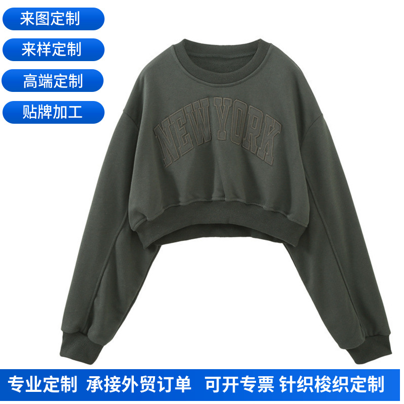 맞춤형 트렌디 브랜드 영국 루즈 라운드 넥 스웨트 셔츠 짧은 문자 패치 자수 단색 오프 숄더 다용도 패션 풀오버스토어 가기