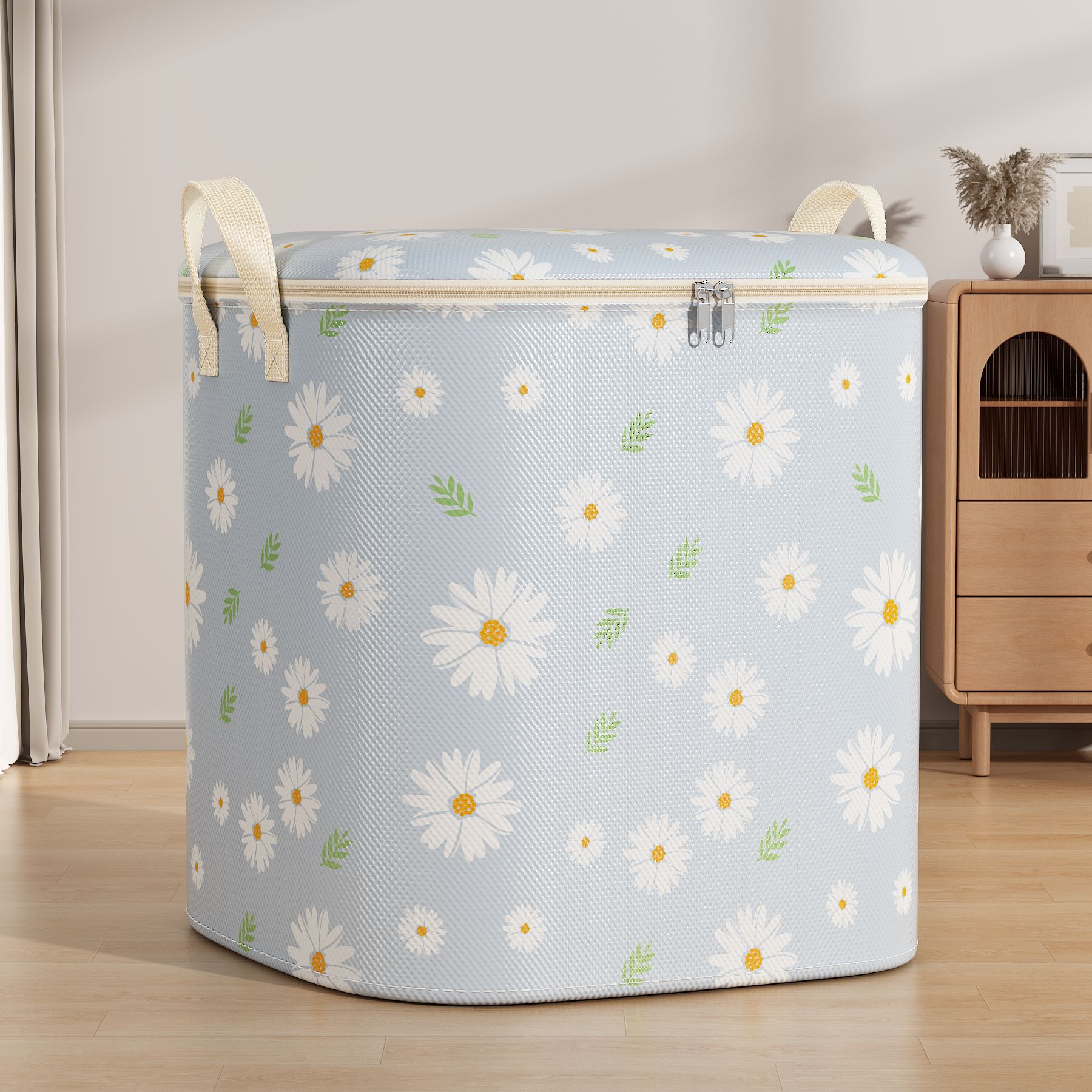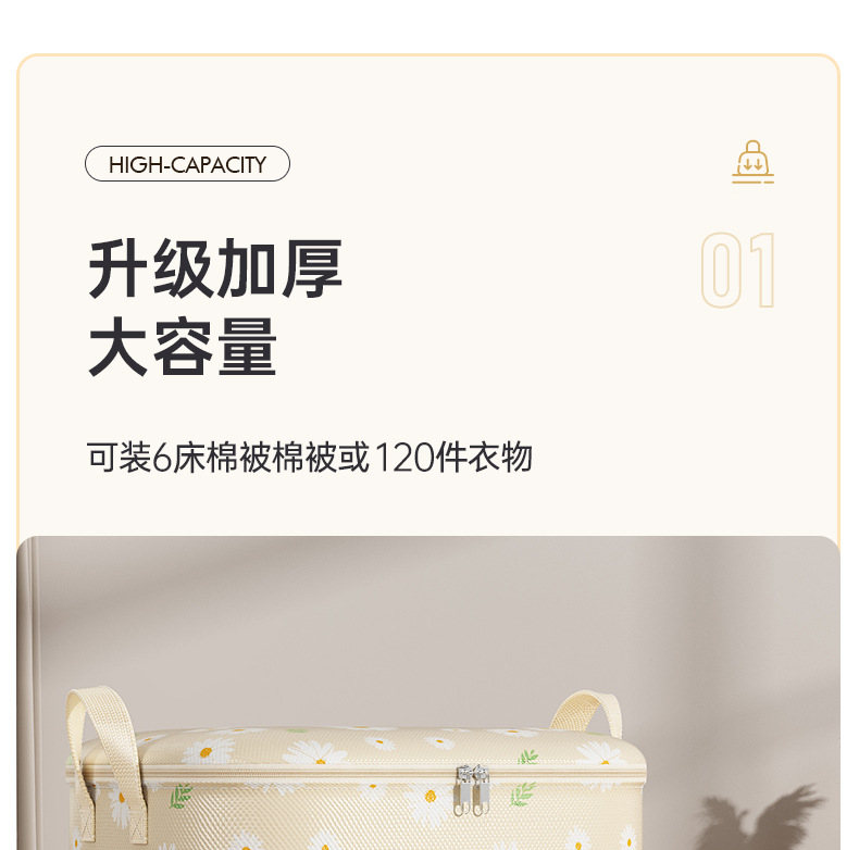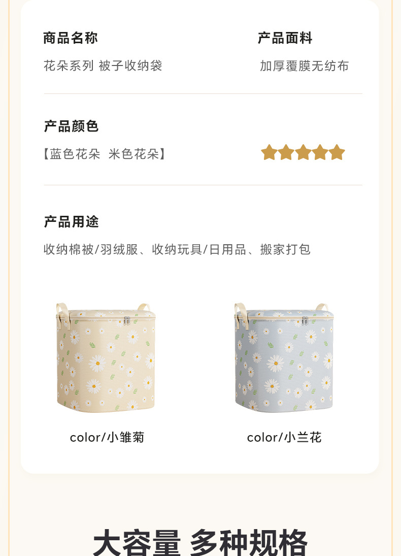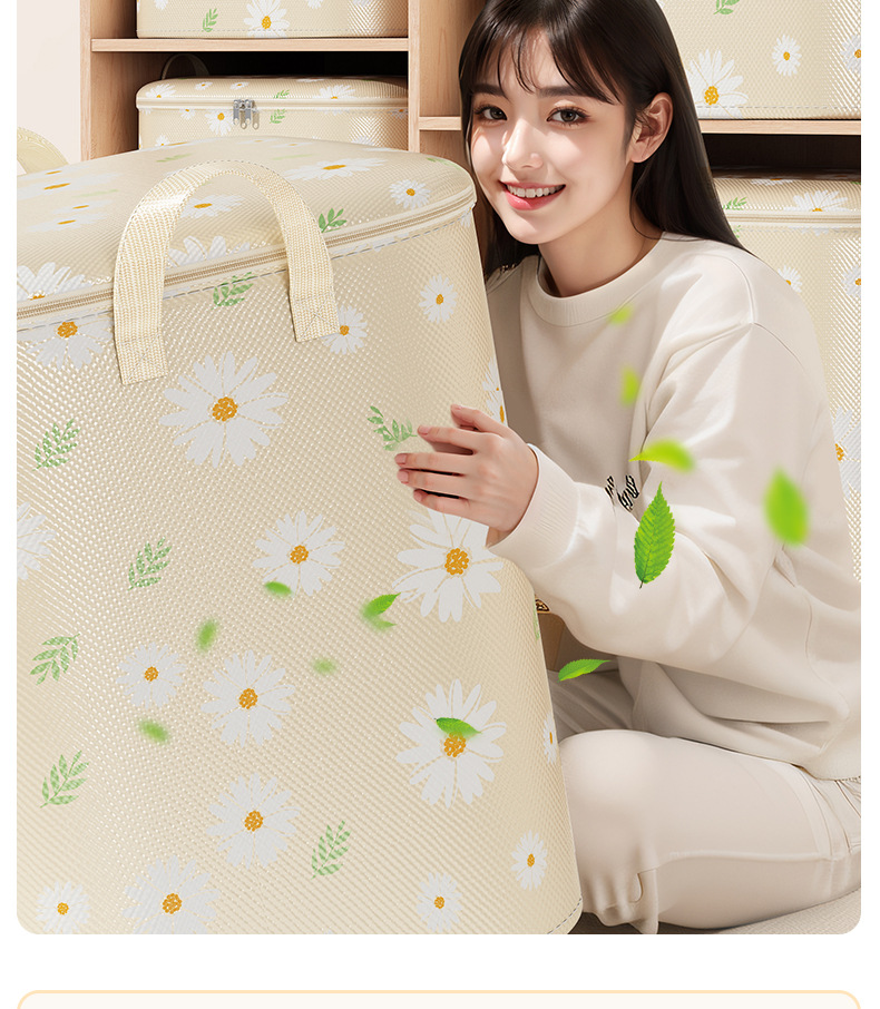 데이지 퀼트 저장 가방 대용량 의류 이불 부직포 이동 가방 여행 포장 더플 가방