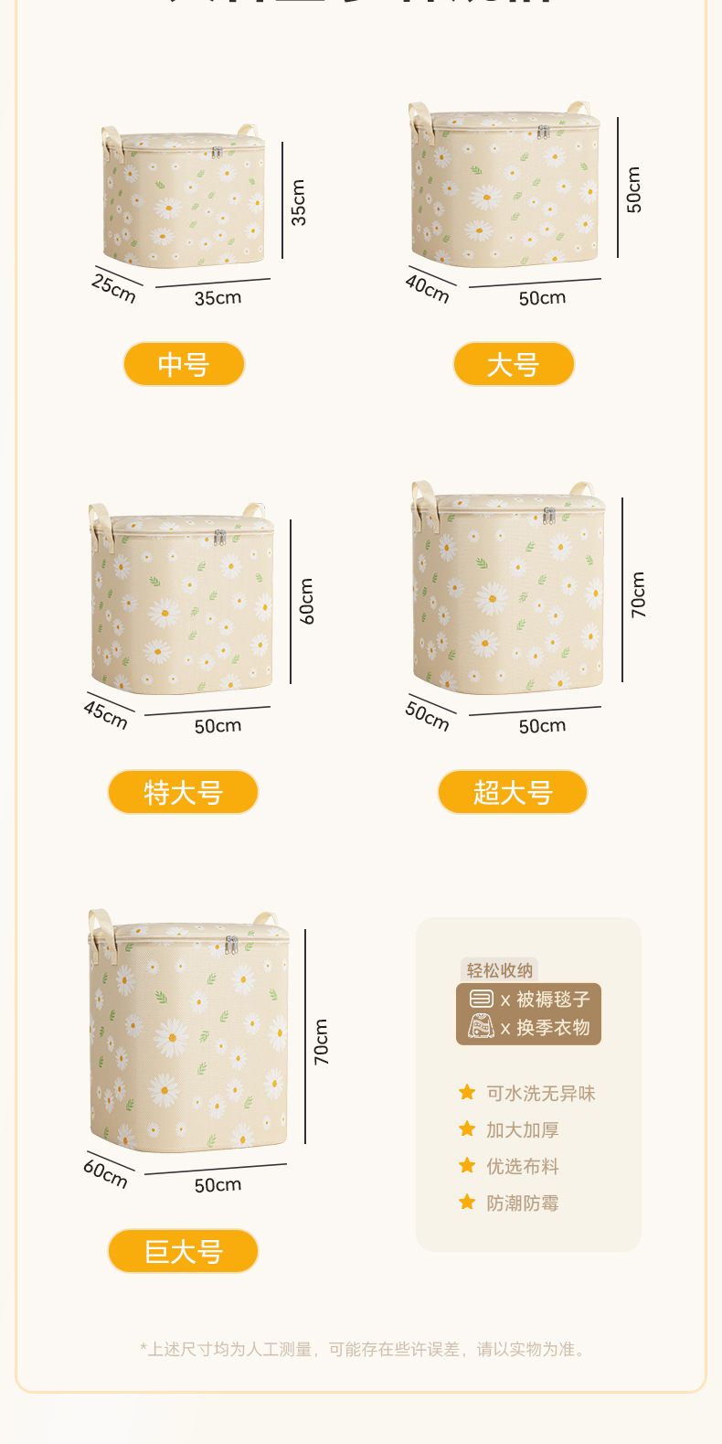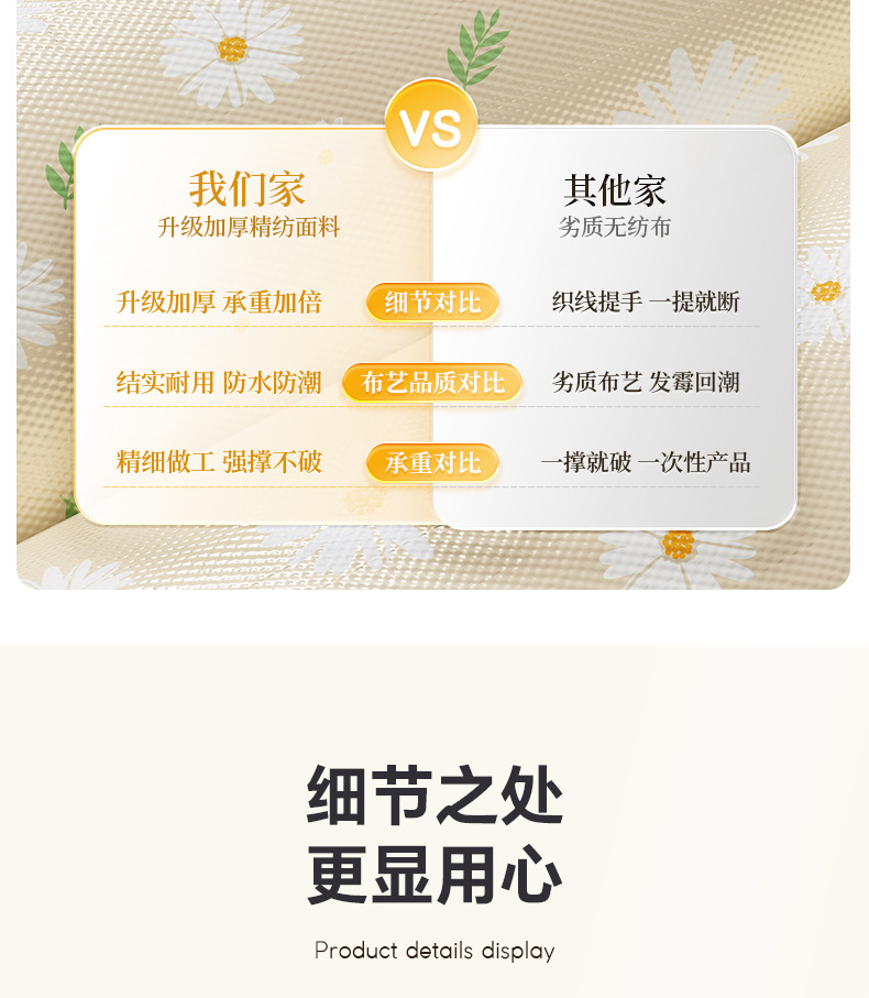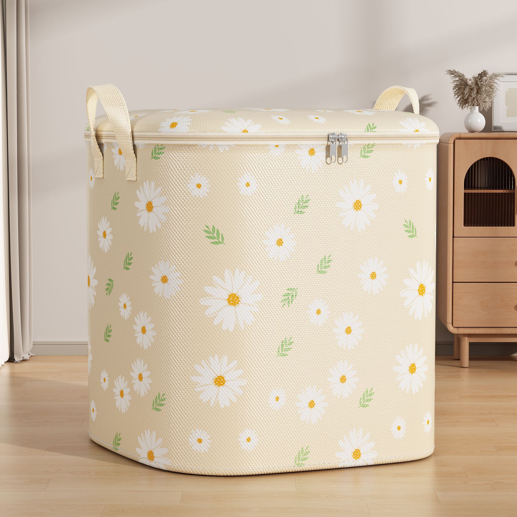 데이지 퀼트 저장 가방 대용량 의류 이불 부직포 이동 가방 여행 포장 더플 가방