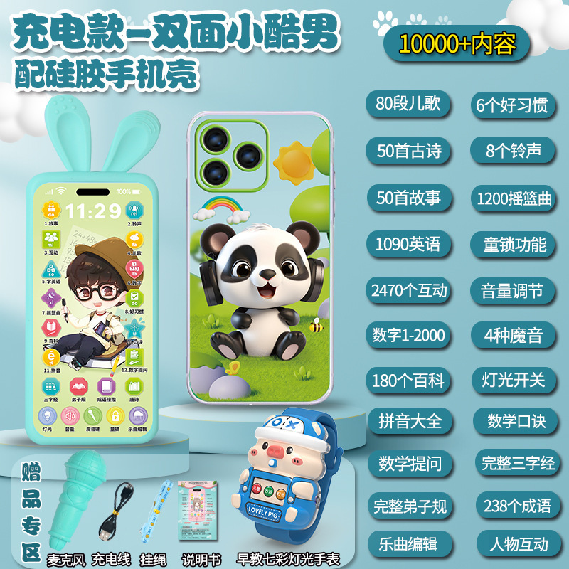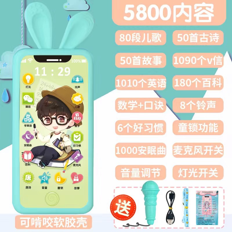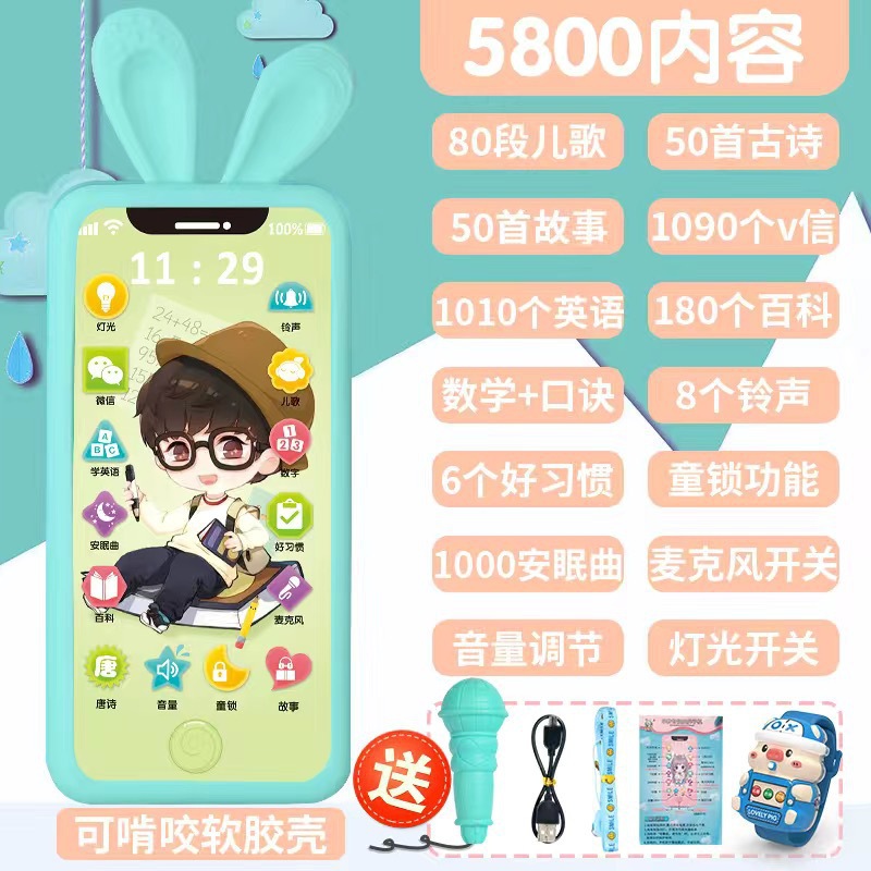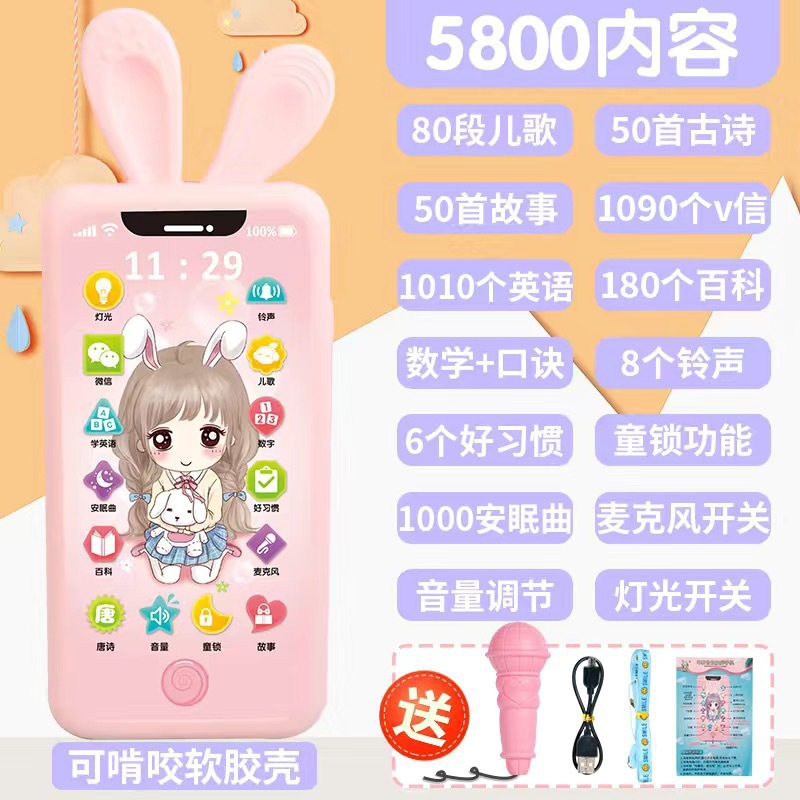 • [충전식 버전] 프린스 5800 콘텐츠 + 휴대폰 케이스 + 유아교육용 시계 - 무료 마이크 끈