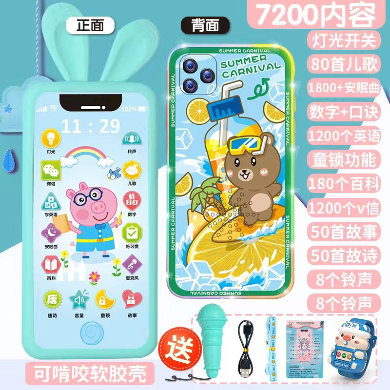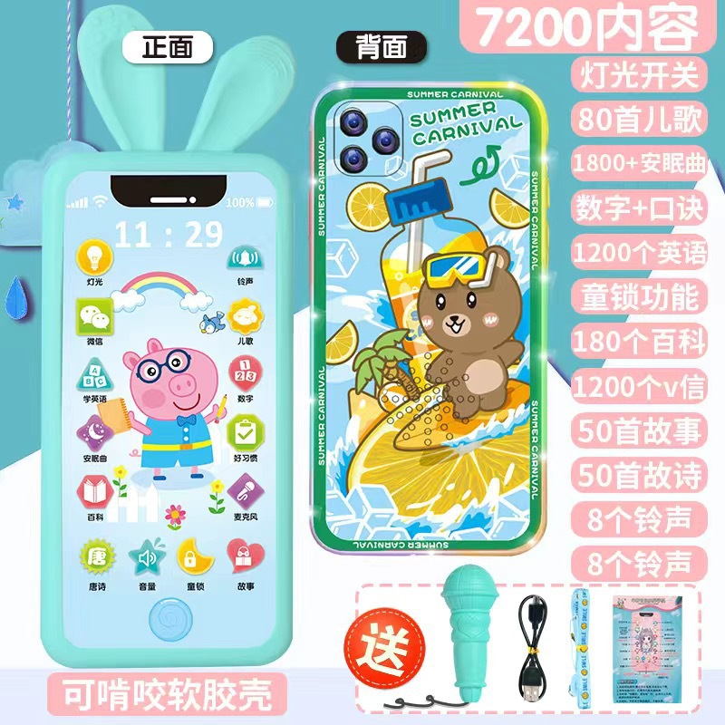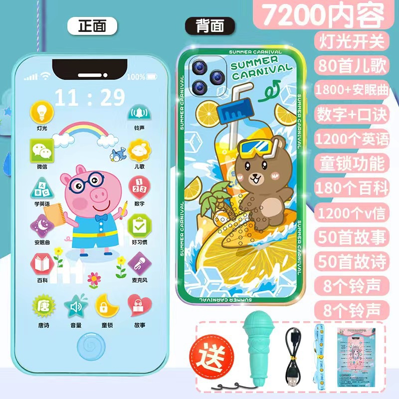 • [다채로운 충전식 버전] 블루피그 7200 콘텐츠 + 휴대폰 케이스 + 유아교육용 시계 - 무료 마이크 끈