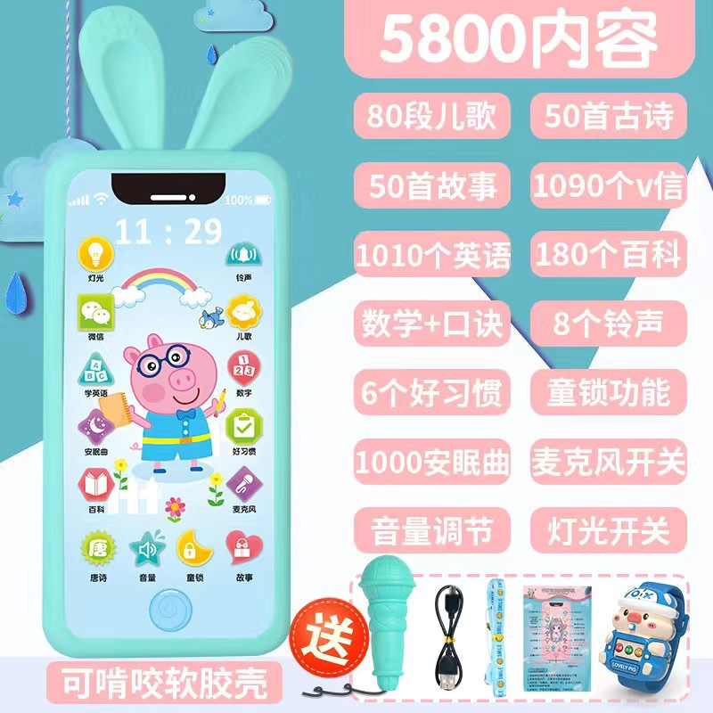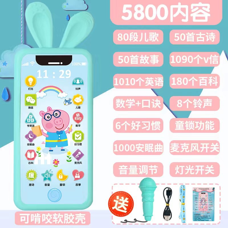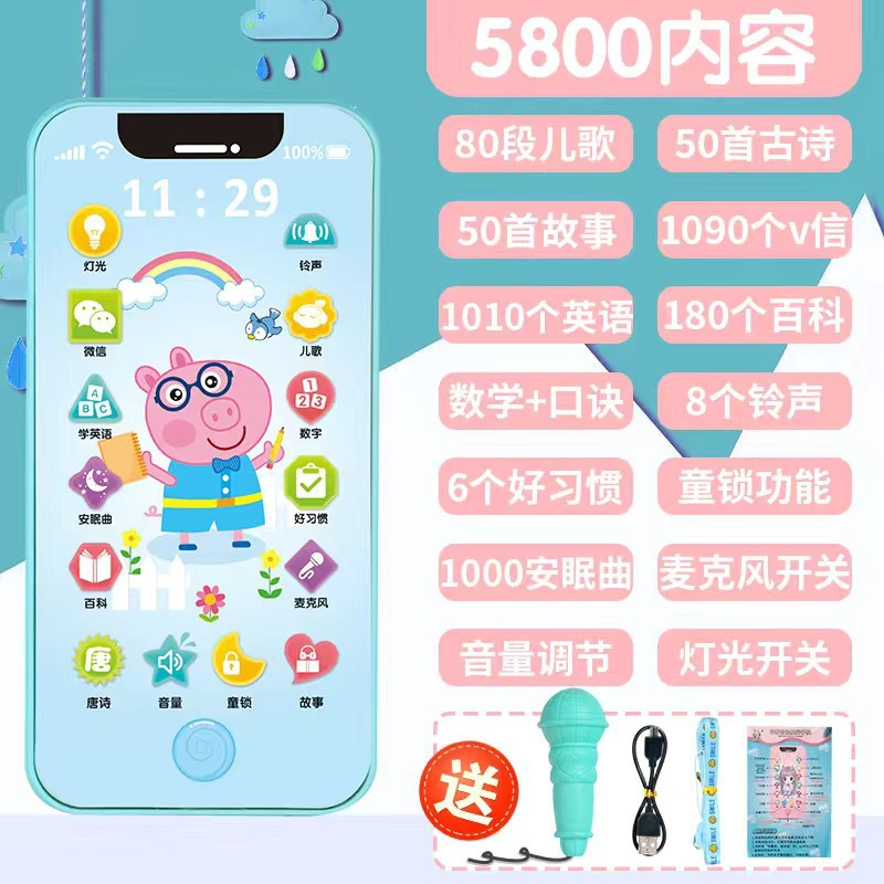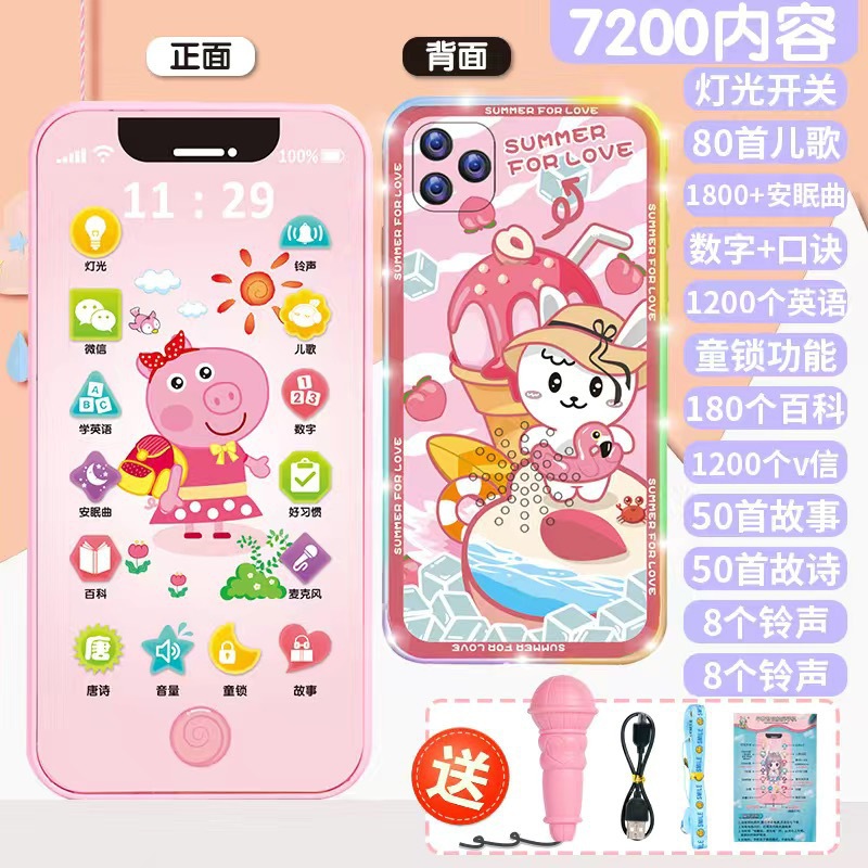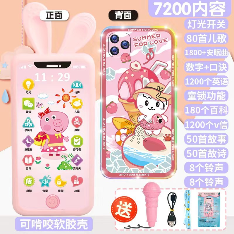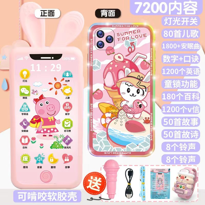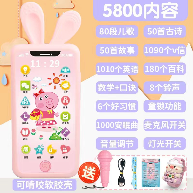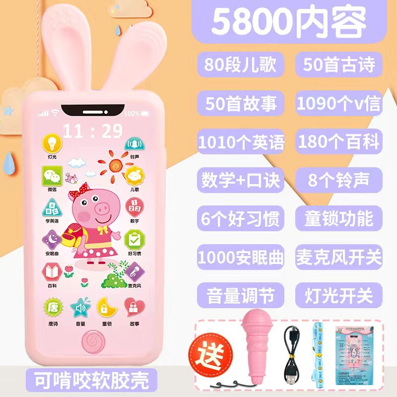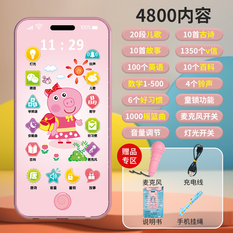 • [충전식 버전] 핑크돼지 5800 콘텐츠 + 휴대폰 케이스 + 유아교육용 시계 - 무료 마이크 끈
