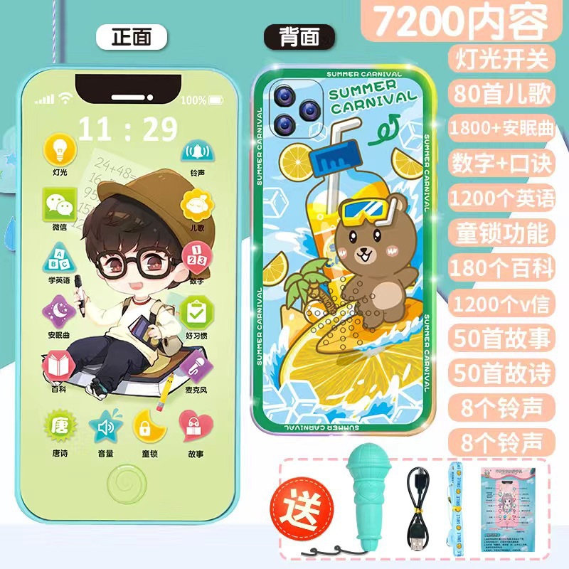 • [다채로운 충전식 버전] 프린스 7200 콘텐츠 + 휴대폰 케이스 + 유아교육용 시계 - 무료 마이크 끈