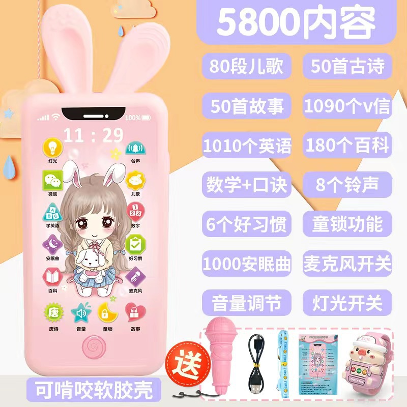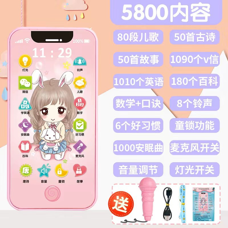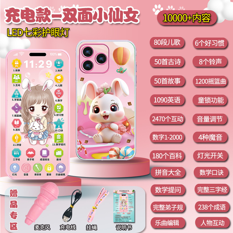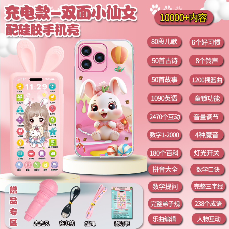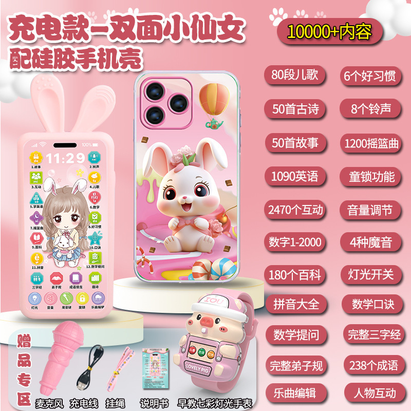• [충전식 버전] 프린세스 5800 콘텐츠 + 휴대폰 케이스 + 유아교육용 시계 - 무료 마이크 끈