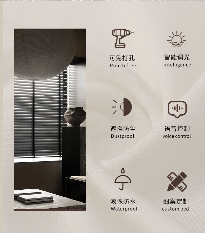 샹그릴라 커튼 소프트 거즈 블라인드 현기증 방지 펀치 프리 사무실 욕실 거실 침실 빛 차단
