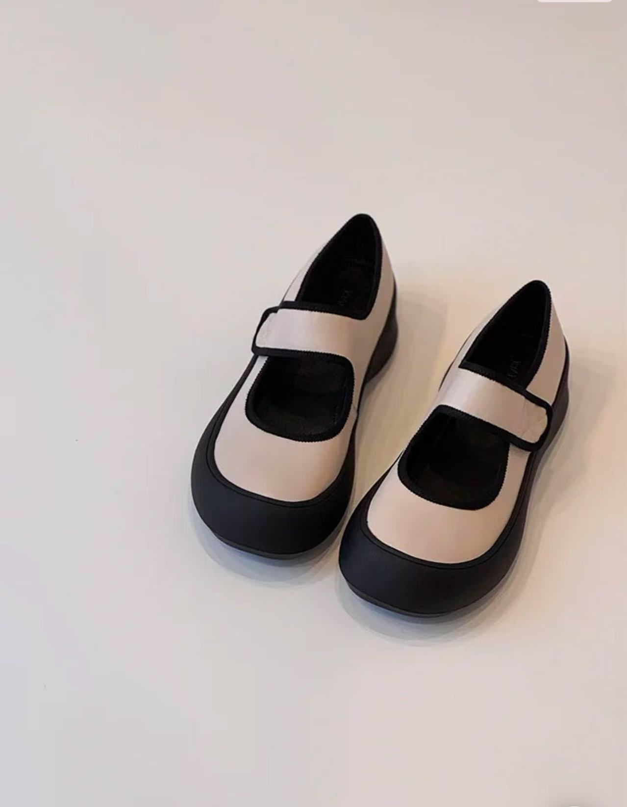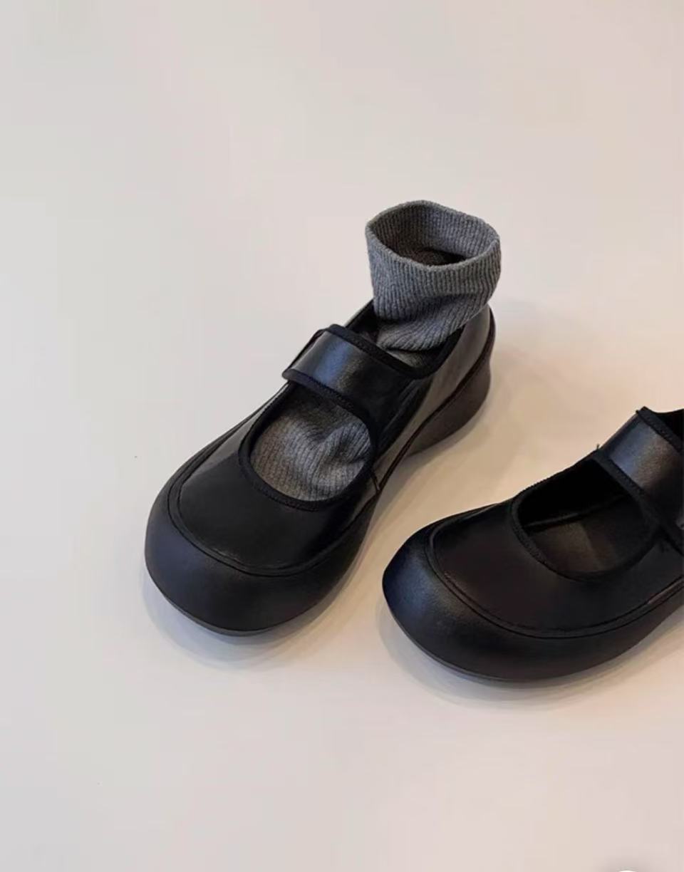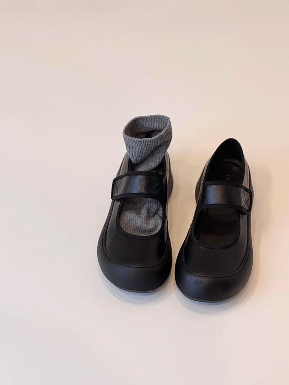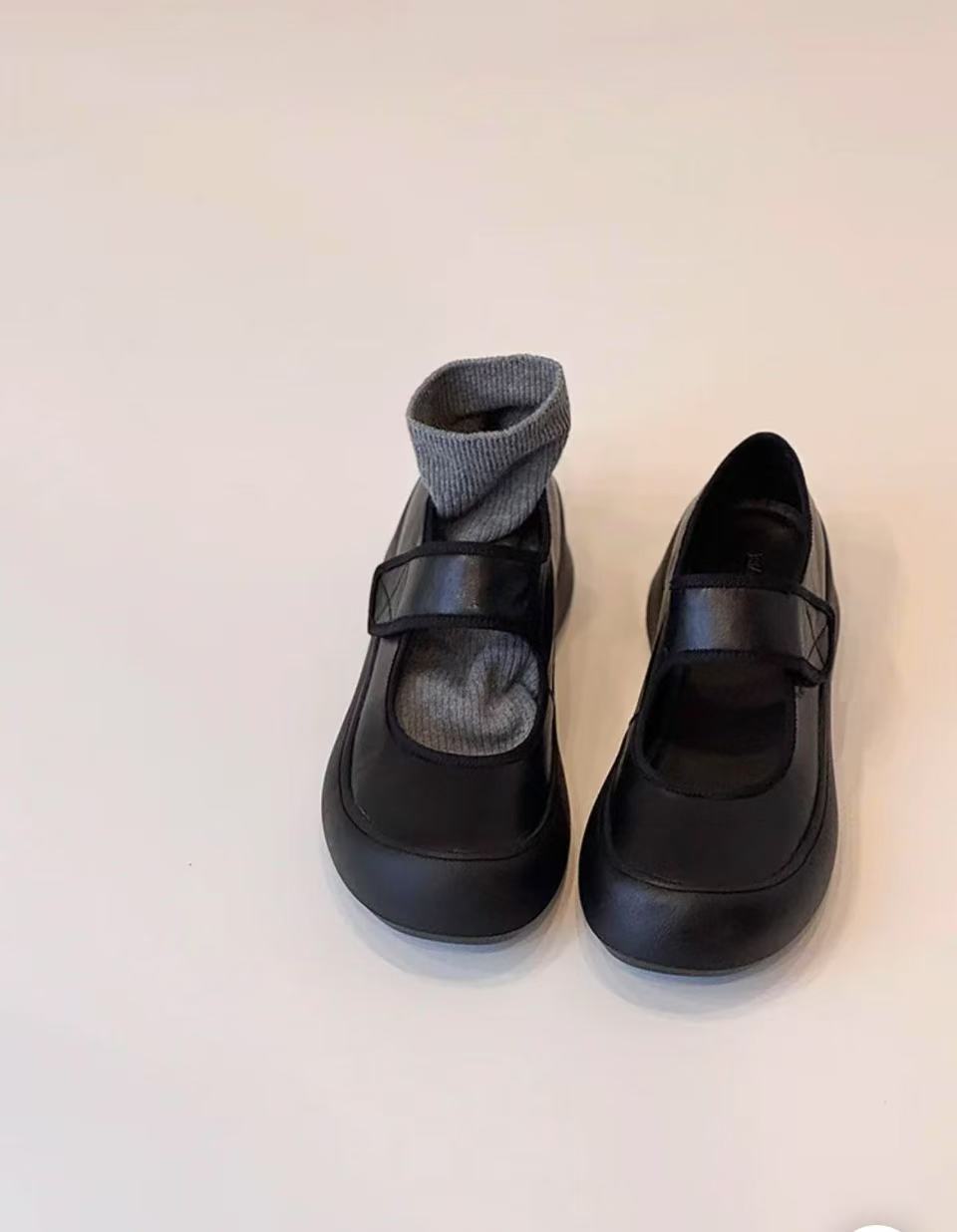 즉시 구매 가능~ 두꺼운 밑창 스포츠 벨크로 메리제인 슈즈 여성용 만능 라운드 토 가죽 슈즈 레트로 발레 슈즈