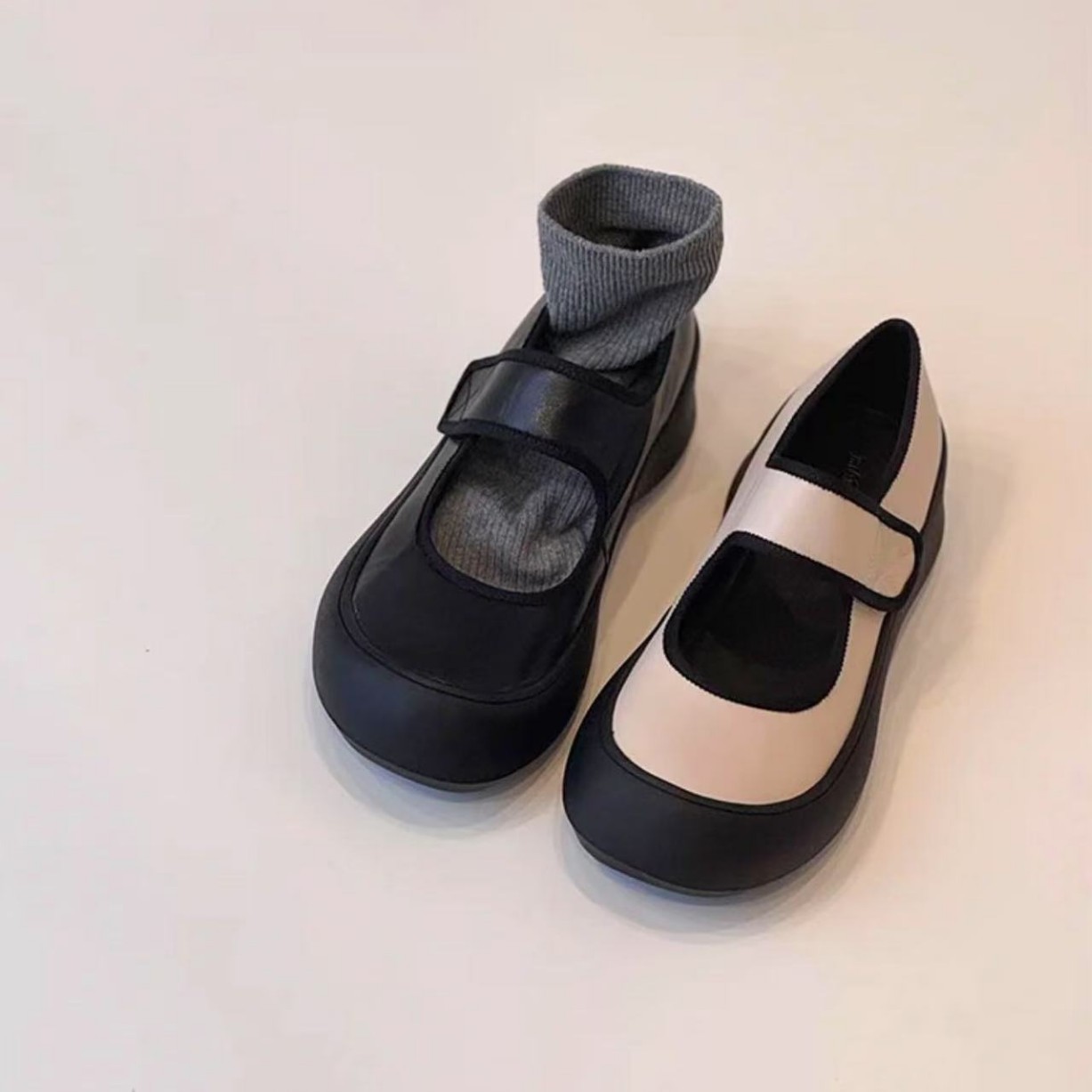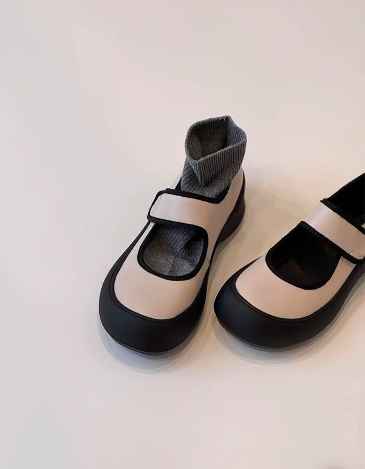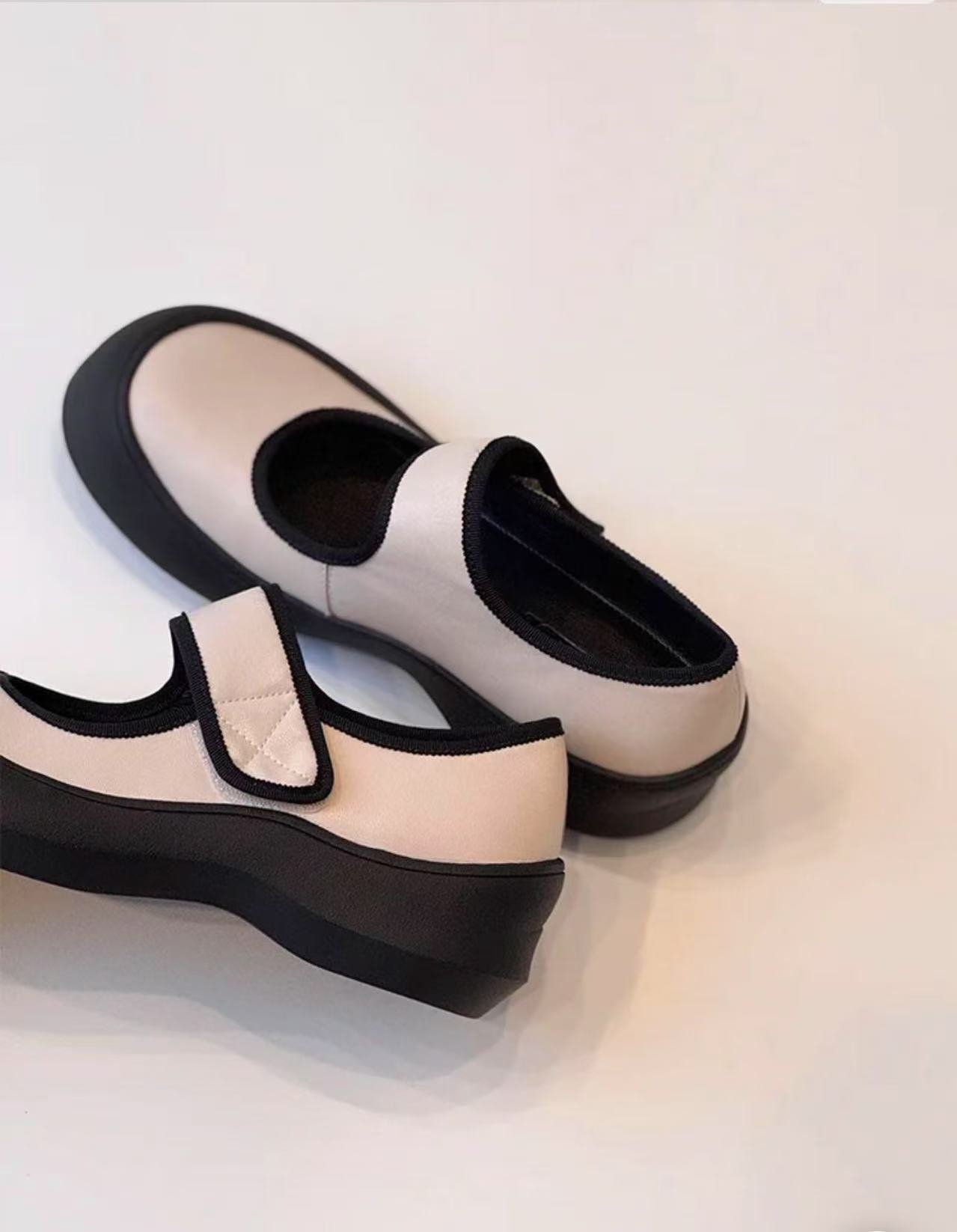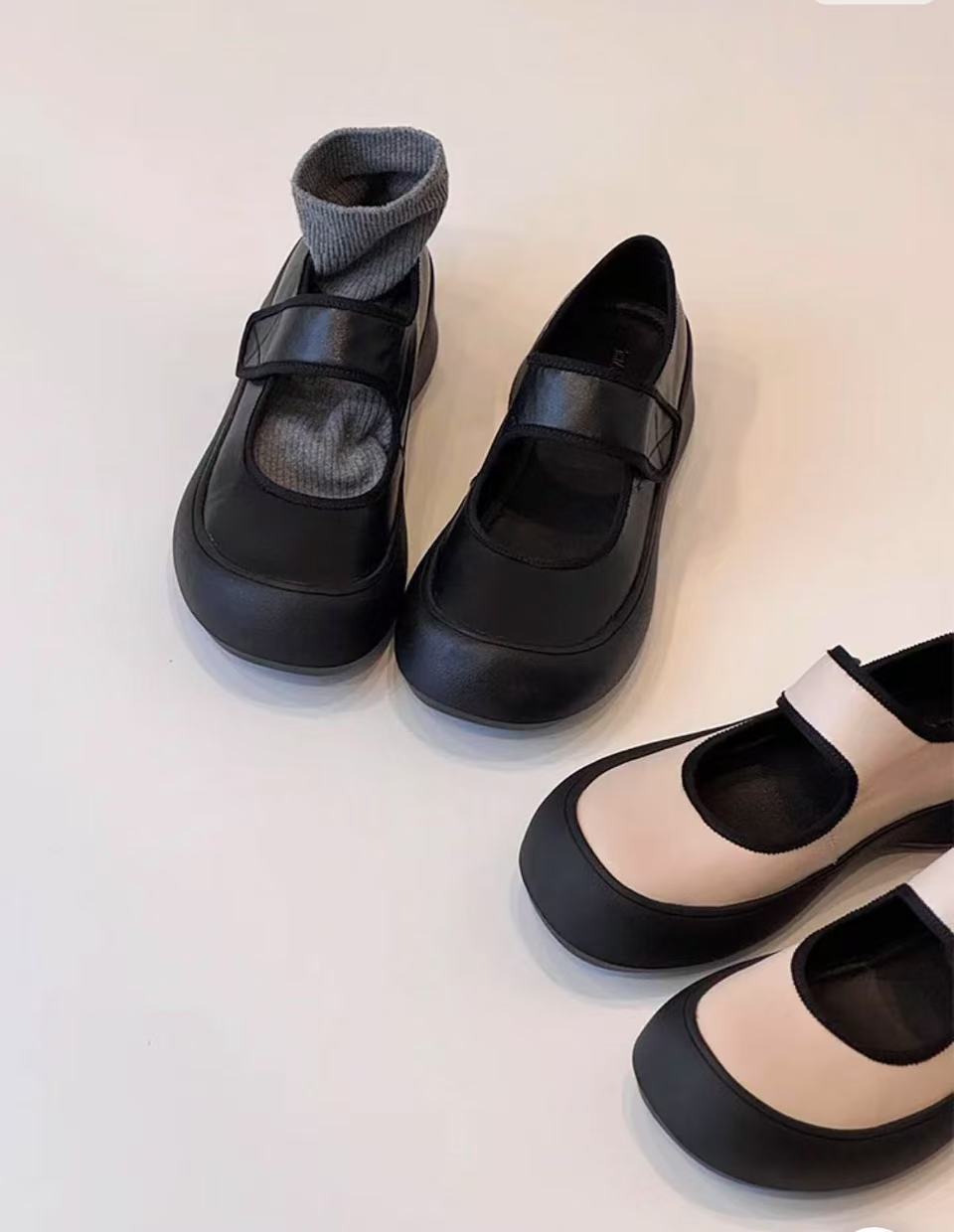 즉시 구매 가능~ 두꺼운 밑창 스포츠 벨크로 메리제인 슈즈 여성용 만능 라운드 토 가죽 슈즈 레트로 발레 슈즈