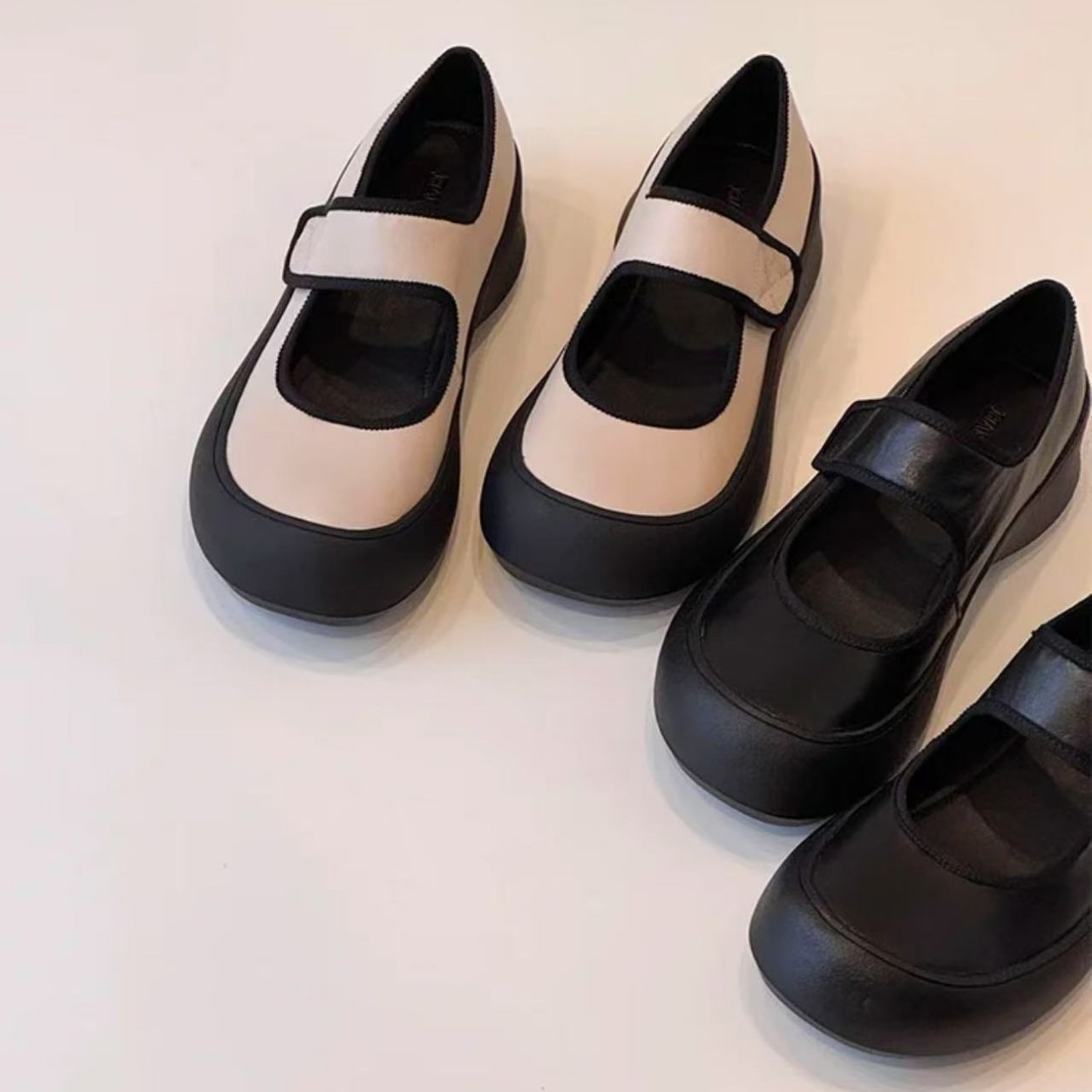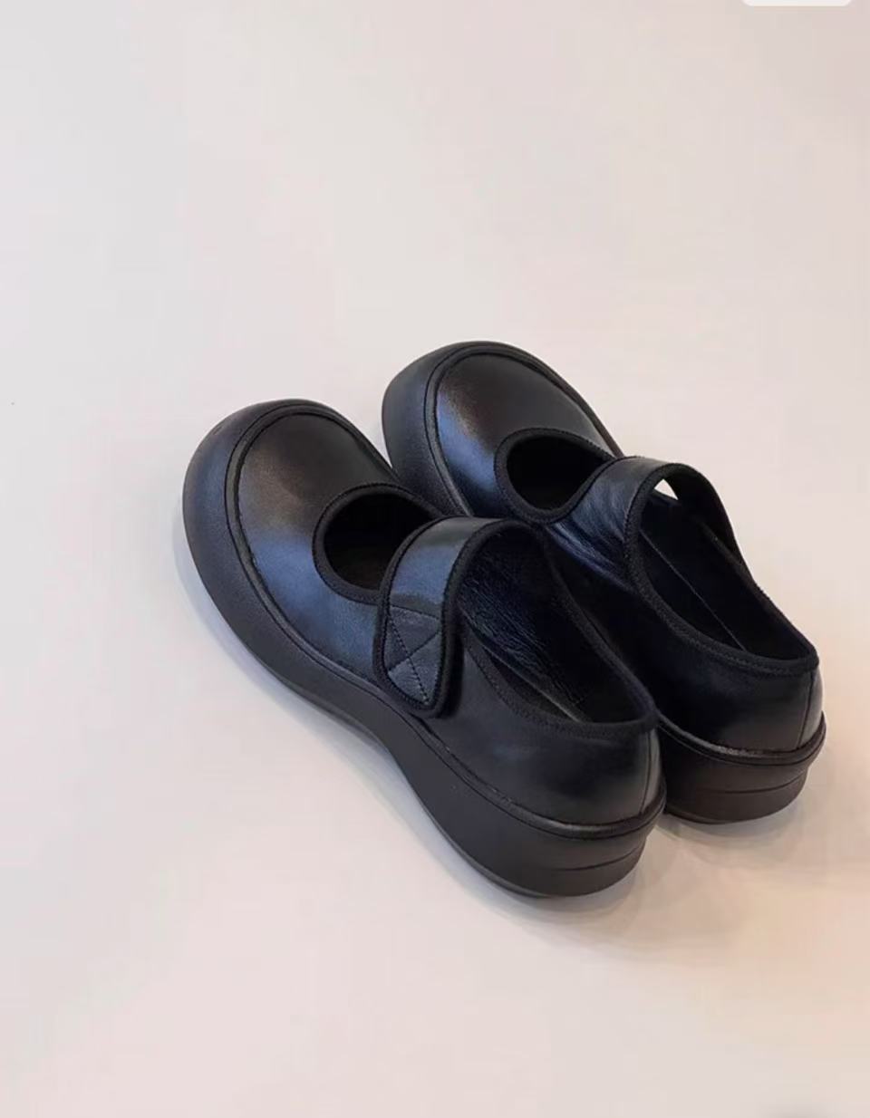 즉시 구매 가능~ 두꺼운 밑창 스포츠 벨크로 메리제인 슈즈 여성용 만능 라운드 토 가죽 슈즈 레트로 발레 슈즈스토어 가기