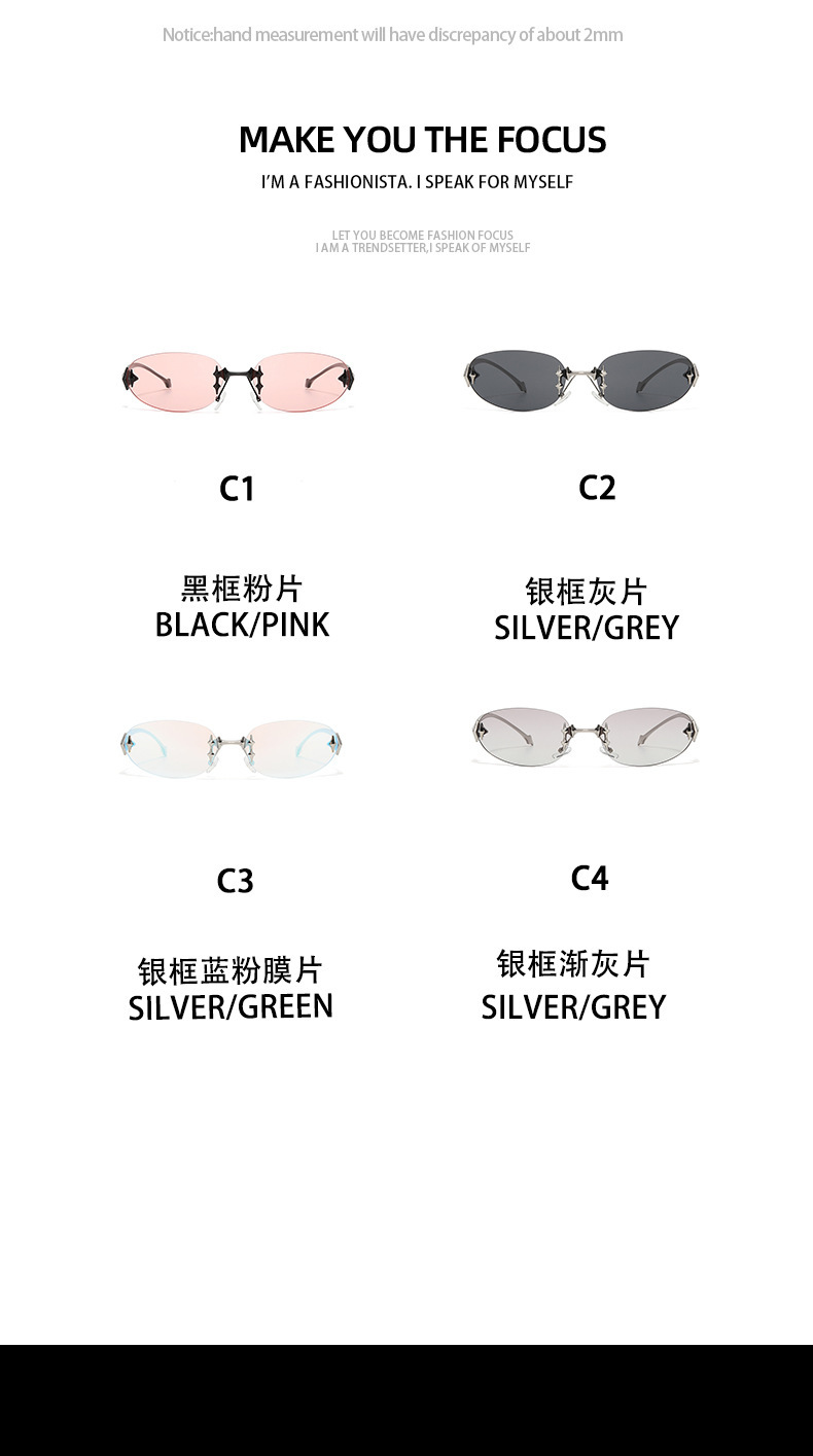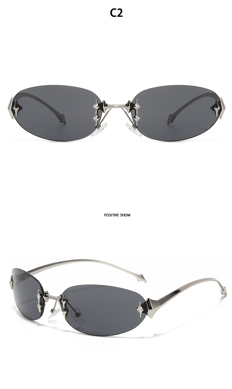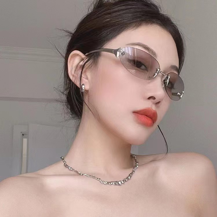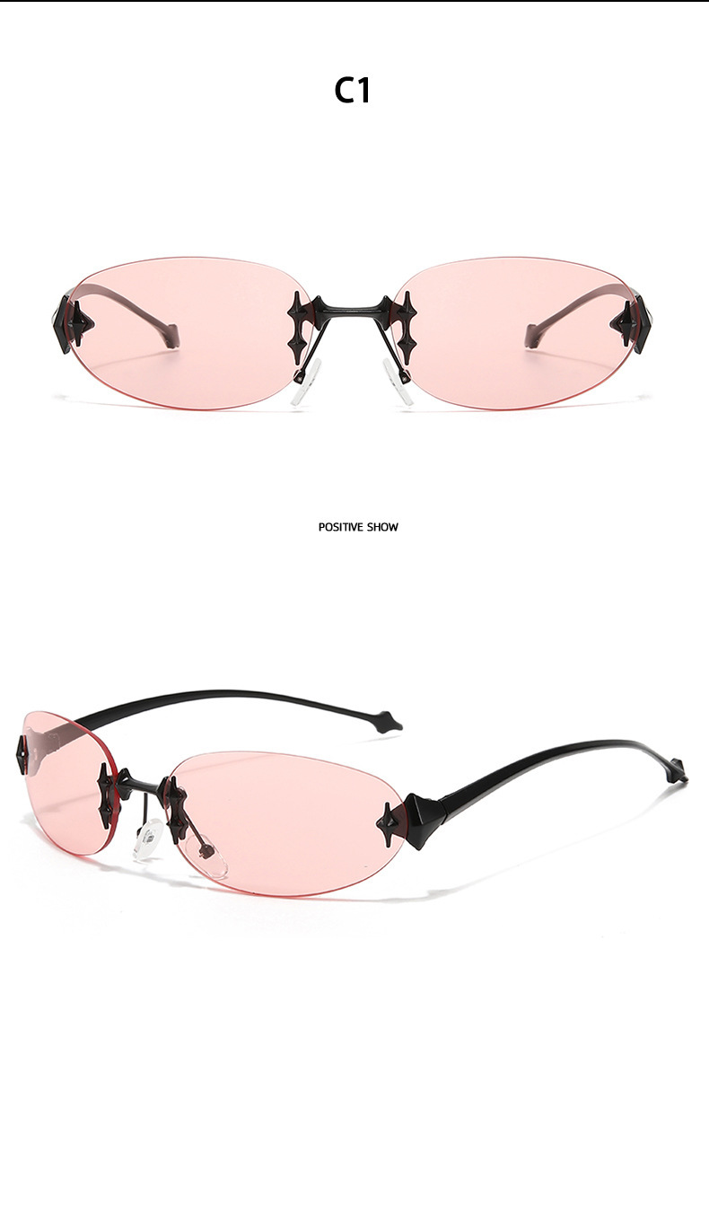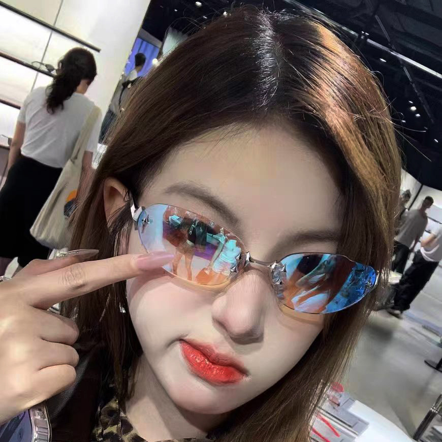 2025 국경 새 Y2K 밀레니엄 스파이스 스타일 스타 프레임리스 선글라스 높은 센스 레트로 미래형 선글라스
