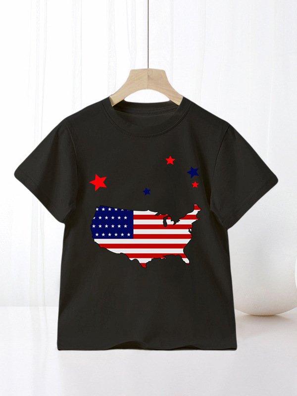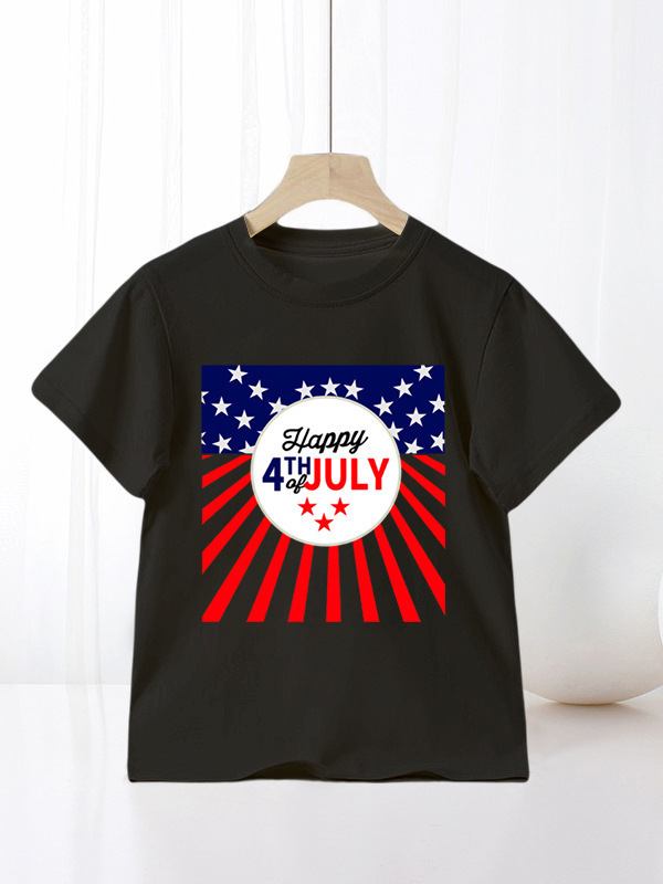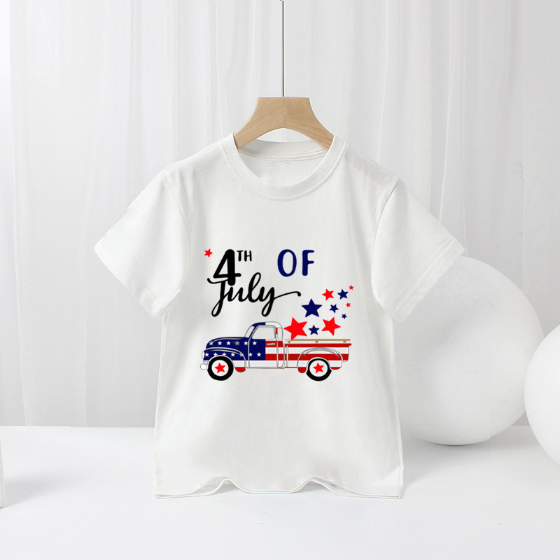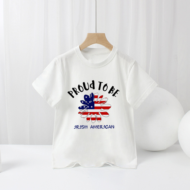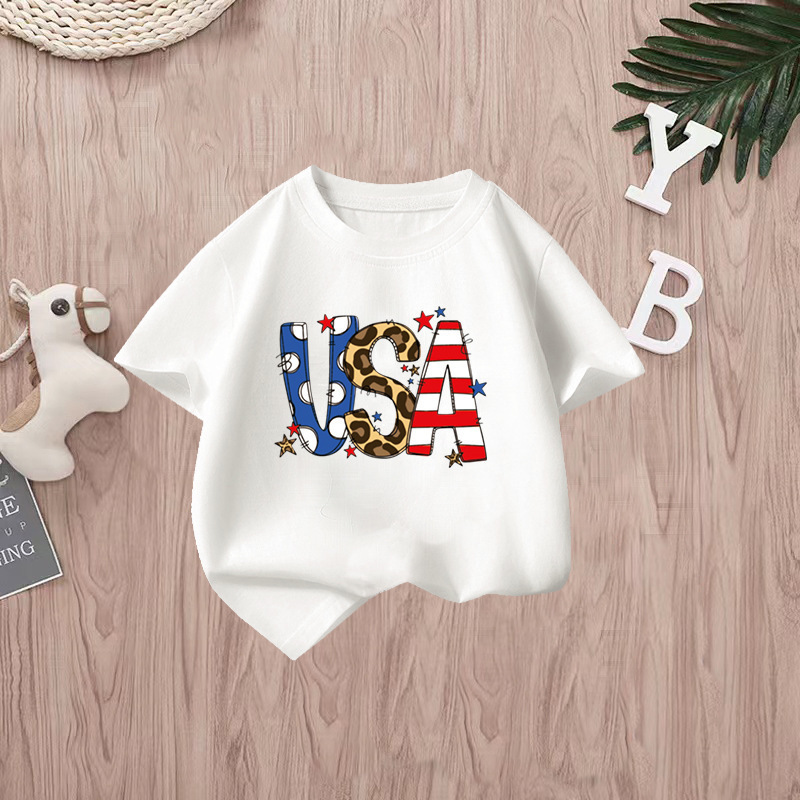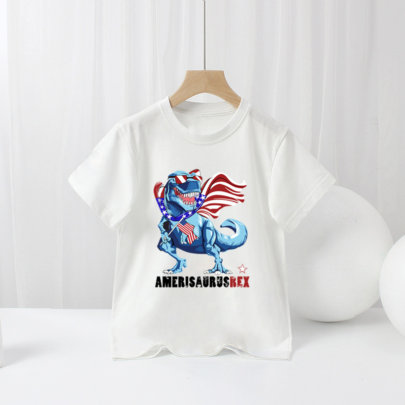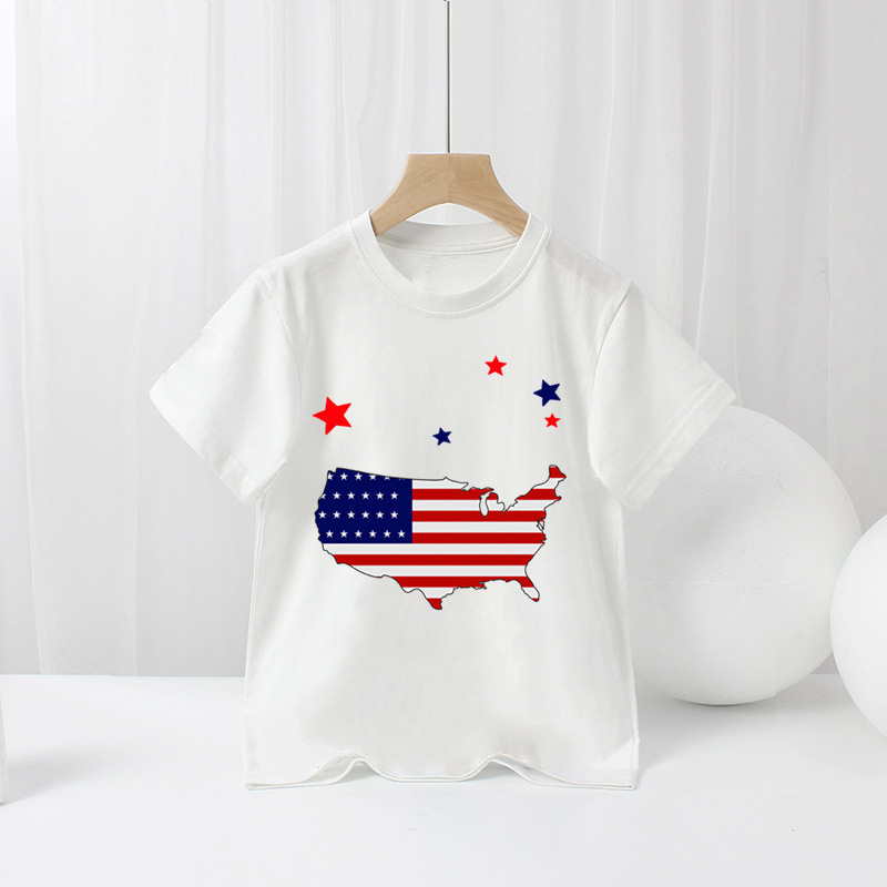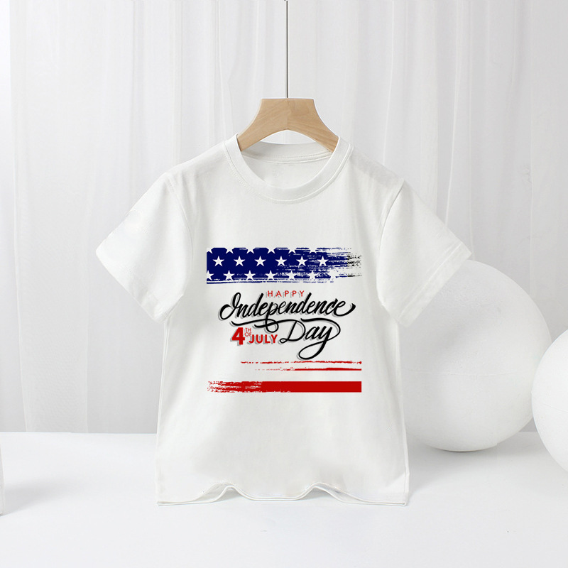 국경 간 아마존 어린이 반팔 티셔츠 미국 독립 기념일 소년 만화 새로운 여름 티셔츠 바닥 셔츠 대외 무역