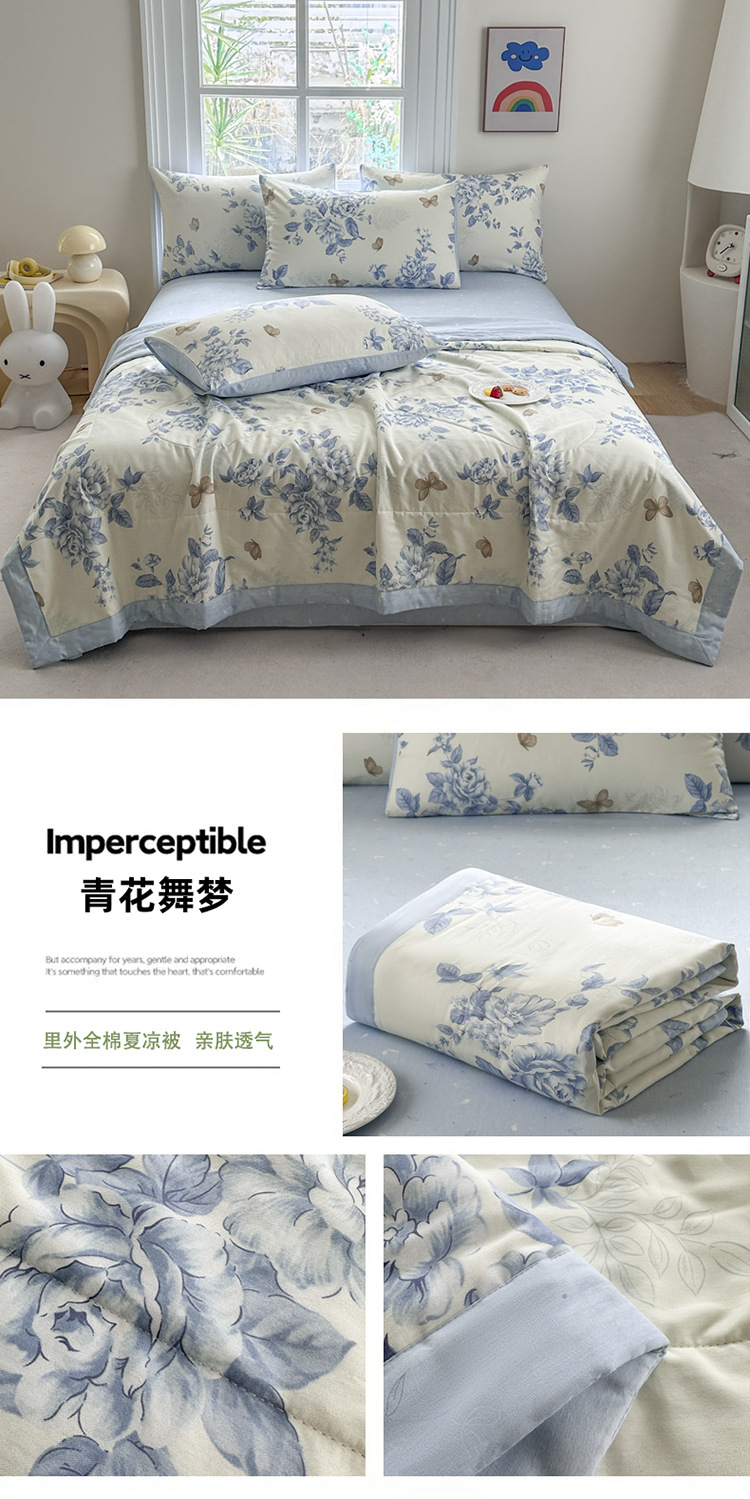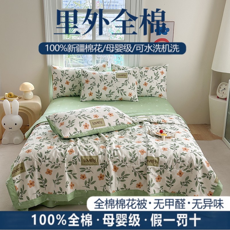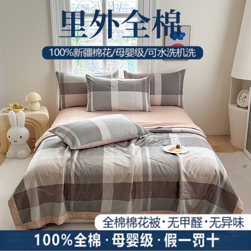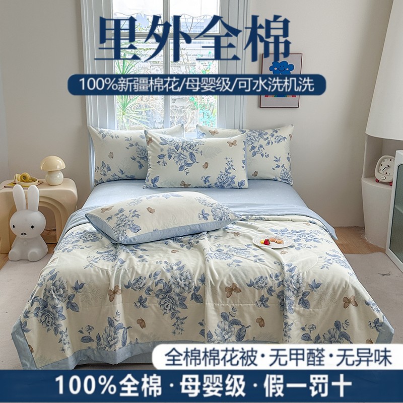 클래스 A 내부 및 외부 면 여름 이불 100 순면 에어컨 이불 면 여름 이불 4피스 세트 여름 얇은 이불 기계 세탁 가능스토어 가기