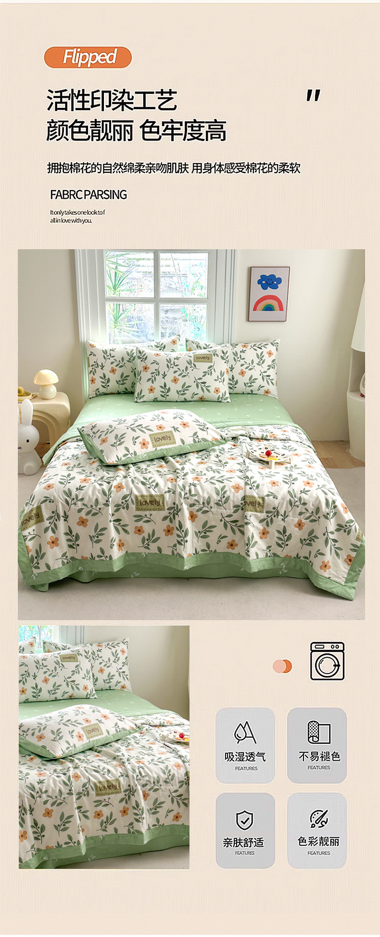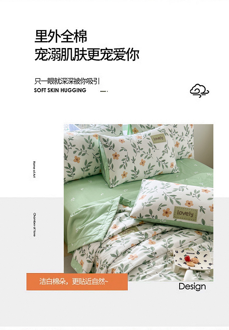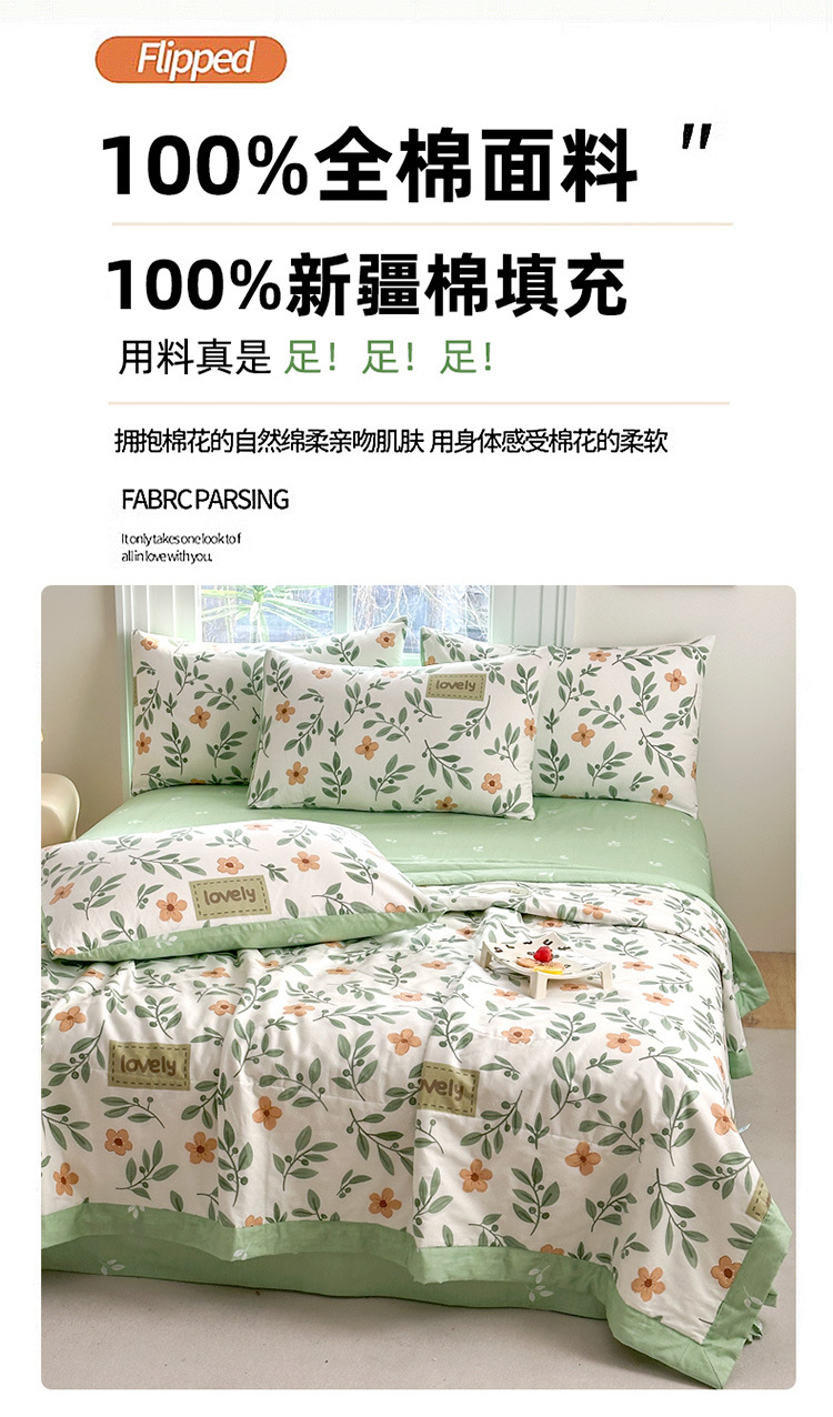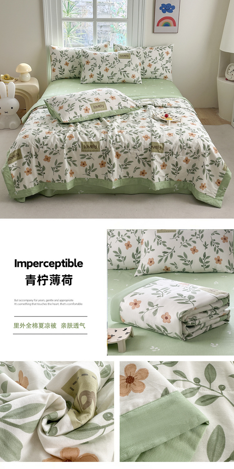 클래스 A 내부 및 외부 면 여름 이불 100 순면 에어컨 이불 면 여름 이불 4피스 세트 여름 얇은 이불 기계 세탁 가능스토어 가기