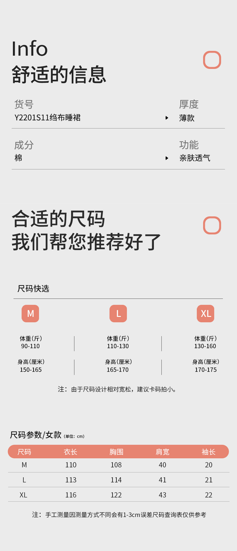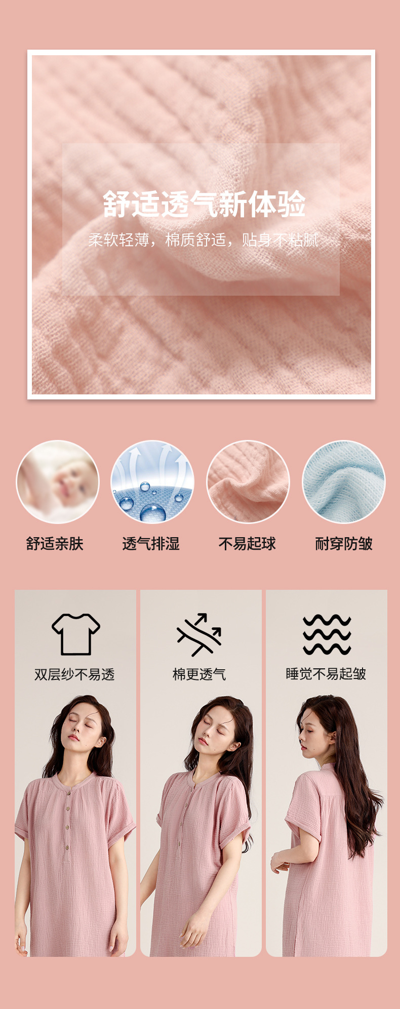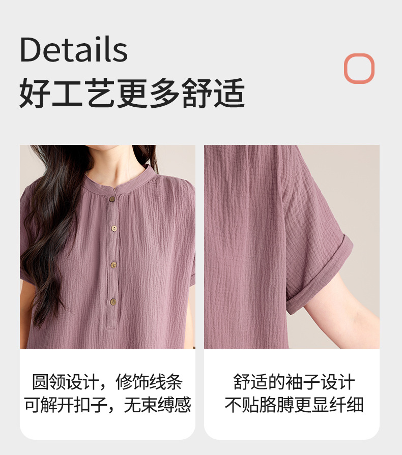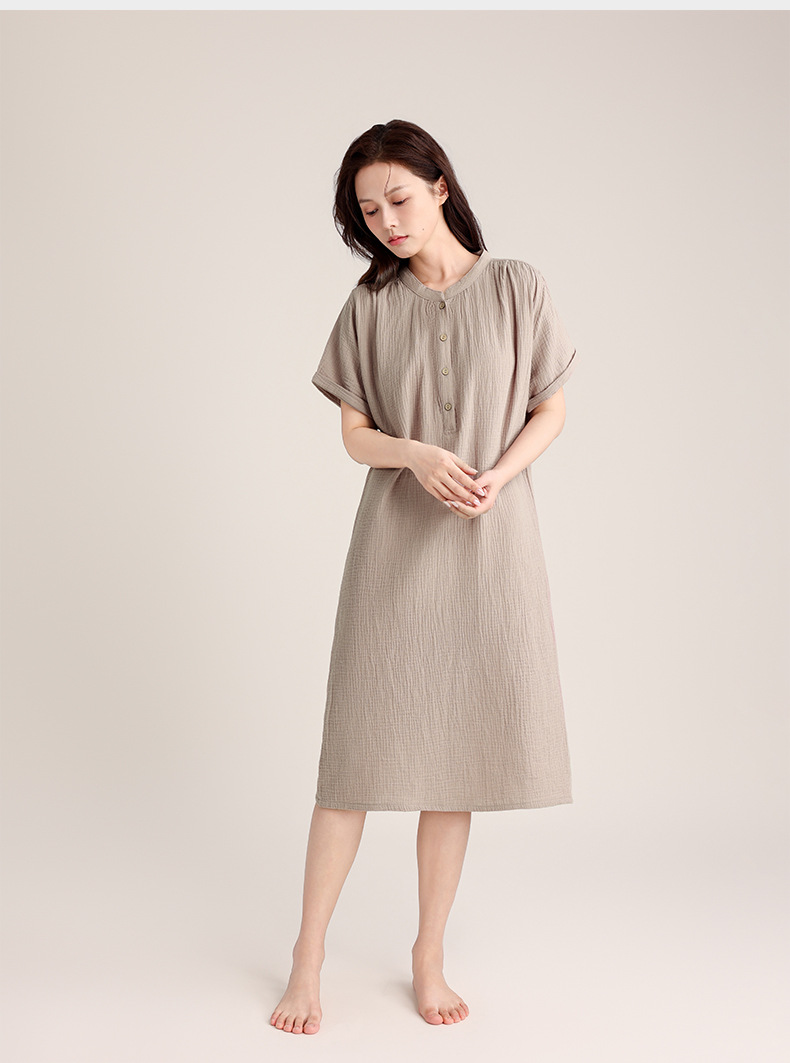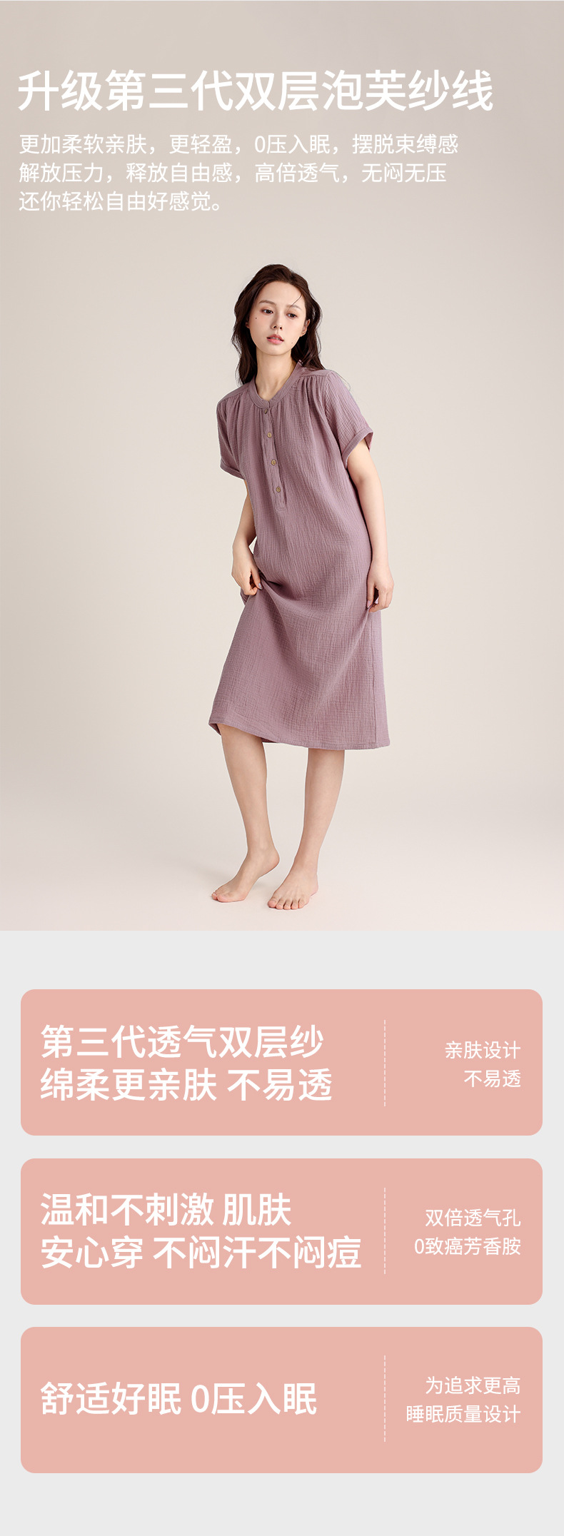 봄과 여름 반팔 나이트가운 더블 레이어 크레페 풀오버 여성의 간단한 긴 원피스 면 얇은 겉옷스토어 가기