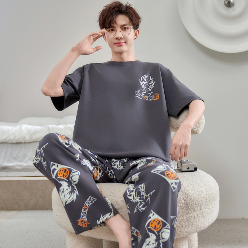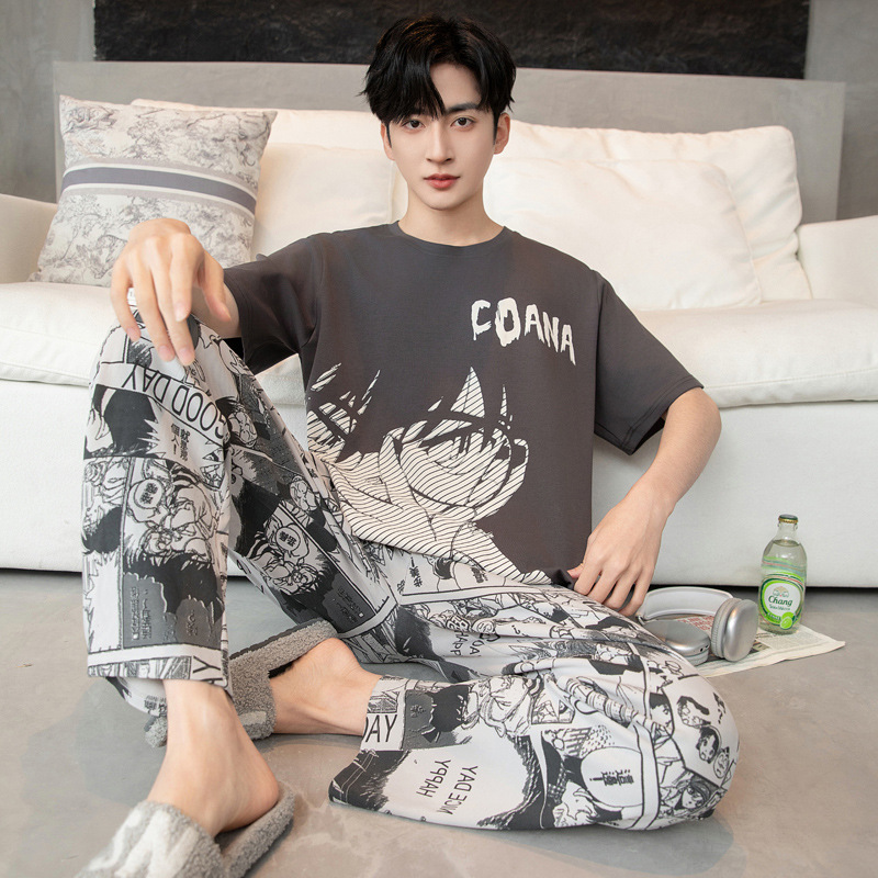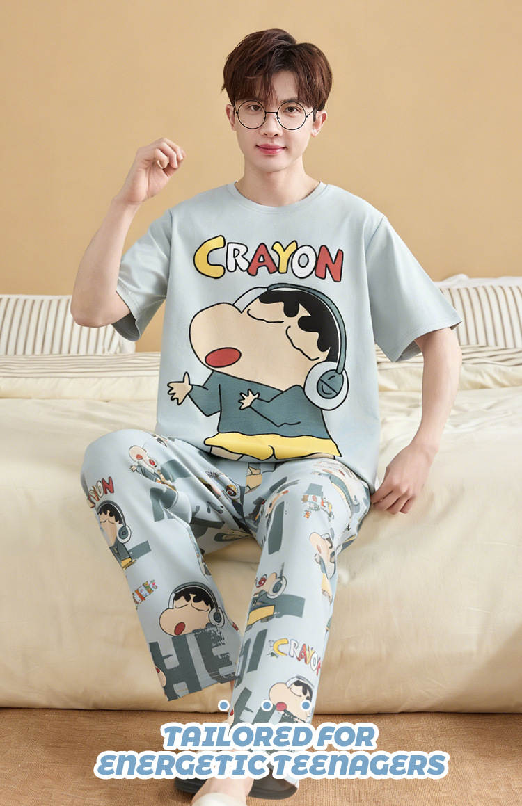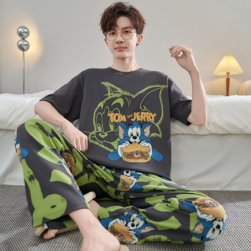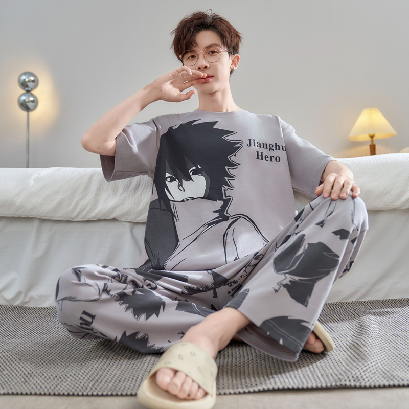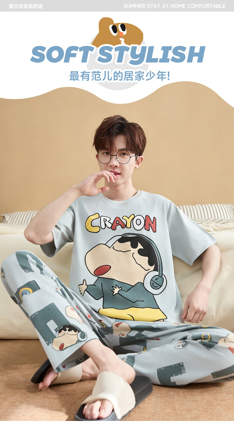 청소년 잠옷 남성용 반팔 바지 봄, 여름 순수 코튼 만화 큰 소년 20 세 느슨한 가정 의류 세트스토어 가기