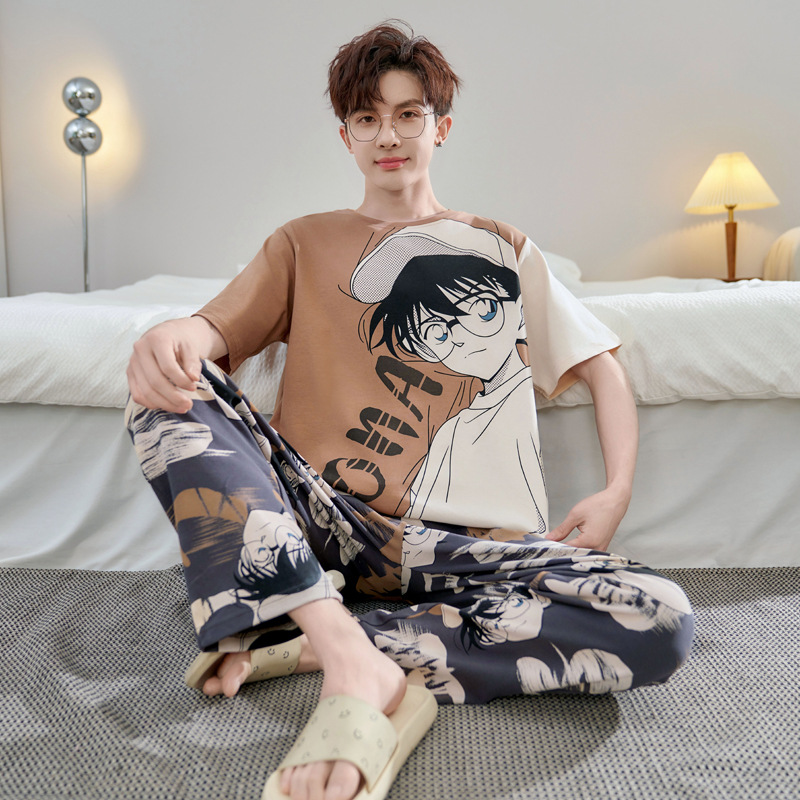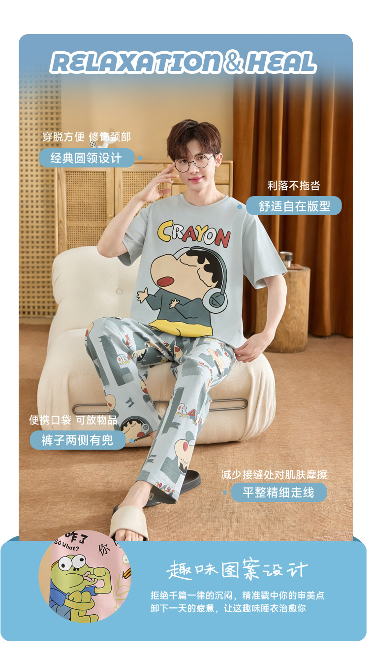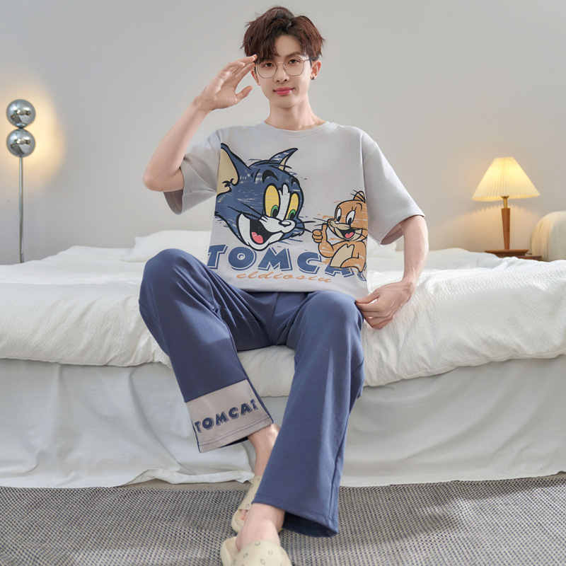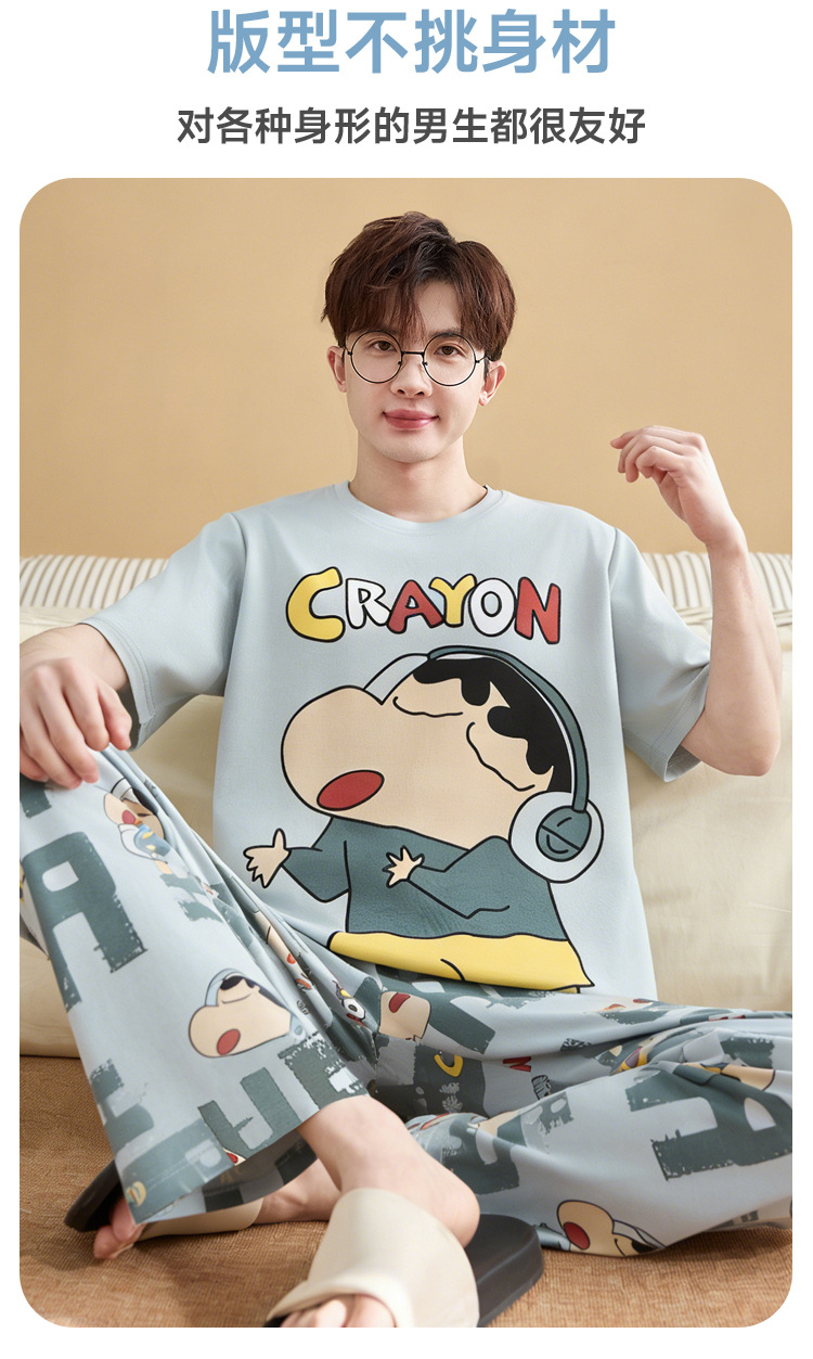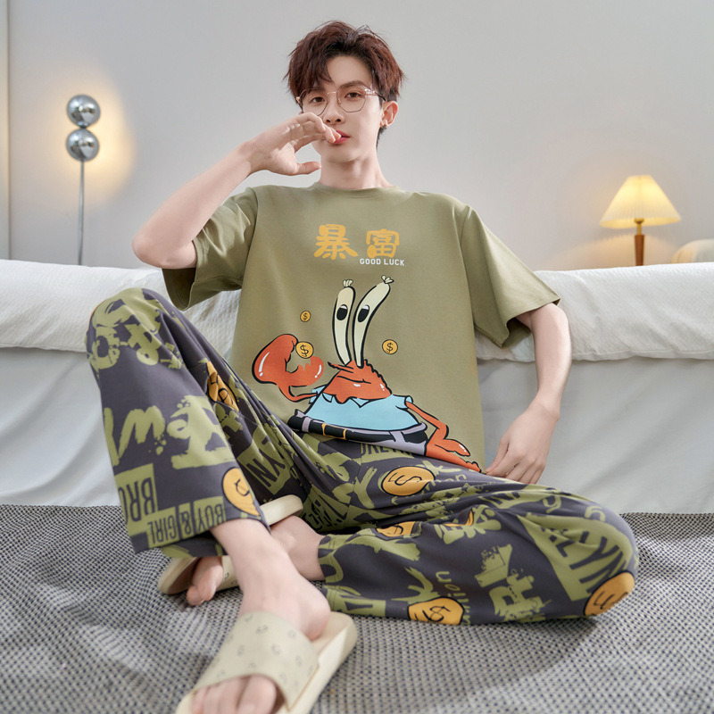 청소년 잠옷 남성용 반팔 바지 봄, 여름 순수 코튼 만화 큰 소년 20 세 느슨한 가정 의류 세트스토어 가기