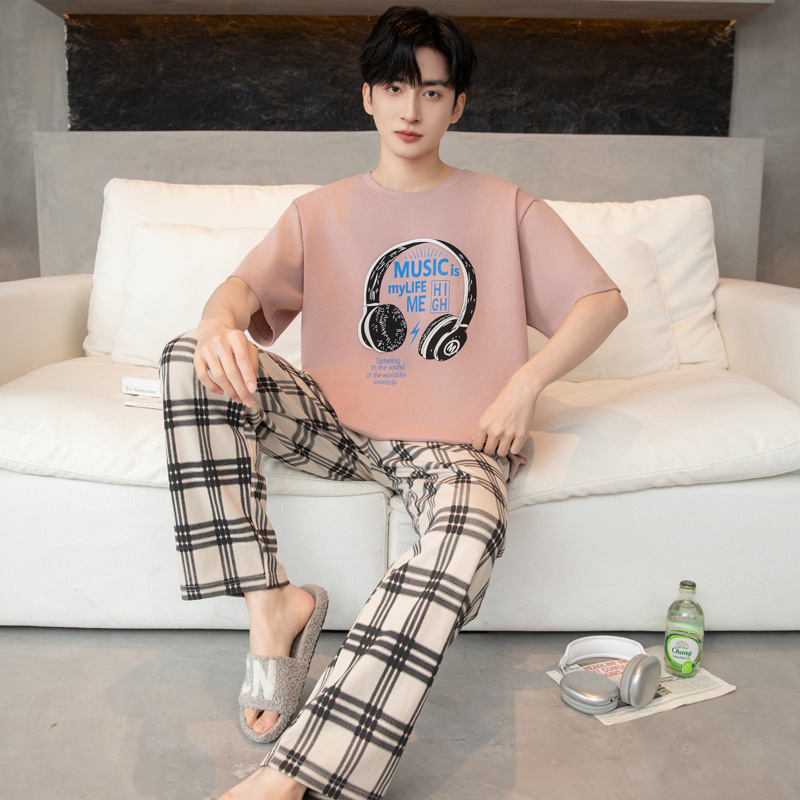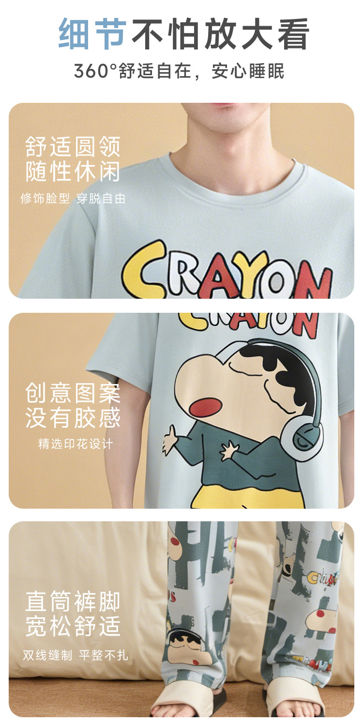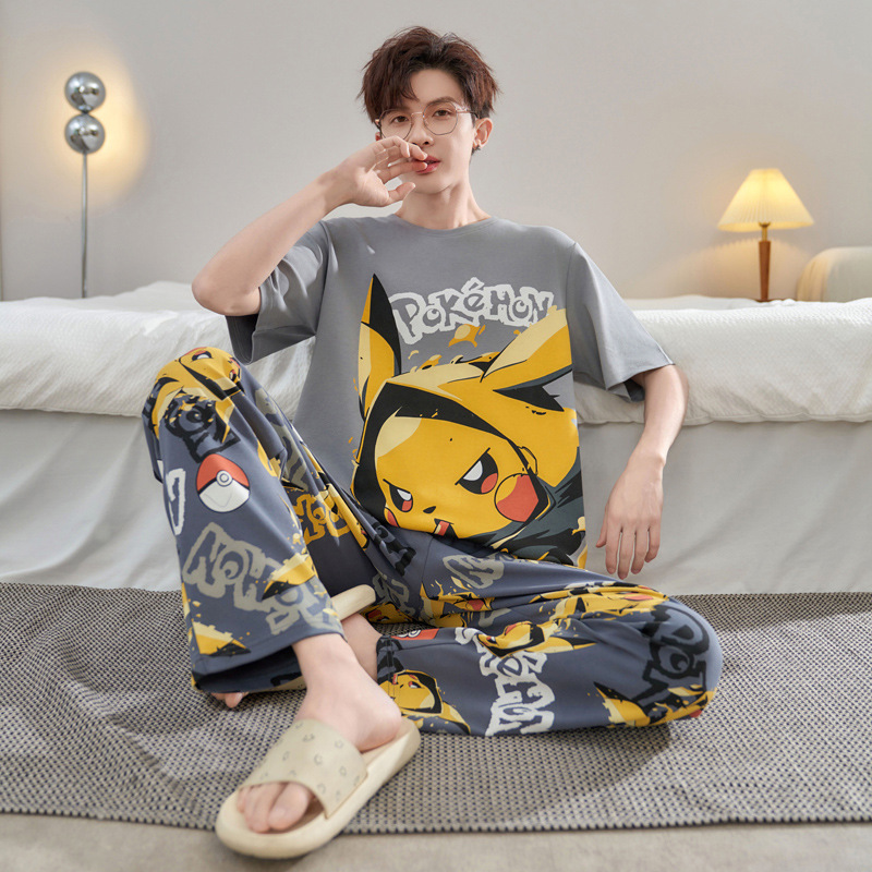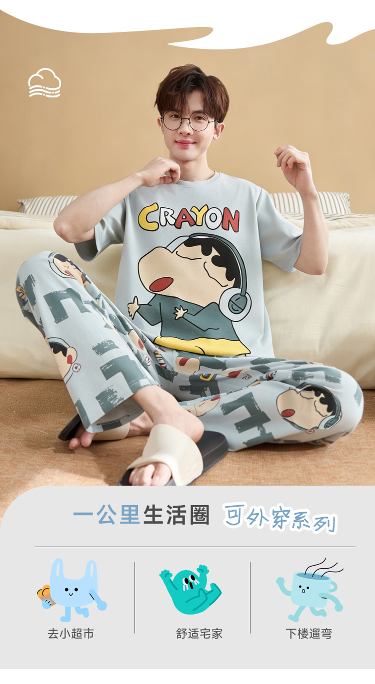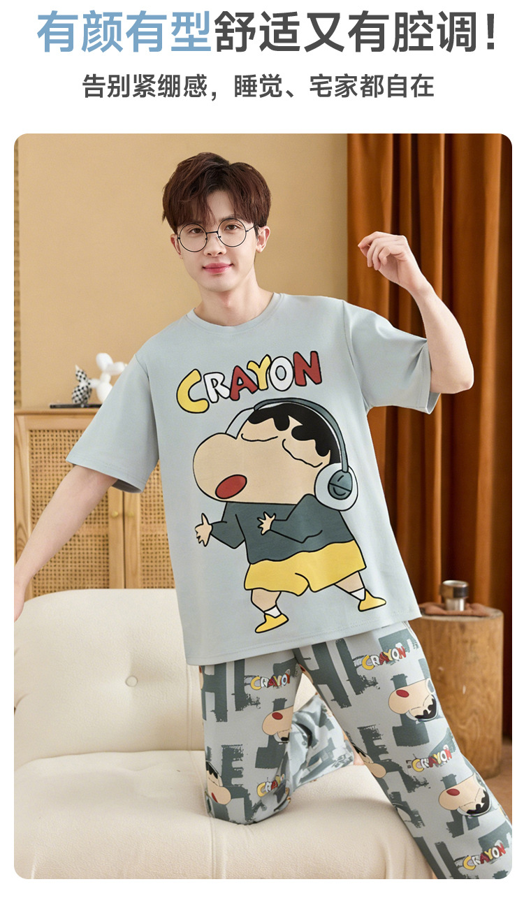 청소년 잠옷 남성용 반팔 바지 봄, 여름 순수 코튼 만화 큰 소년 20 세 느슨한 가정 의류 세트스토어 가기