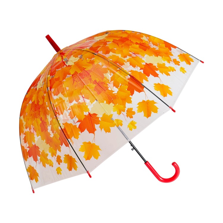 공장 재고 어린이 및 성인용 투명 아폴로 우산 단풍잎 컬러 우산 만화 풀프린트 투명 우산