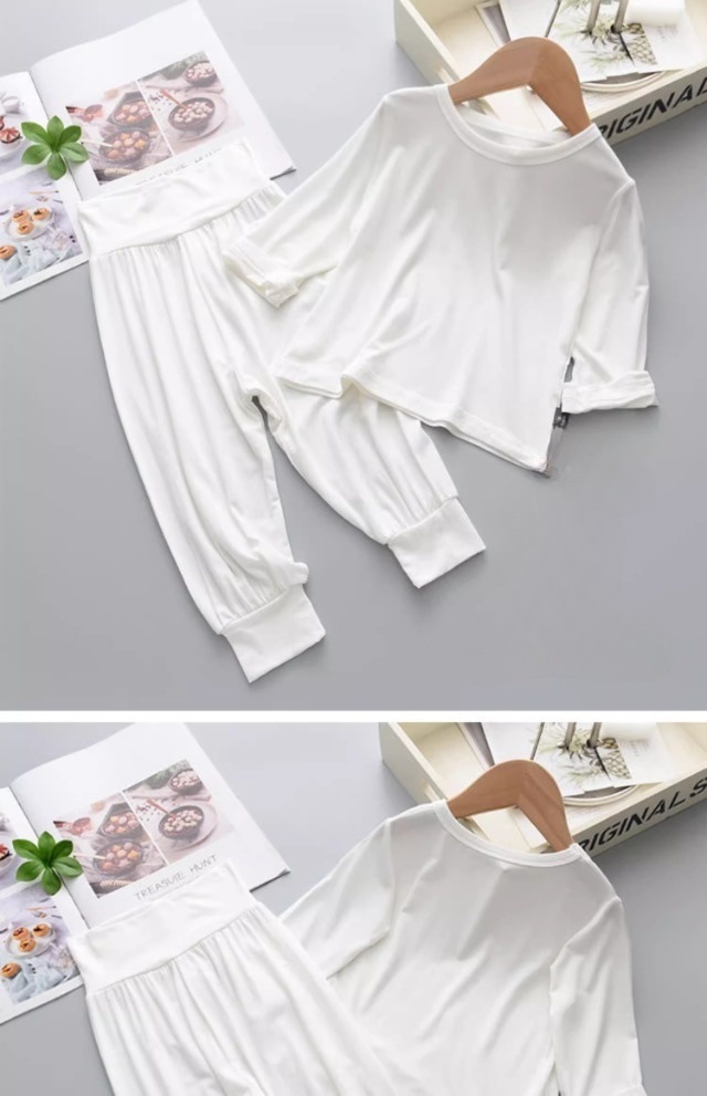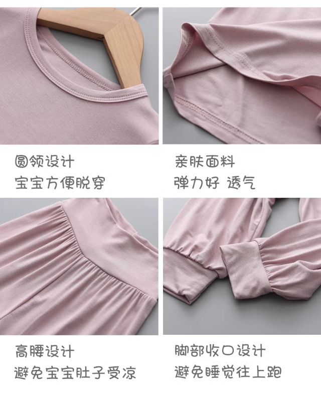 아동용 모달 잠옷, 하이웨이스트 배 보호 홈웨어, 봄, 가을 남아 및 여아용 긴팔 바지 투피스 속옷 세트스토어 가기