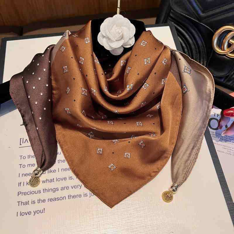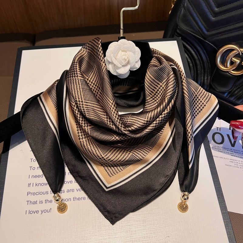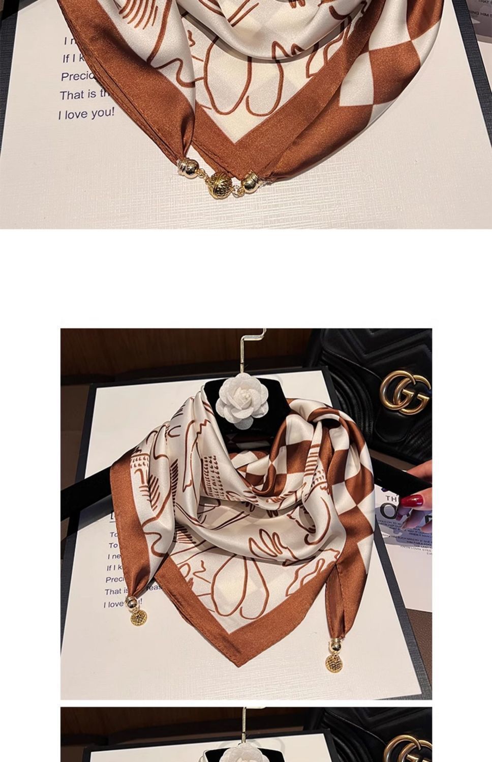• 시뮬레이션 실크 마그네틱 버클 스퀘어 스카프-카키 다이아몬드