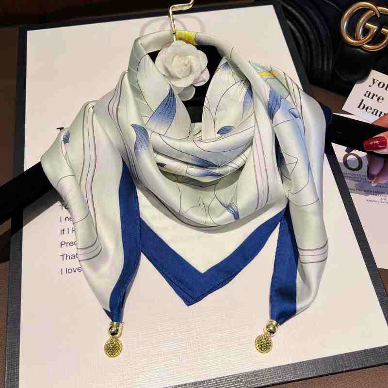 • 시뮬레이션 실크 자석 버클 스퀘어 스카프 - 재스퍼 로터스