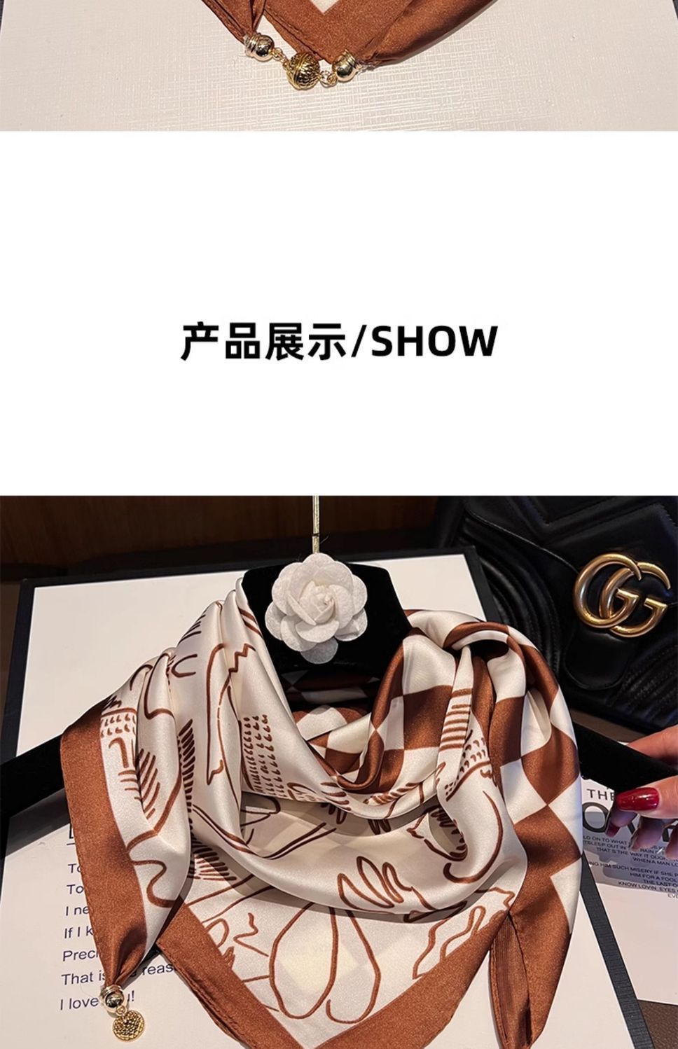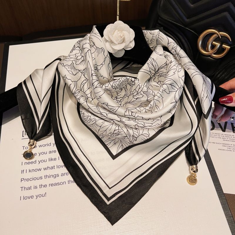 • 시뮬레이션 실크 마그네틱 버클 스퀘어 스카프 라인 꽃