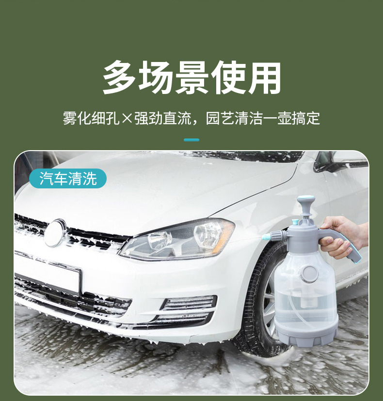 注:泡沫壶壶体有刻度线,加水不能超1.5L,洗车液和水比列1:10,气泡效果更佳。