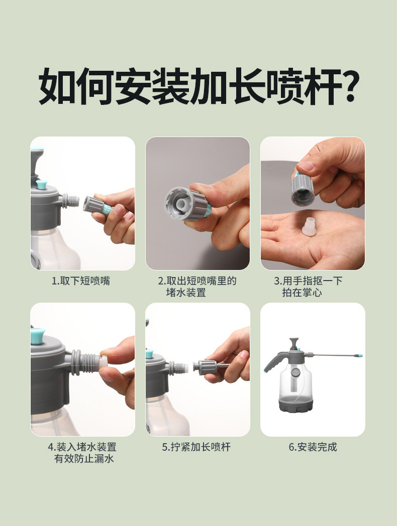 5、为测试喷壶品质,壶内可能出现水滴,属于正常现象。