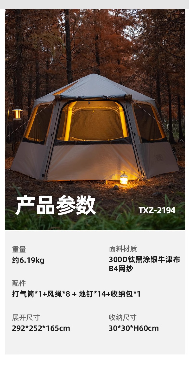 탐험가의 빠른 설치 육각형 풍선 텐트 야외 캠핑 밤새 캠핑 휴대용 접이식 방수 및 자외선 차단 장비