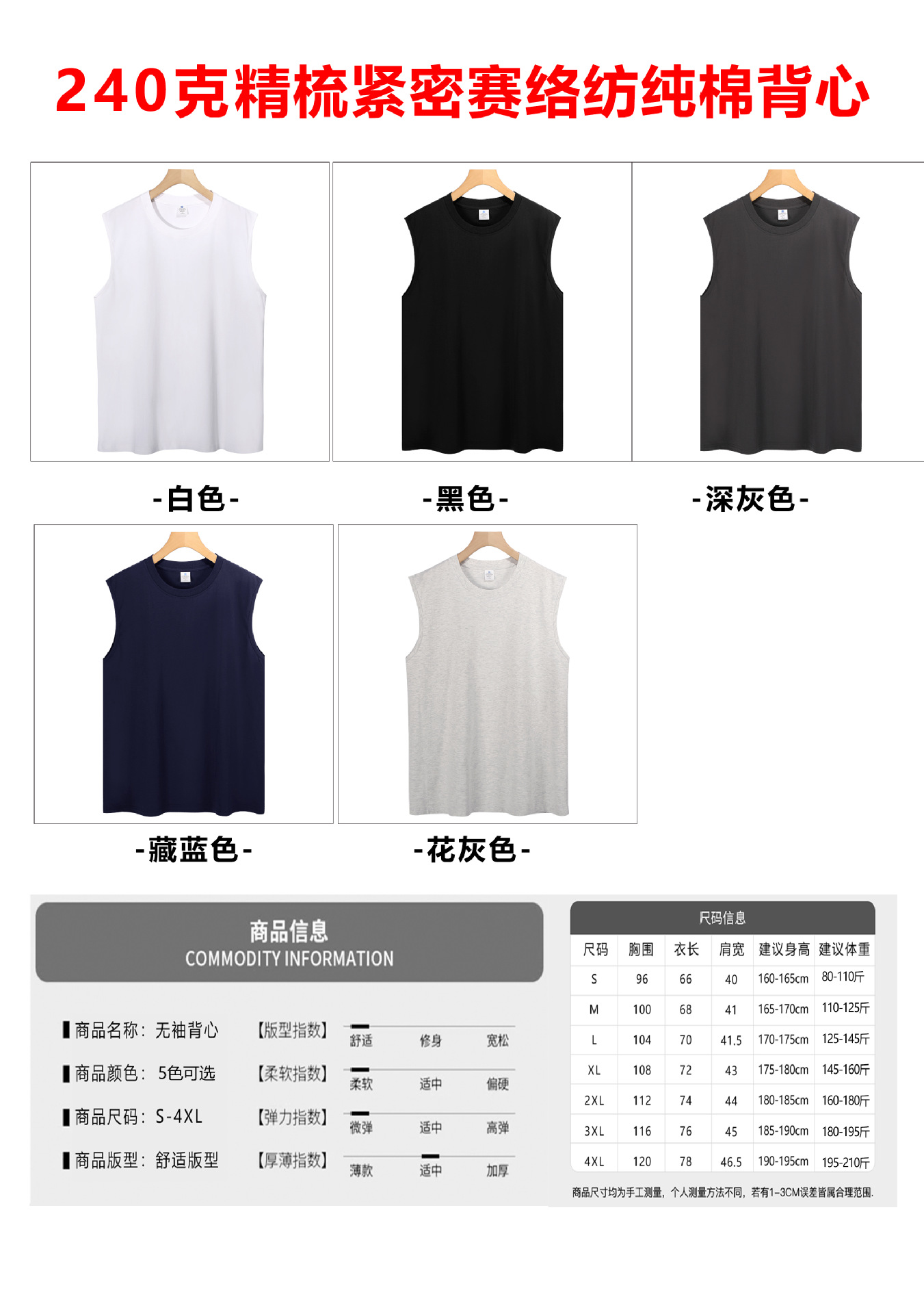 240g 남성용 아메리칸 스타일 헤비웨이트 민소매 티셔츠 조끼 남성용 피트니스 스포츠 순면 루즈핏 반팔스토어 가기