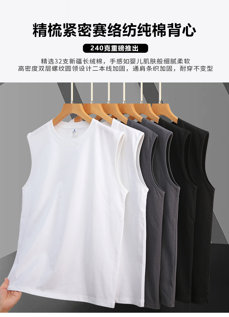 240g 남성용 아메리칸 스타일 헤비웨이트 민소매 티셔츠 조끼 남성용 피트니스 스포츠 순면 루즈핏 반팔