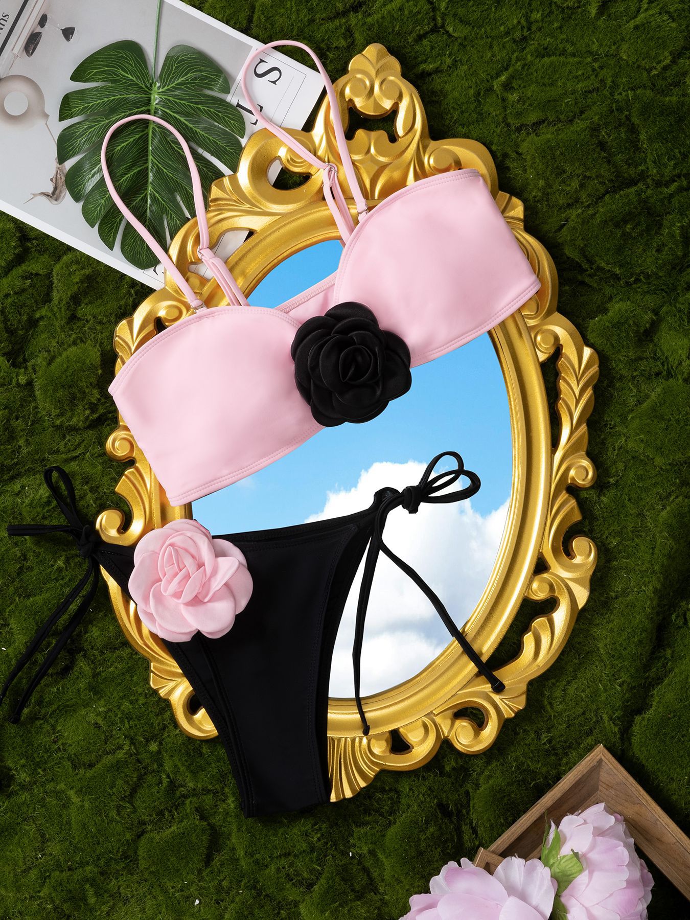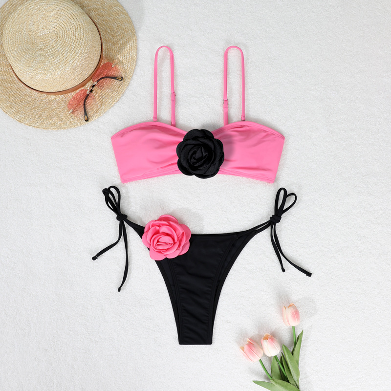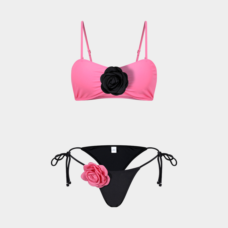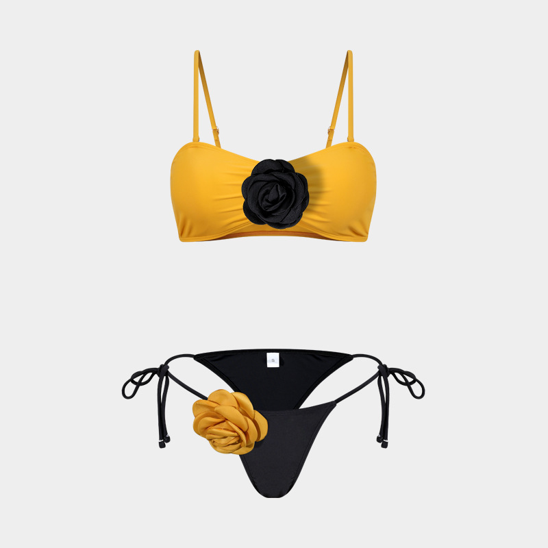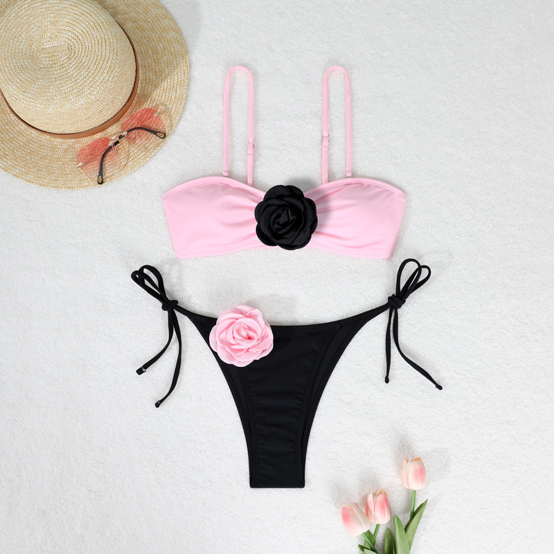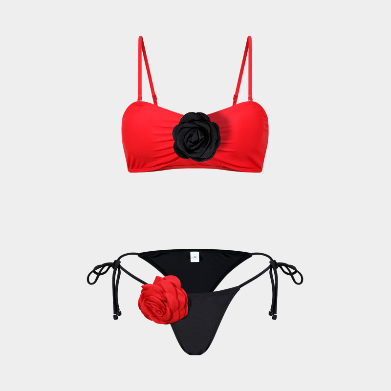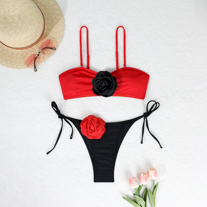 2025 유럽 및 미국 3D 입체 꽃 비키니 크로스보더 동백꽃 아마존 패션 분리형 비키니 수영복