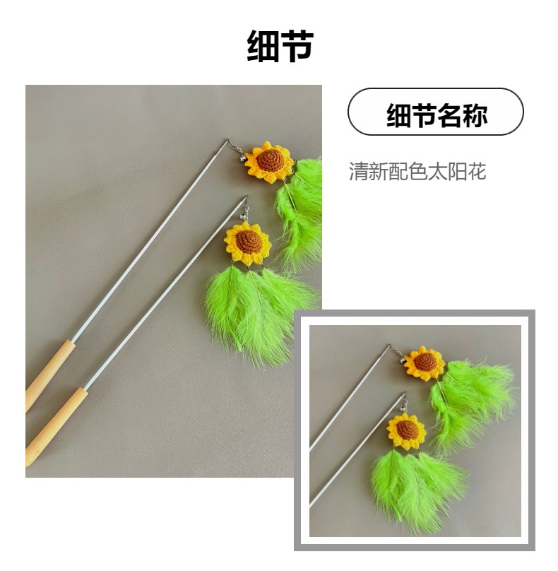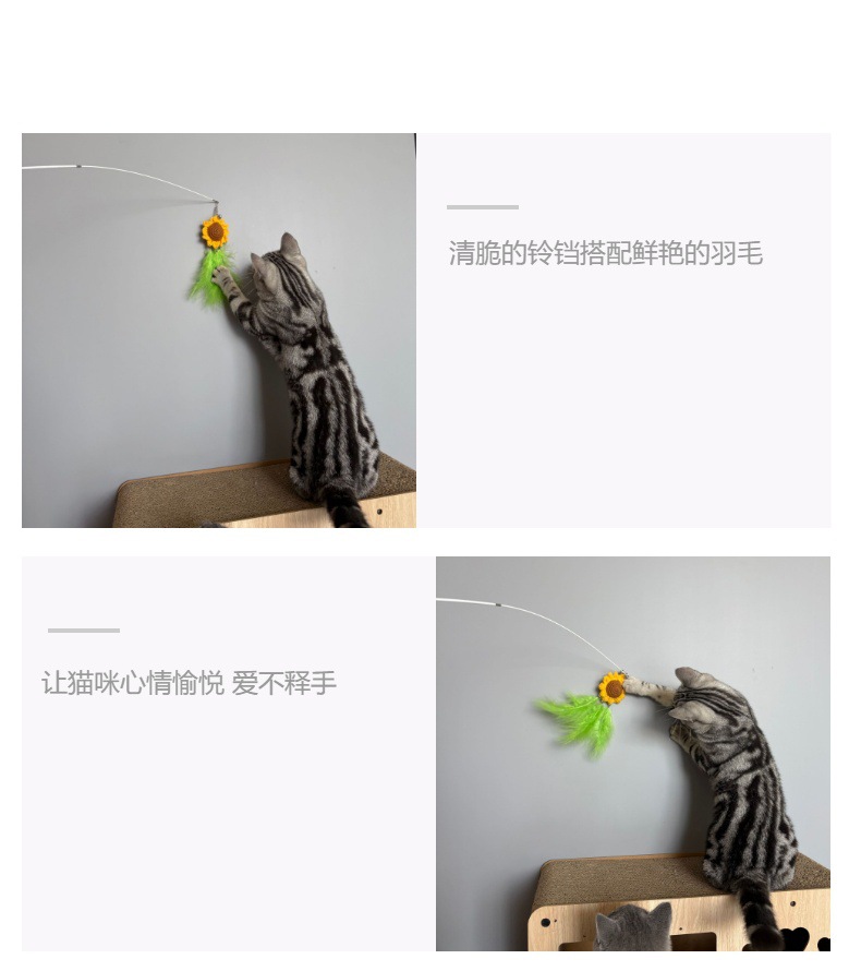 텔레스코픽 막대 해바라기 고양이 놀리는 막대, 심심함을 해소하는 신선하고 귀여운 고양이 대화형 장난감, 확장된 요정 고양이 놀리는 막대스토어 가기