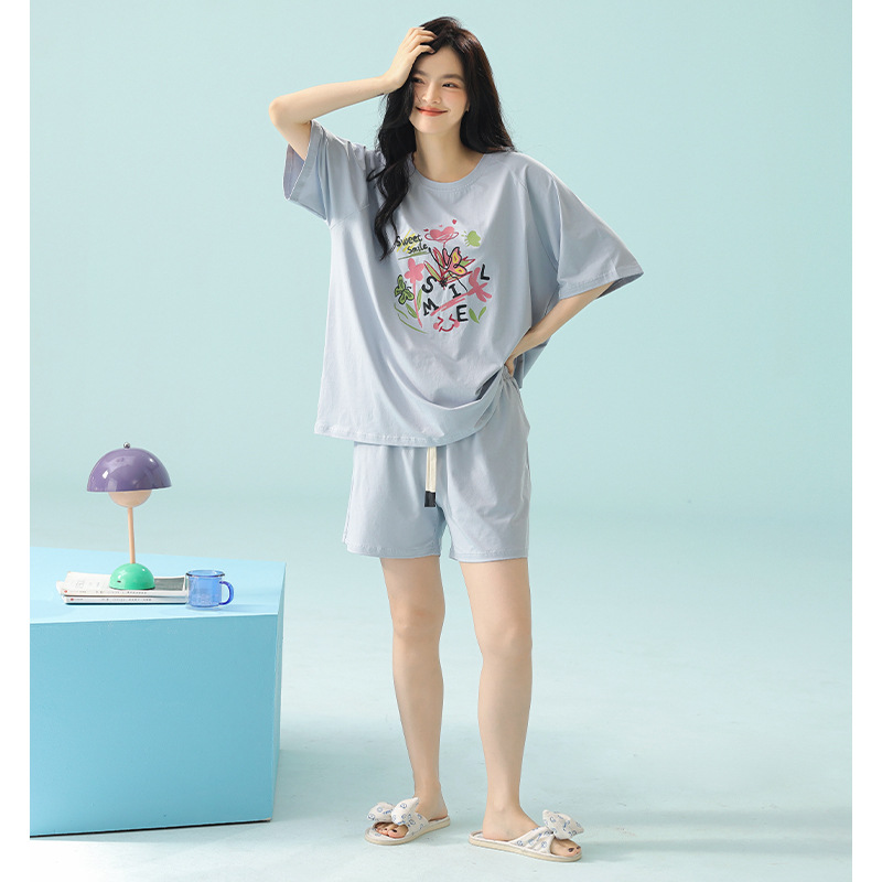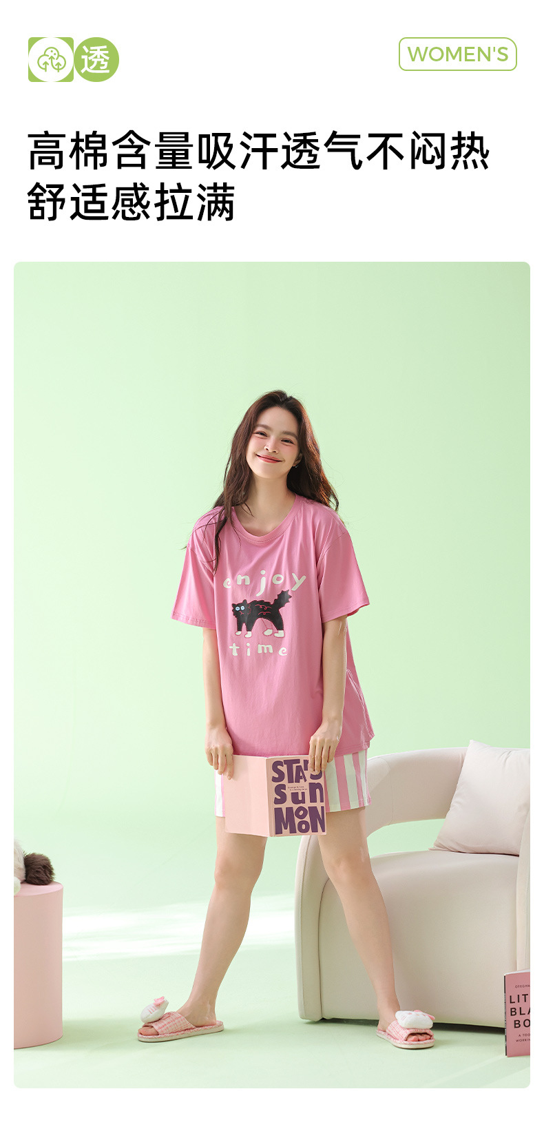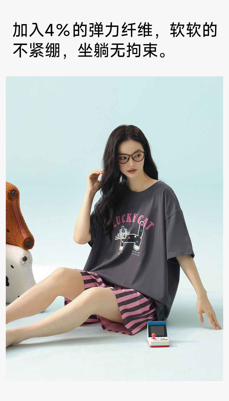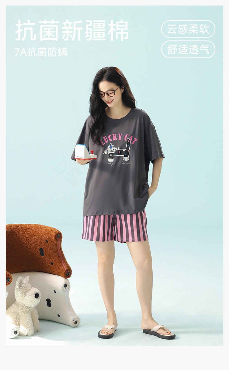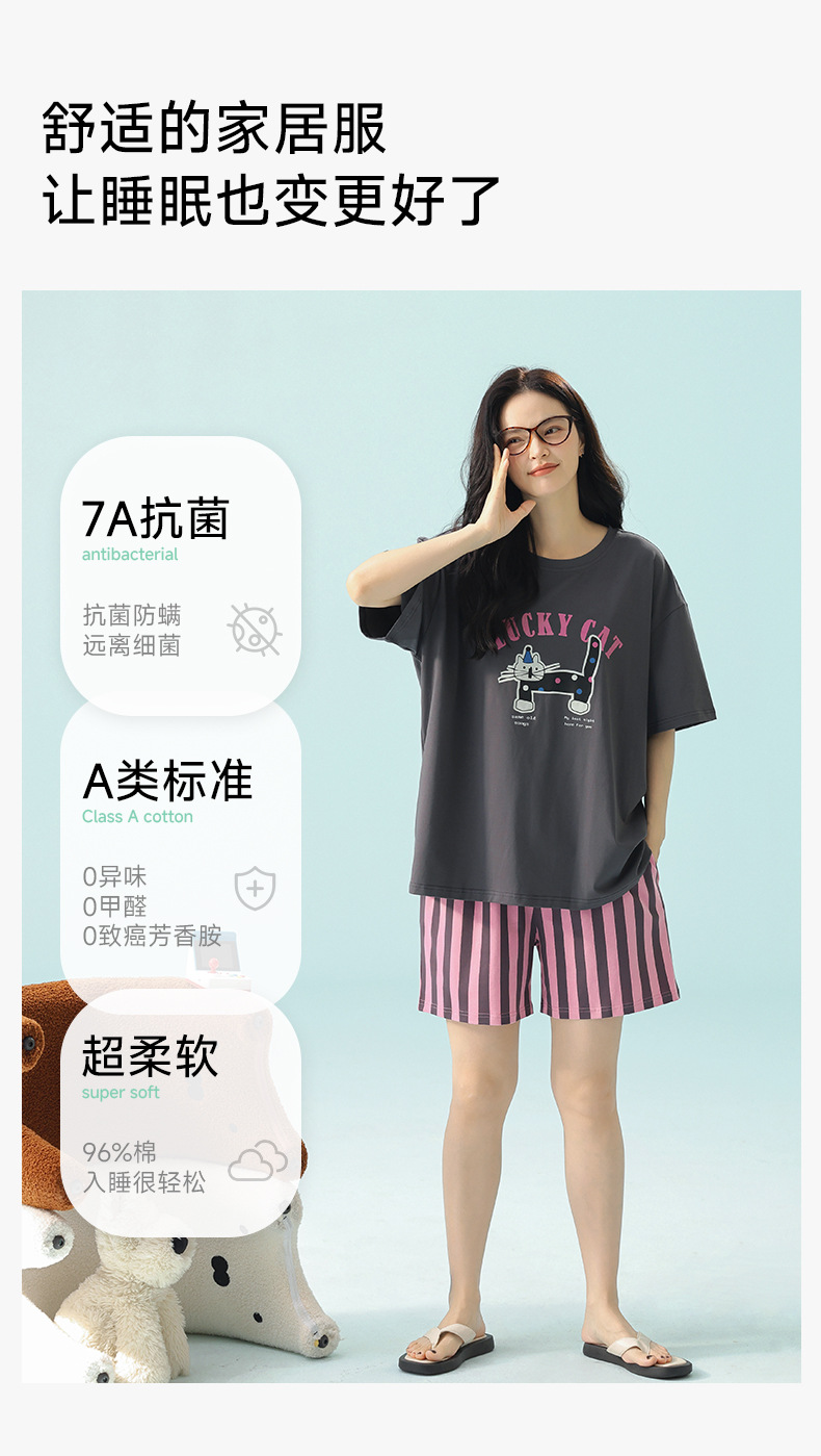 [항균성 신장면] A 급 여름 반소매 잠옷 여성면 고급 세트 홈웨어스토어 가기