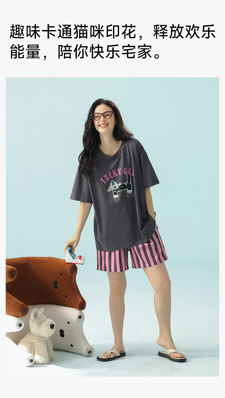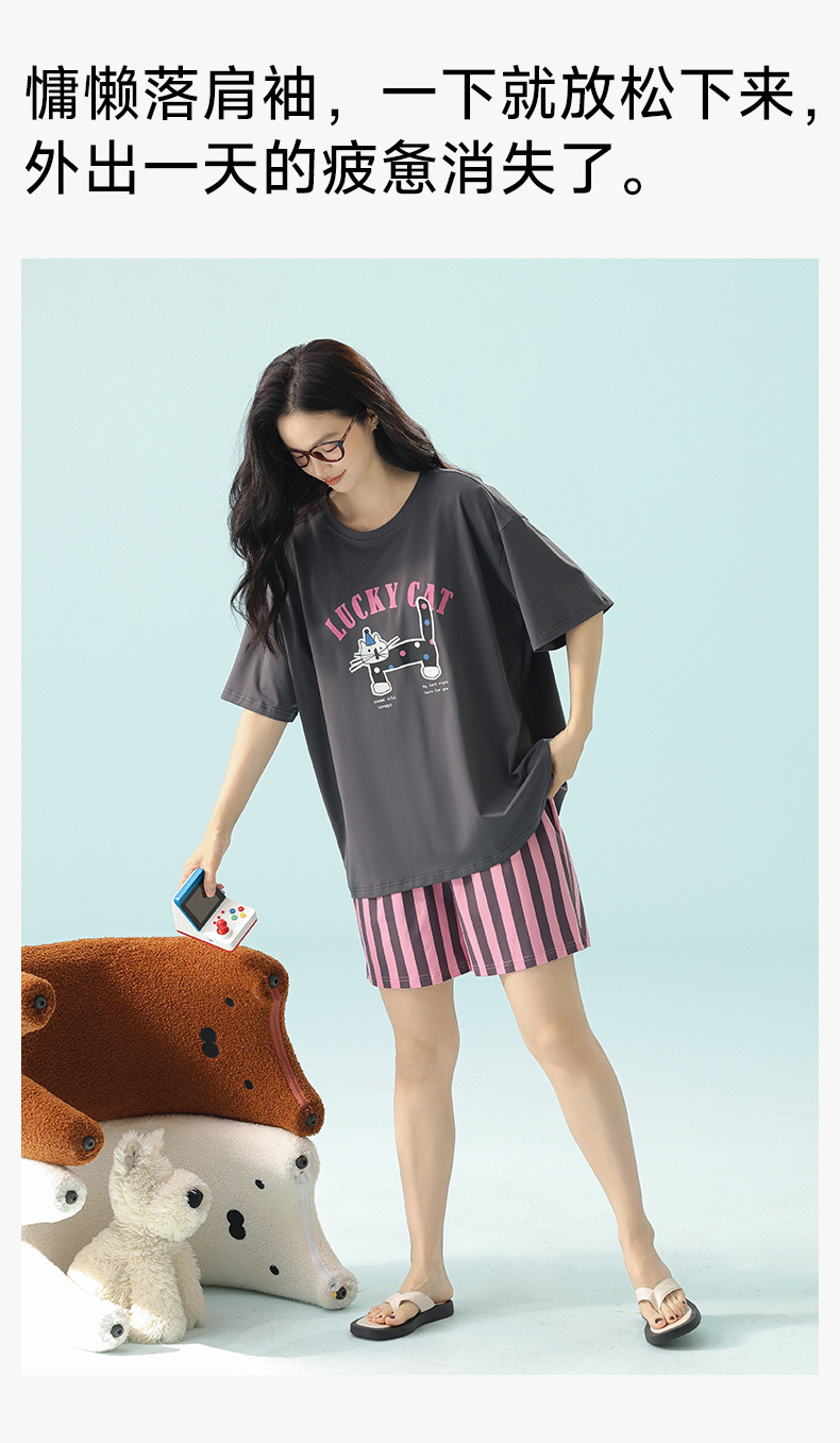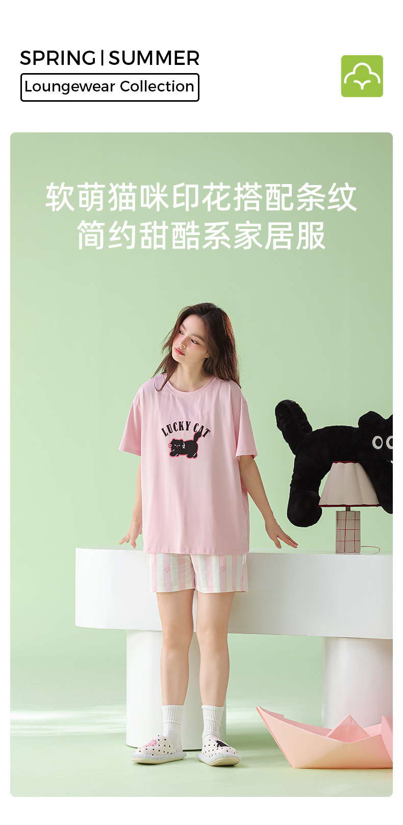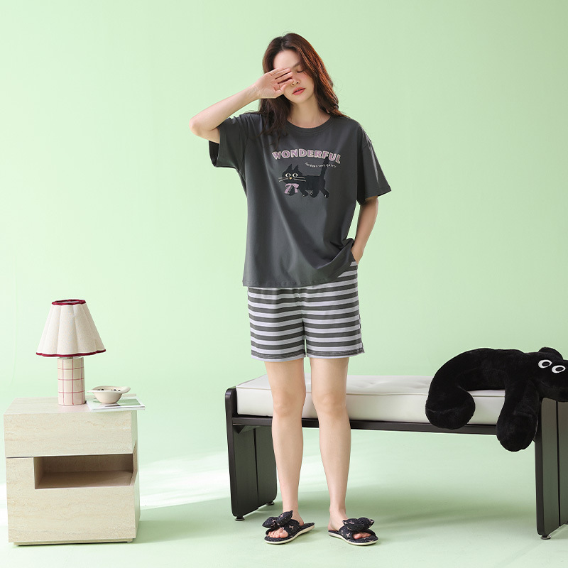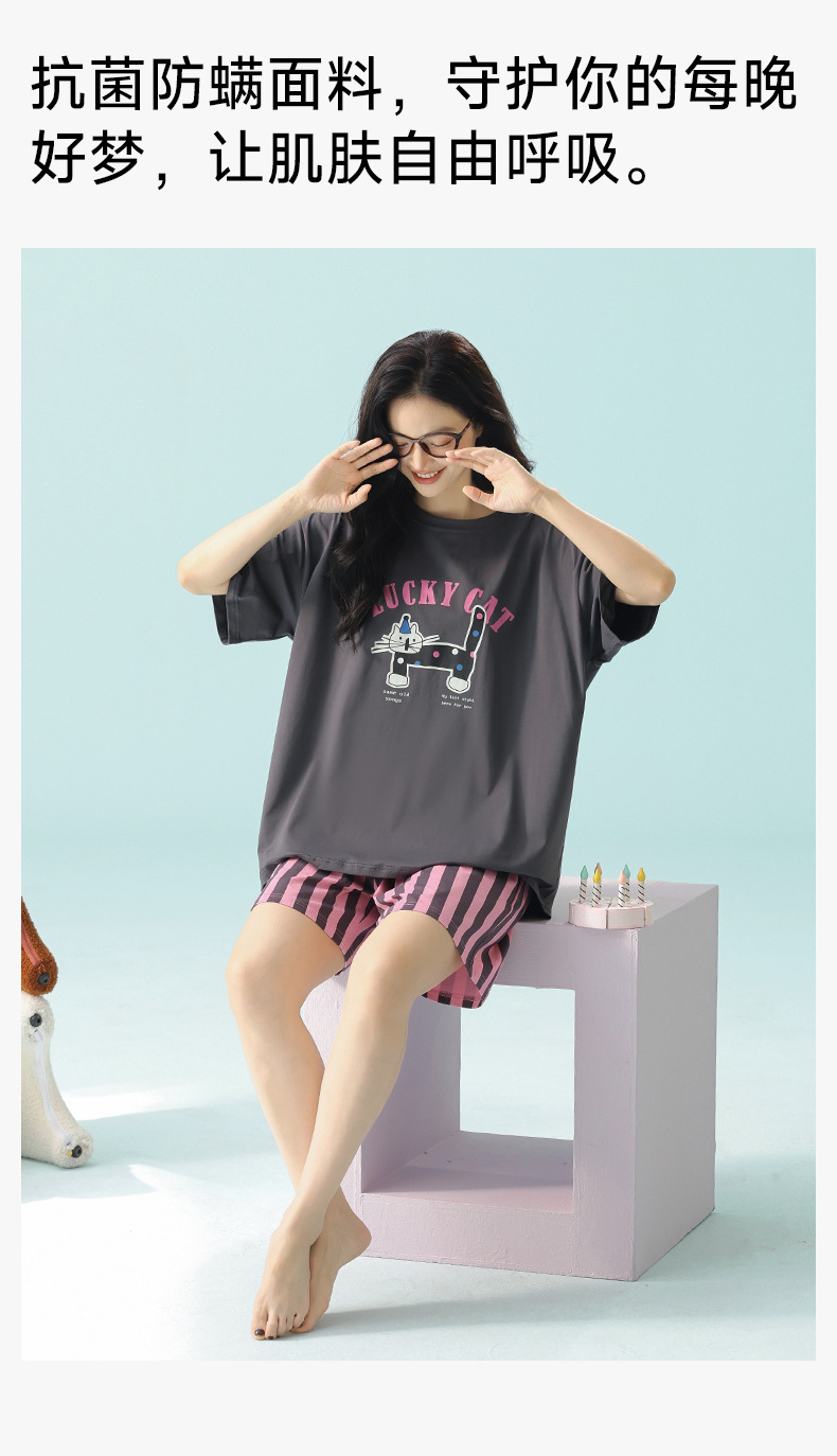 [항균성 신장면] A 급 여름 반소매 잠옷 여성면 고급 세트 홈웨어스토어 가기