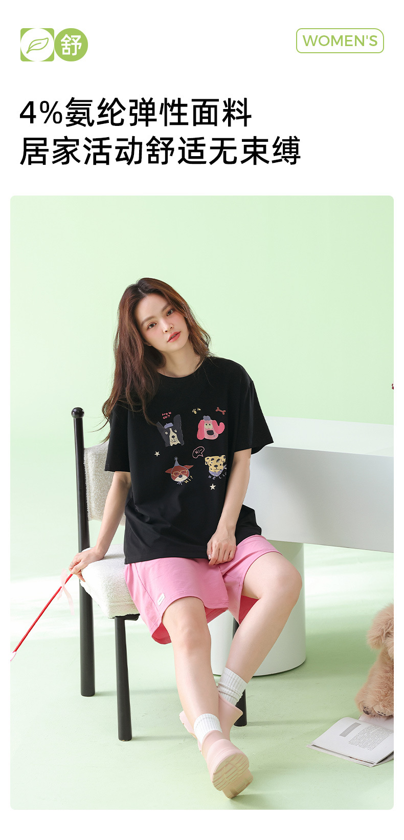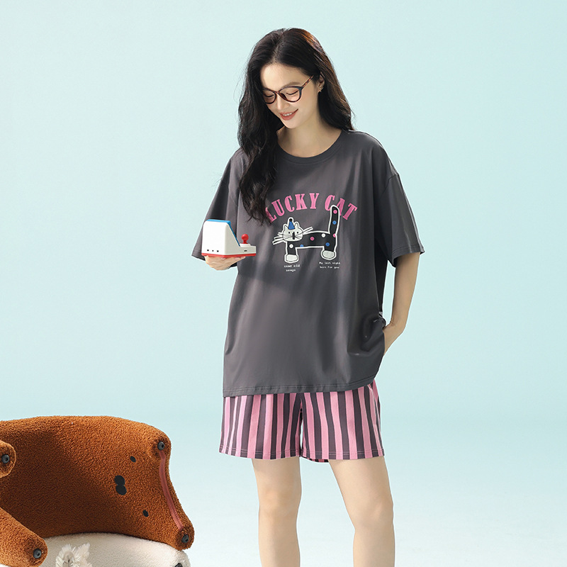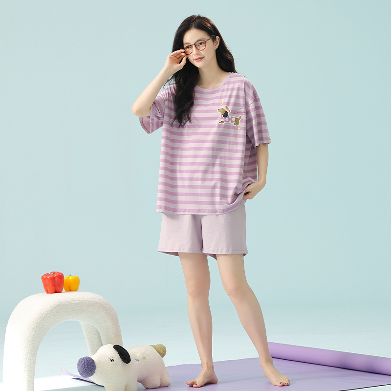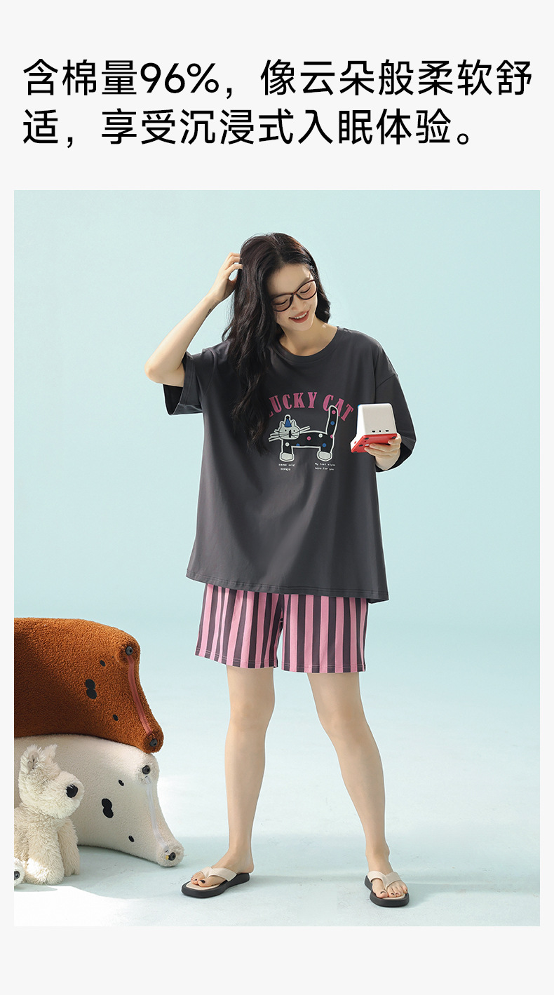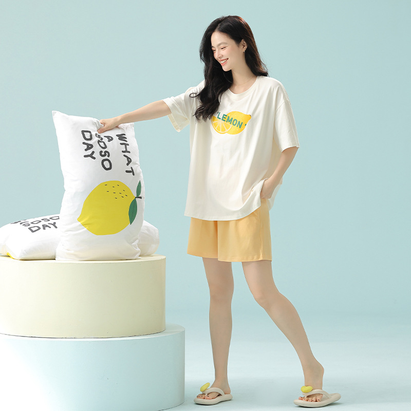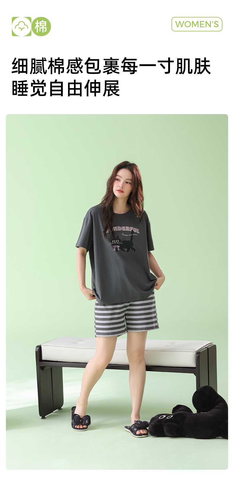 [항균성 신장면] A 급 여름 반소매 잠옷 여성면 고급 세트 홈웨어스토어 가기